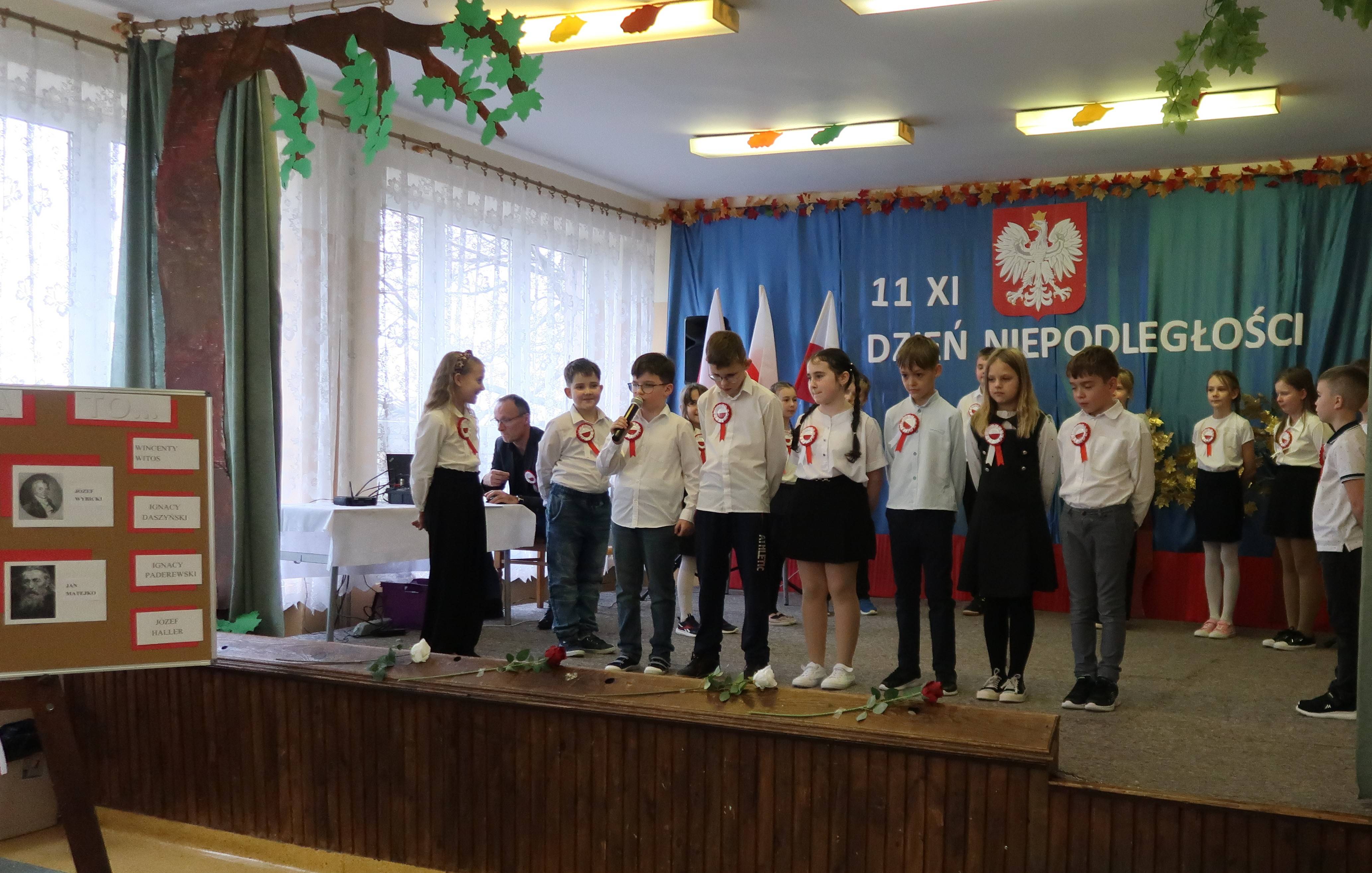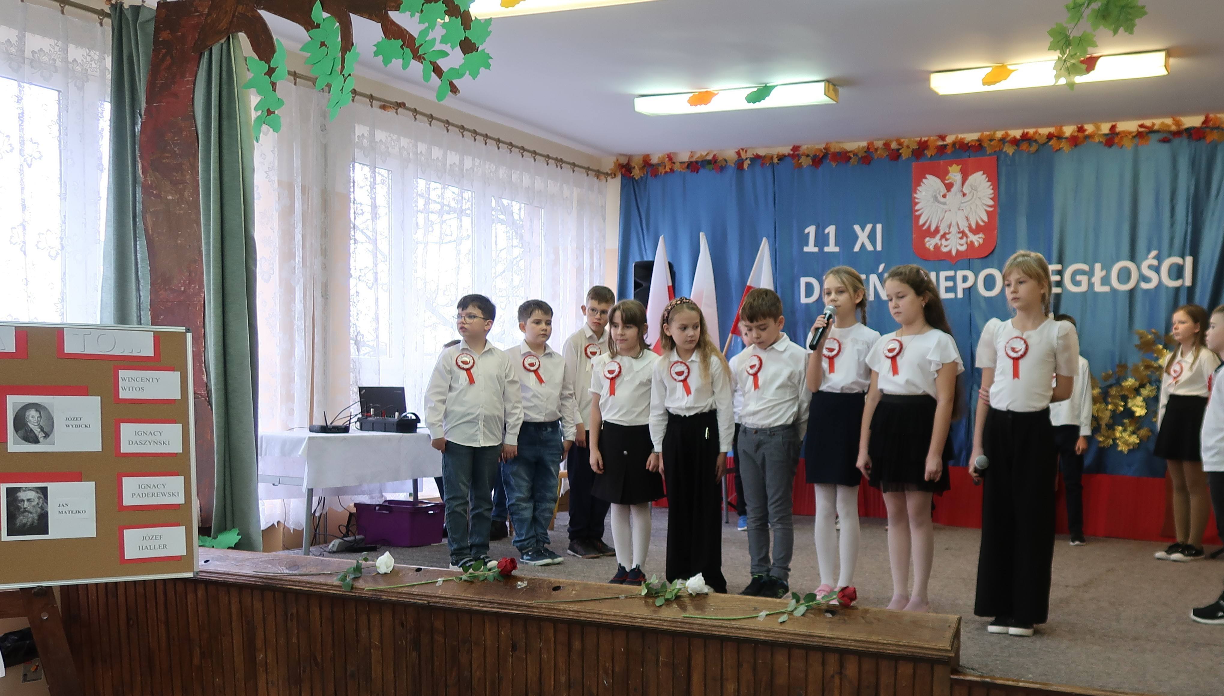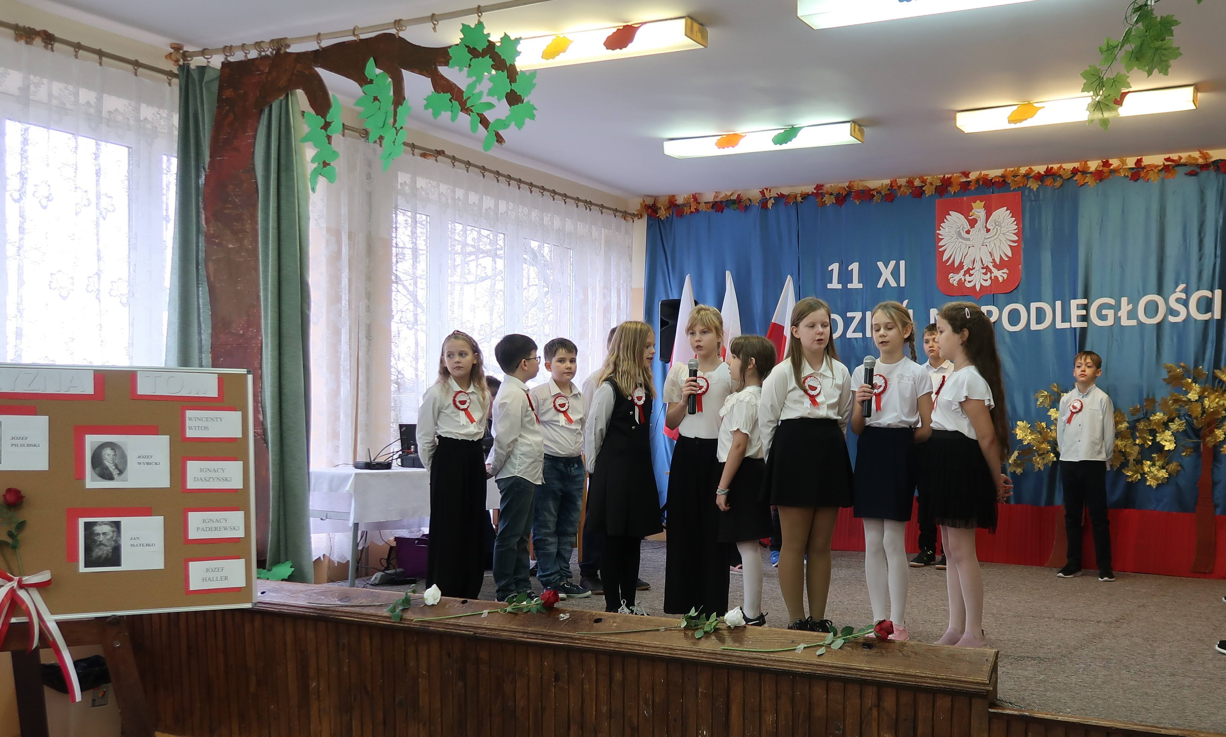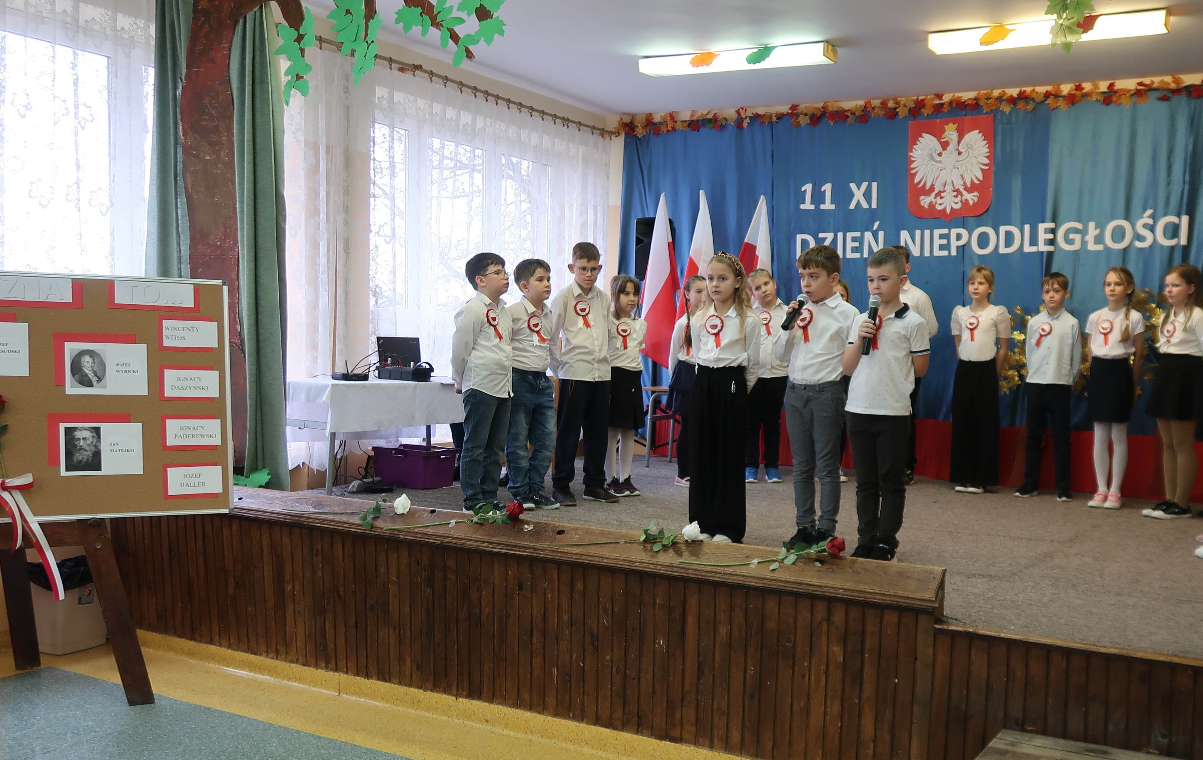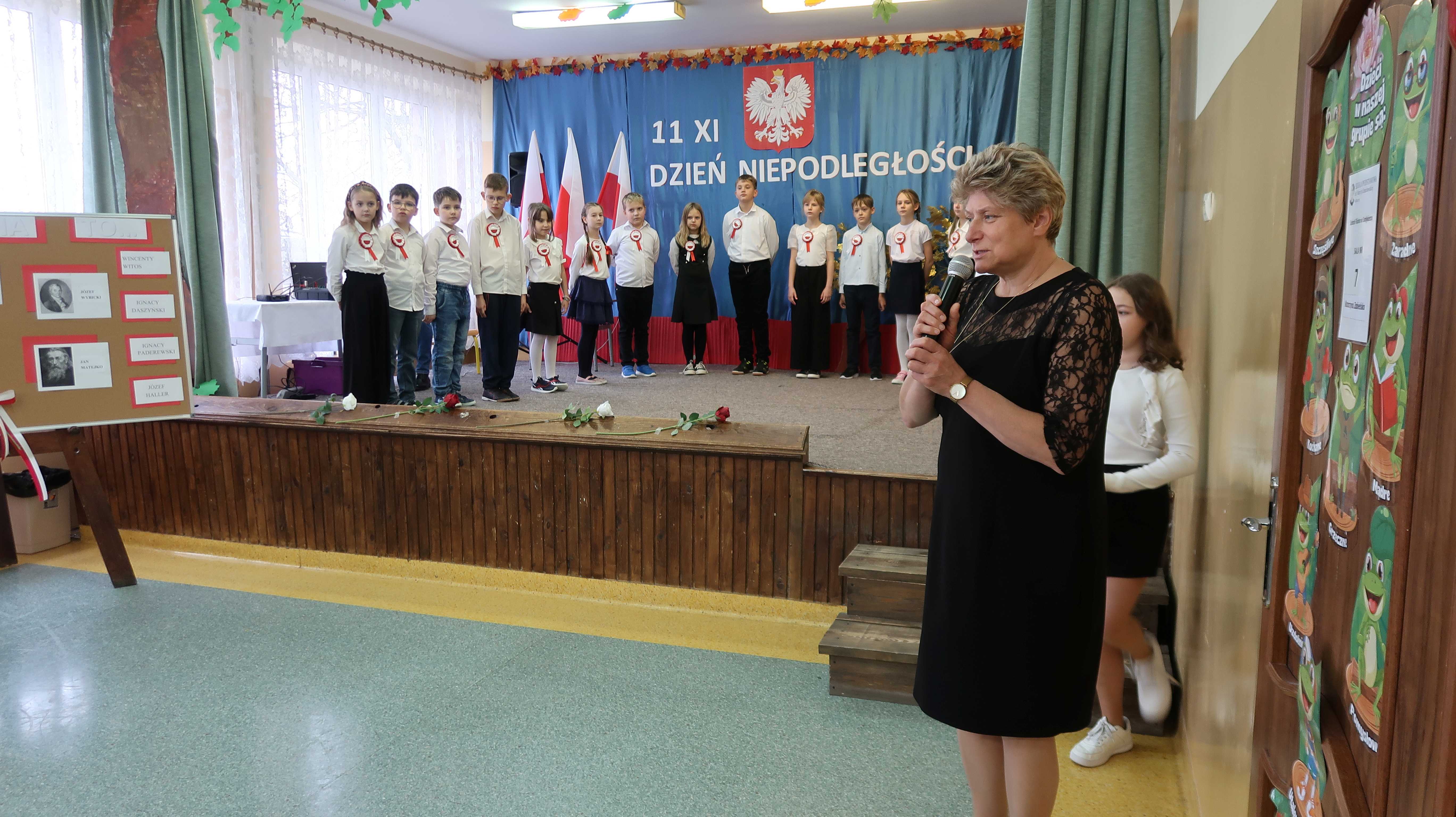 Dnia 12.11.2025 r. w Szkole Filialnej w Sadykierzu wraz z gośćmi Wójtem Gminy p. Markiem Kaźmierczykiem, z-cą Wójta Gminy p. Iwoną Łuszcz -Krawczyk, przewodniczącą Rady Gminy p. Anetą Podlasek, Dyrektorem Szkoły p. Agatą Ewą Ostalską uczciliśmy Narodowe Święto Niepodległości. Uczniowie klasy 3 wierszami, rysem historycznym, patriotycznymi pieśniami przypomnieli dążenia Polaków do odzyskania Polskę niepodległości w 1918 roku po 123 latach zaborów. W 107 rocznicę tego wydarzenia wszystkim udzielił się nastrój zadumy nad tym, jak ważna jest dla nas Ojczyzna i wolność.