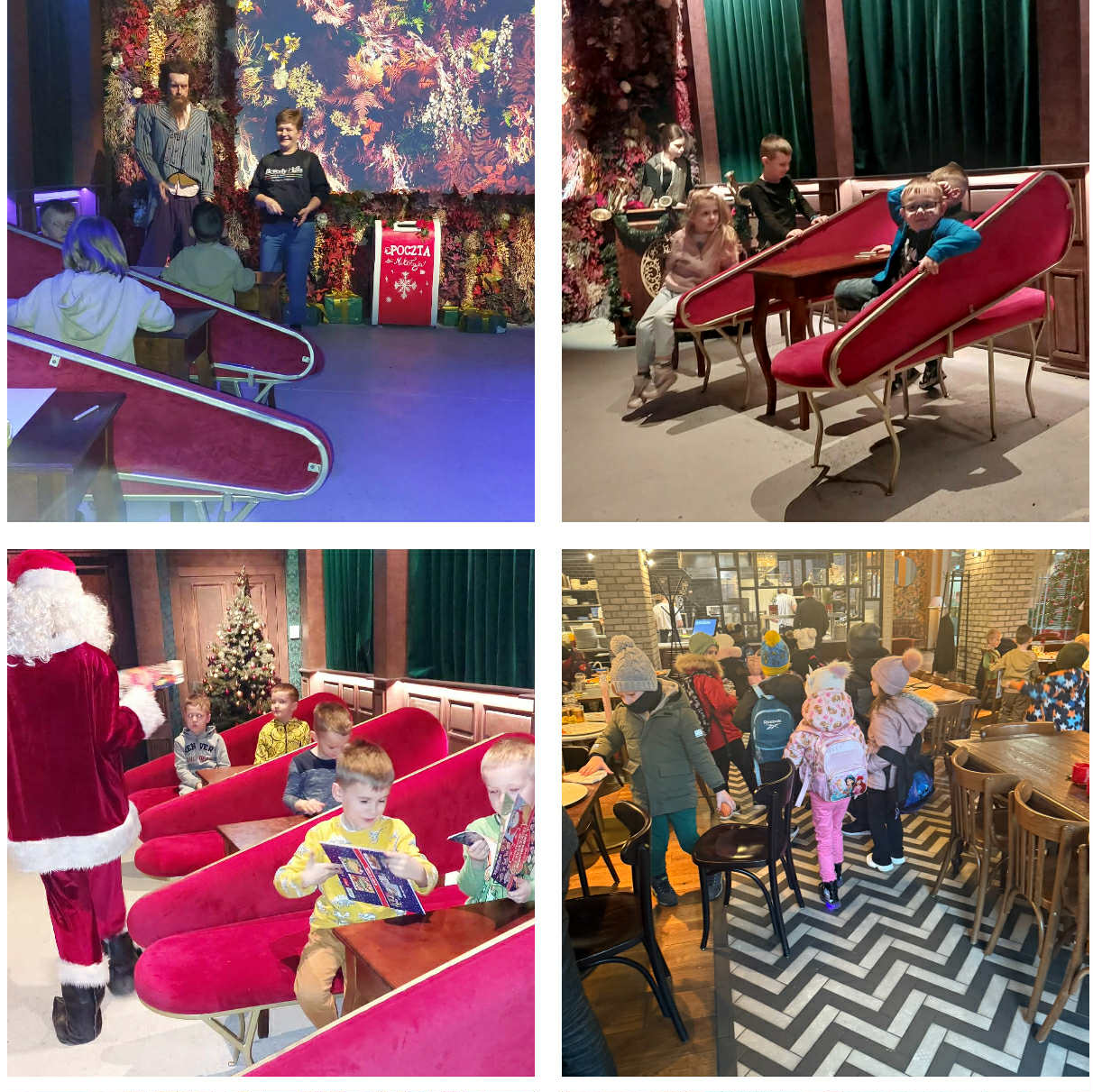 Wszystkie bajki spotykają się tam, gdzie działa dziecięca wyobraźnia. W miejscu, w którym jedno marzenie potrafi otworzyć drzwi do innego świata, a każdy, kto wierzy w magię, może zostać bohaterem opowieści. Czasem to książka, czasem teatr, czasem sen… a czasem taka niezwykła przestrzeń jak Akademia Pana Kleksa, gdzie bajki podają sobie ręce i ożywają. Mikołajkowa podróż do Akademii Pana Kleksa. 17 grudnia dzieci z grup Żabki i Zuchy wyruszyły w niezwykłą podróż do miejsca, gdzie wszystko jest możliwe, a wyobraźnia nie zna granic. Tak właśnie trafiły do Centrum Praskiego Koneser, prosto do zaczarowanego świata „Kleks. Magia Kina” – do samej Akademii Pana Kleksa. Już od progu dzieci poczuły, że znalazły się w bajce. W tajemniczym escape roomie czekały na nie zagadki i sekrety Akademii. Mali odkrywcy zgadywali, myśleli i współpracowali, jak prawdziwi uczniowie Pana Kleksa, by odkryć kolejne magiczne wskazówki. W jednej z sal dzieci rysowały samego Pana Kleksa, a każdy rysunek był inny, wyjątkowy i pełen dziecięcej fantazji. Te małe dzieła sztuki pojechały razem z nimi z powrotem do przedszkola jako pamiątka z bajkowej wyprawy. W Akademii dzieci odkryły również tajemnice kina – dowiedziały się, jak powstaje film, skąd biorą się obrazy, dźwięki i magia ekranu. Najwięcej radości sprawiła jednak możliwość położenia się na prawdziwym łóżku w Akademii Pana Kleksa i oglądania telewizorków, na których wyświetlały się sny uczniów Akademii. Każdy sen był inny – kolorowy, zabawny, czasem tajemniczy. I właśnie wtedy… wydarzył się cud! W Akademii pojawił się Mikołaj, który jakby wiedział, że dzieci są wyjątkowymi gośćmi. Było dużo śmiechu, radości i błyszczących oczu – bo przecież spotkanie Mikołaja w bajkowym świecie zdarza się tylko raz na jakiś czas. Na zakończenie tej magicznej przygody czekała na wszystkich mega „dusza” kleksowa pizza – ciepła, pachnąca i smakująca jak najlepsza bajkowa uczta. Po takim dniu smakowała naprawdę wyjątkowo. Tak zakończyła się mikołajkowa podróż Żabek i Zuchów do Akademii Pana Kleksa – pełna magii, wyobraźni, odkryć i radości. To był dzień, który na długo pozostanie w dziecięcych sercach.