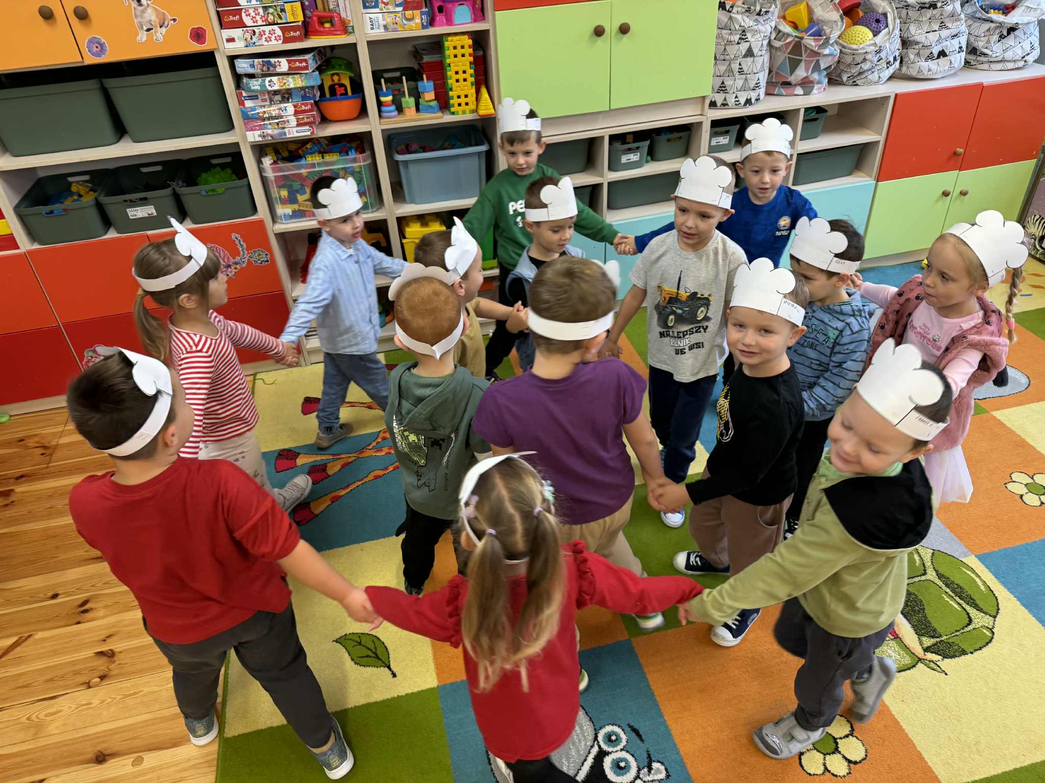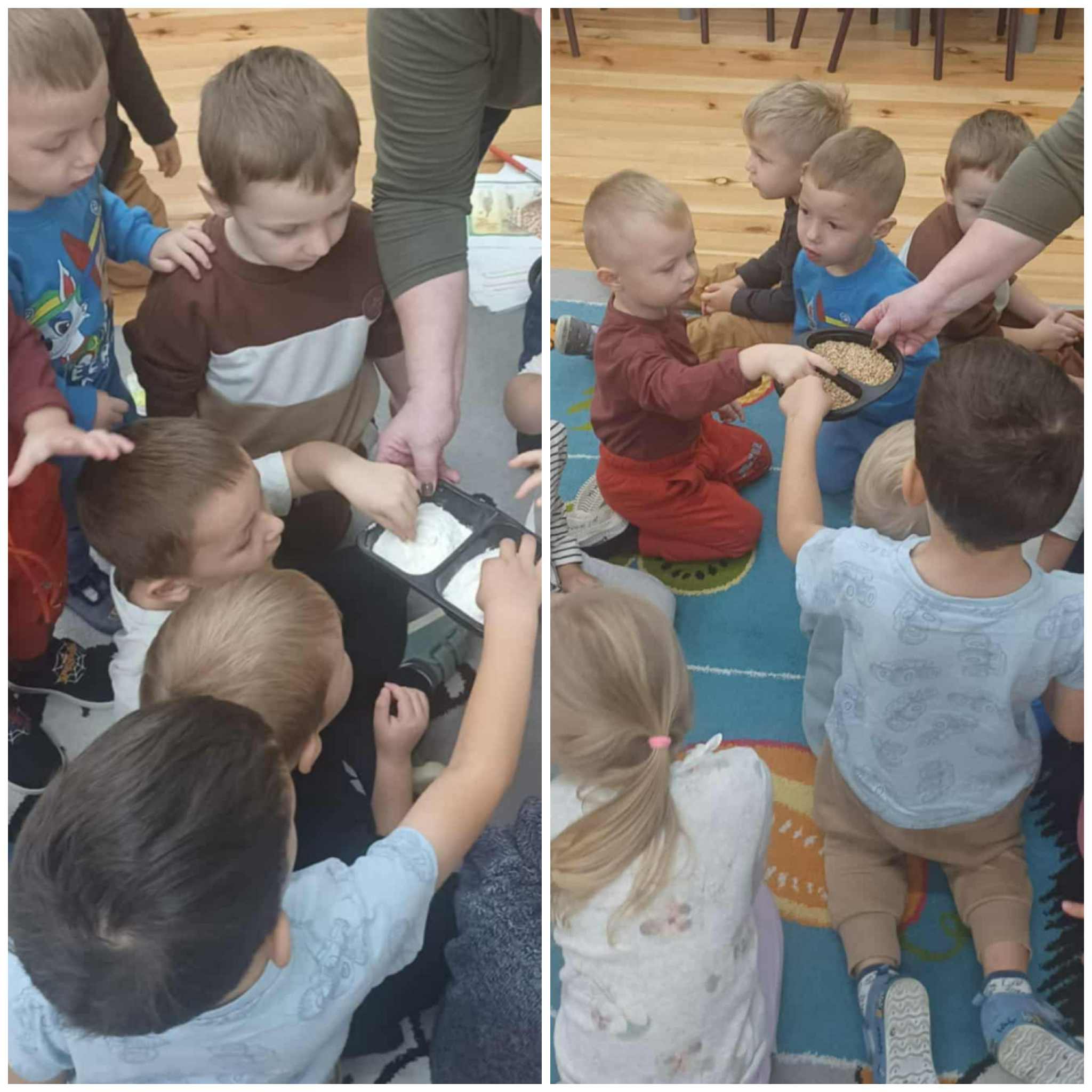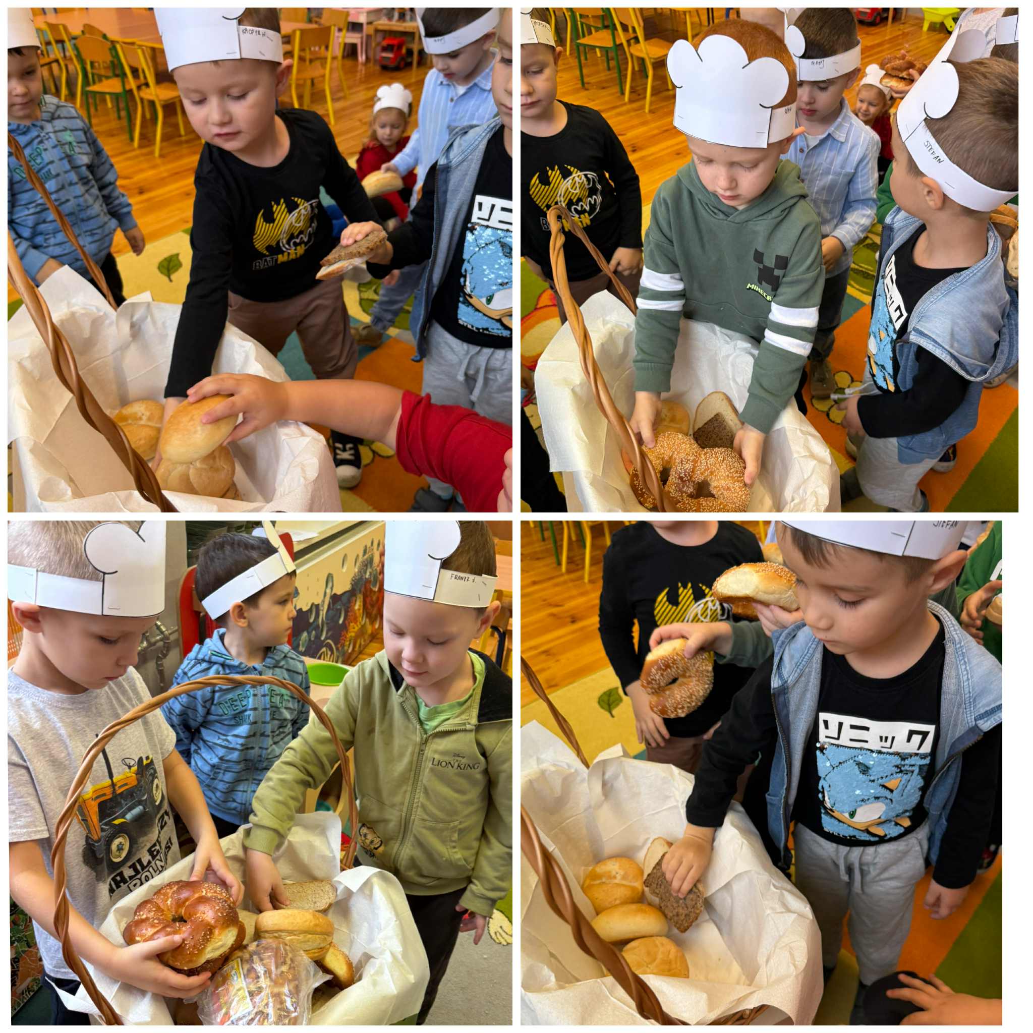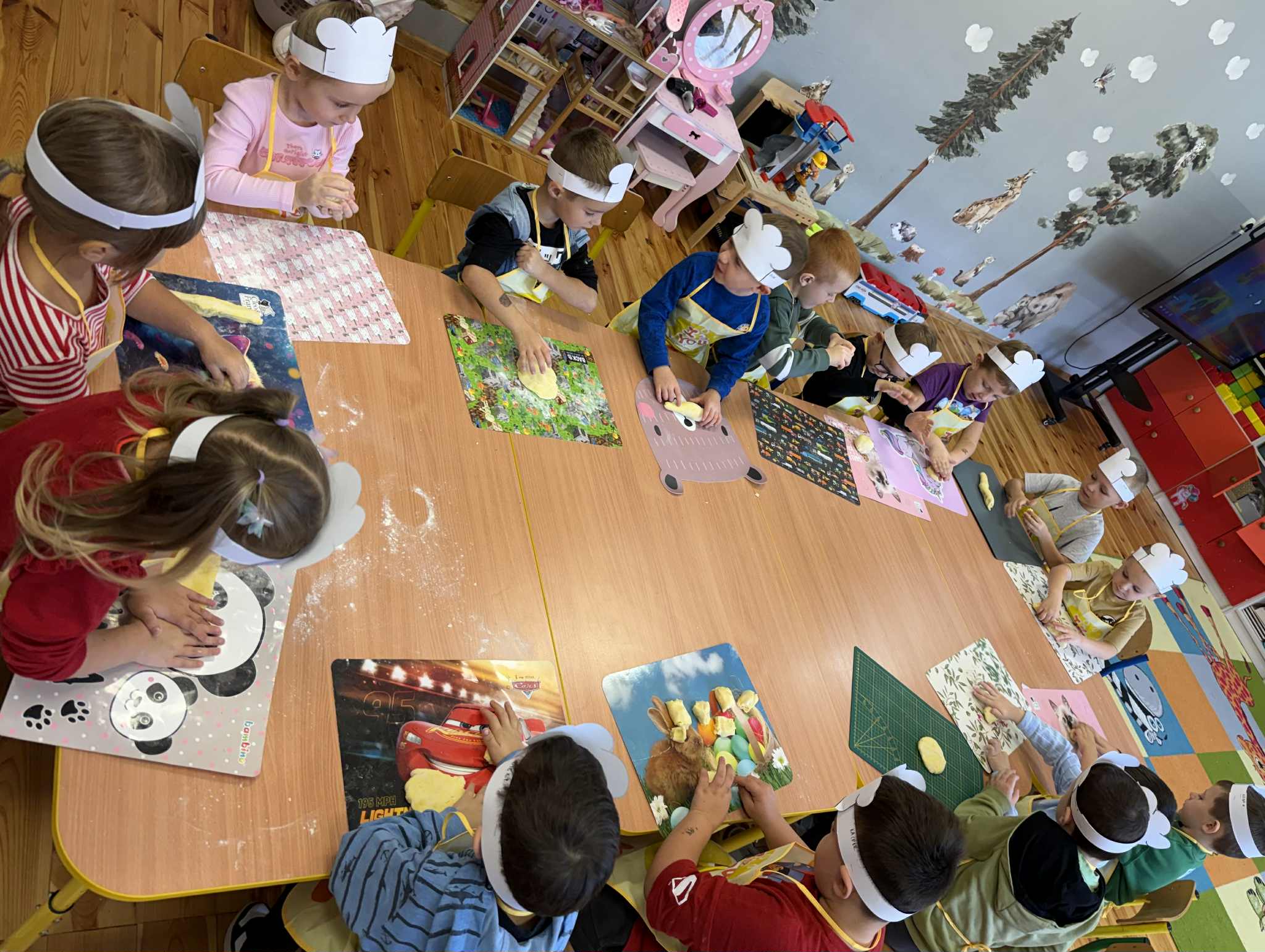 Przez dwa dni tj. 16 i 17 października nasze przedszkole zamieniło się w prawdziwą piekarnię! Dzieci wcieliły się w rolę piekarzy – z zapałem ugniatały, formowały i wyrabiały masę solną, z której powstały bochenki, rogale, bagietki i bułeczki, a następnie wszystko powędrowało do „piekarnianego pieca”. Każdy bochenek był wyjątkowy – tak jak jego mały twórca. Nie zabrakło również zabaw sensorycznych– dzieci mogły dotknąć kłosów zbóż, obejrzeć ziarenka, porównać różne rodzaje mąki i… umączyć sobie rączki po same łokcie! Niektórzy stwierdzili, że „to chyba magiczny pył, który zamienia się w kanapkę”. Przedszkolaki poznały zawód piekarza, jego codzienną pracę i tajniki wypieku pieczywa. Na zakończenie wszyscy bawili się w znaną zabawę „Mało nas do pieczenia chleba”, przy której nie zabrakło śmiechu, tańca i wspólnego śpiewania.