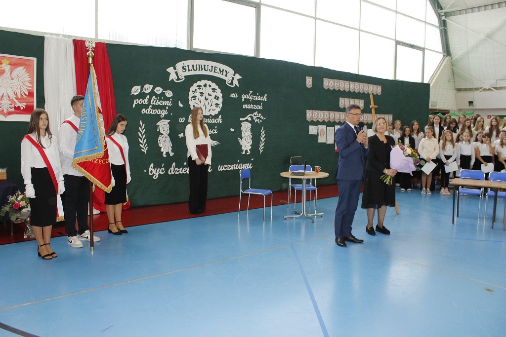 W imieniu społeczności naszej szkoły Dyrektor serdecznie podziękował Wójtowi Gminy Rzeczyca Markowi Kaźmierczykowi oraz Przewodniczącej Rady Gminy Anecie Podlasek za zaangażowanie i wsparcie w realizacji działań szkolnych. Dyrektor Szkoły podziękował za nieocenioną prace na rzecz rozwoju placówki, która przynosi wymierne efekty, które służą naszym uczniom, nauczycielom i całej społeczności lokalnej. Pani Agat Ewa Ostalska powiedziała, że dzięki ich codziennej pracy nasza szkoła będzie mogła nadal dynamicznie się rozwijać i kształcić kolejne pokolenia.