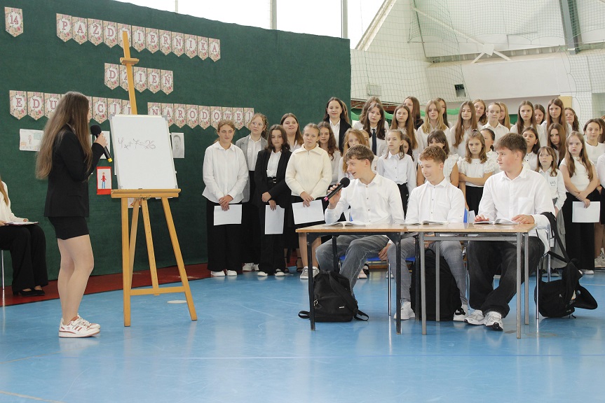 Po ślubowaniu uczniowie klasy VIIIA, VIIIB oraz SU przygotowali niezwykłe przedstawienie z okazji Dnia Edukacji Narodowej. Dyrektor Szkoły Podstawowej im. Narcyzy Żmichowskiej w Rzeczycy pani Agata Ewa Ostalska złożyła najszczersze podziękowania dla całego Grona Pedagogicznego oraz pracowników niepedagogicznych za ich zaangażowanie, pasję i nieustanną pracę, którą wkładają w rozwój każdego ucznia.