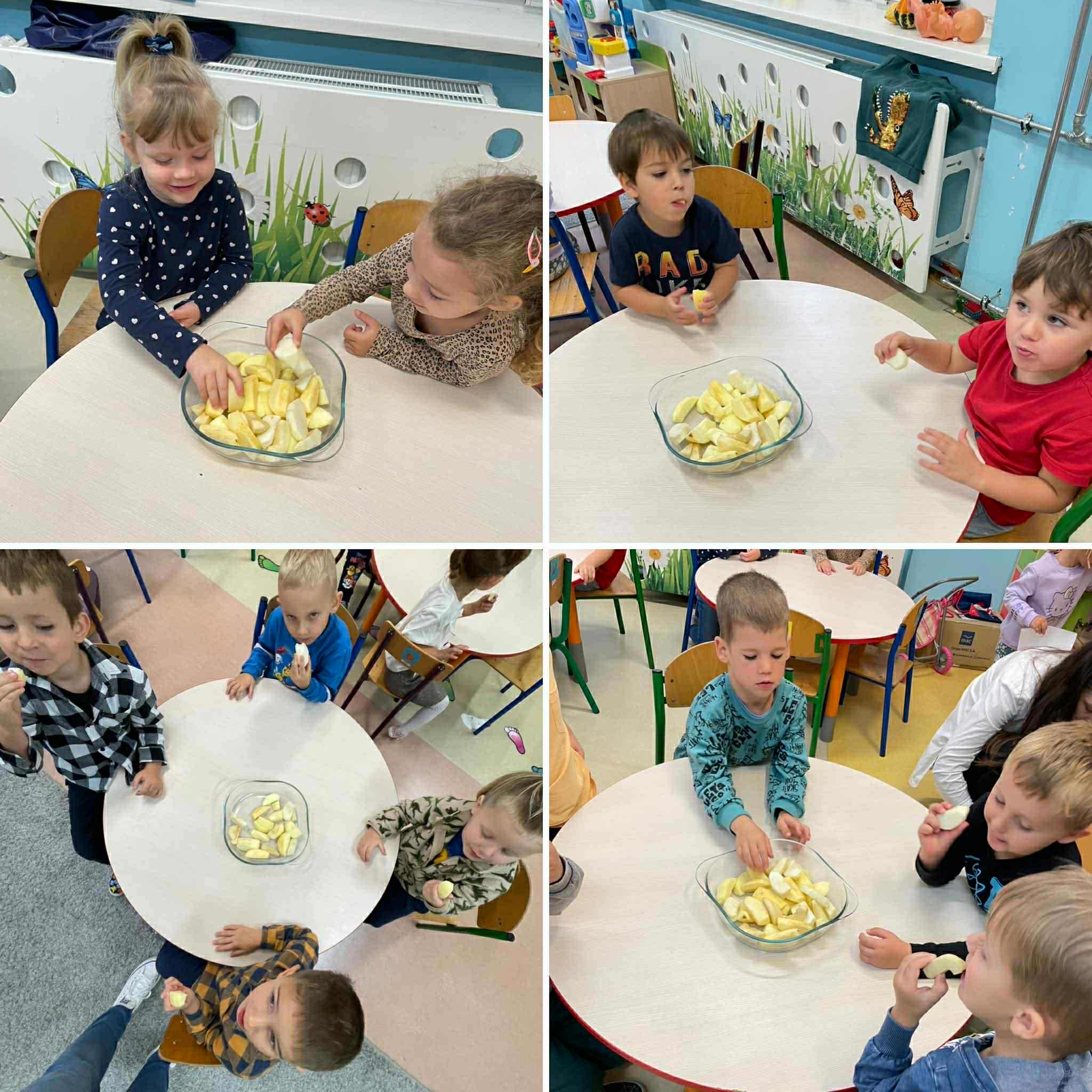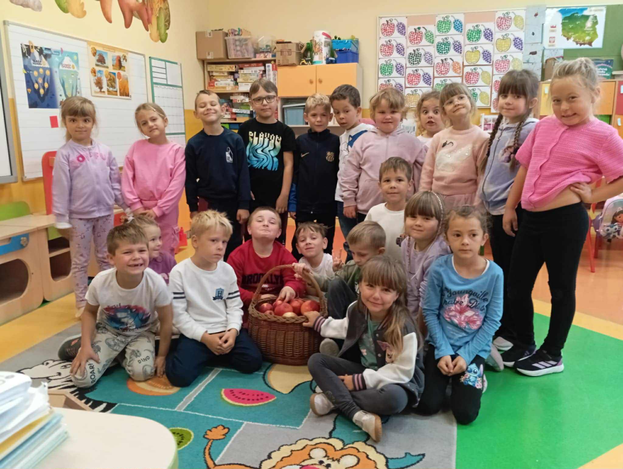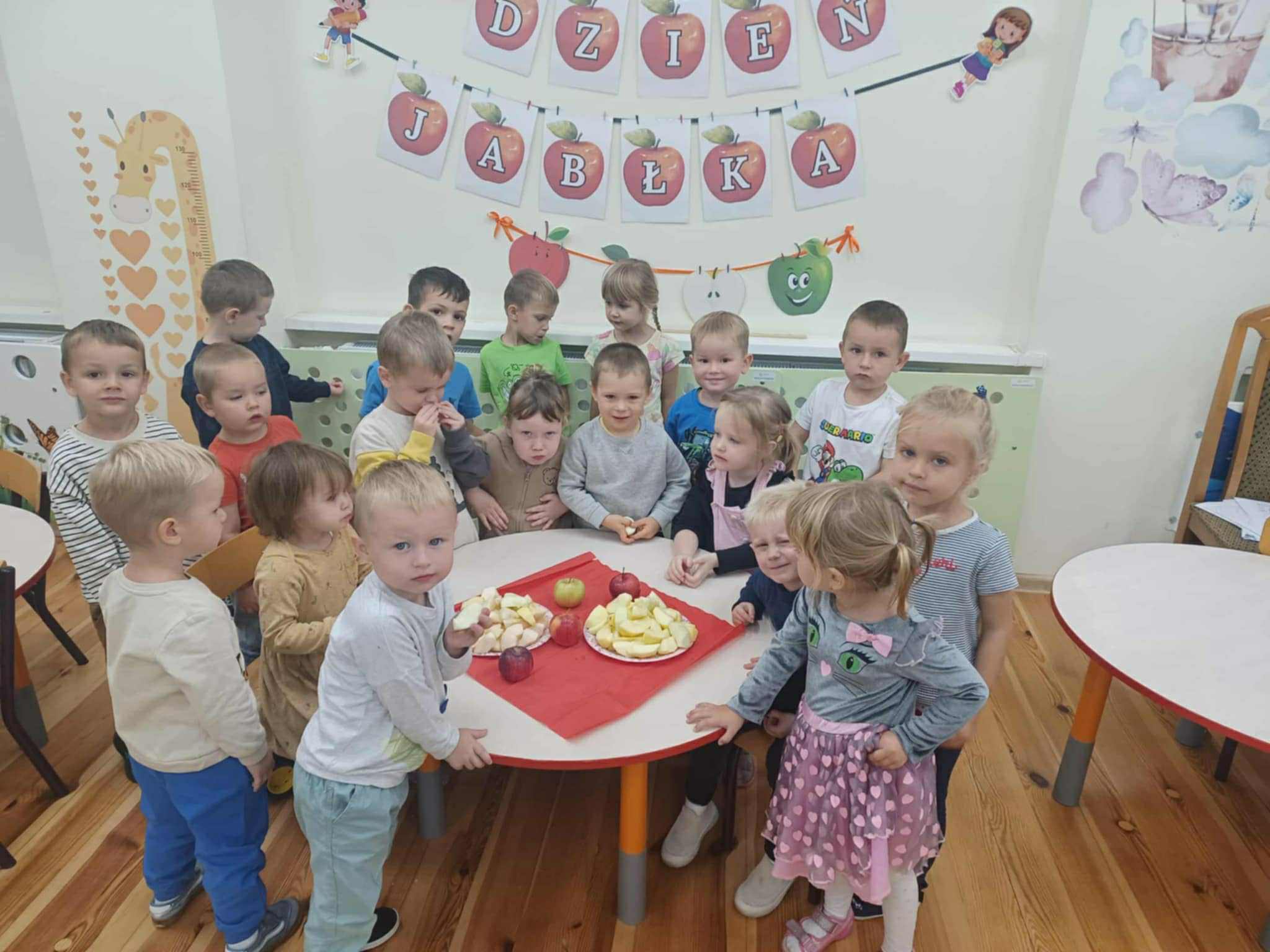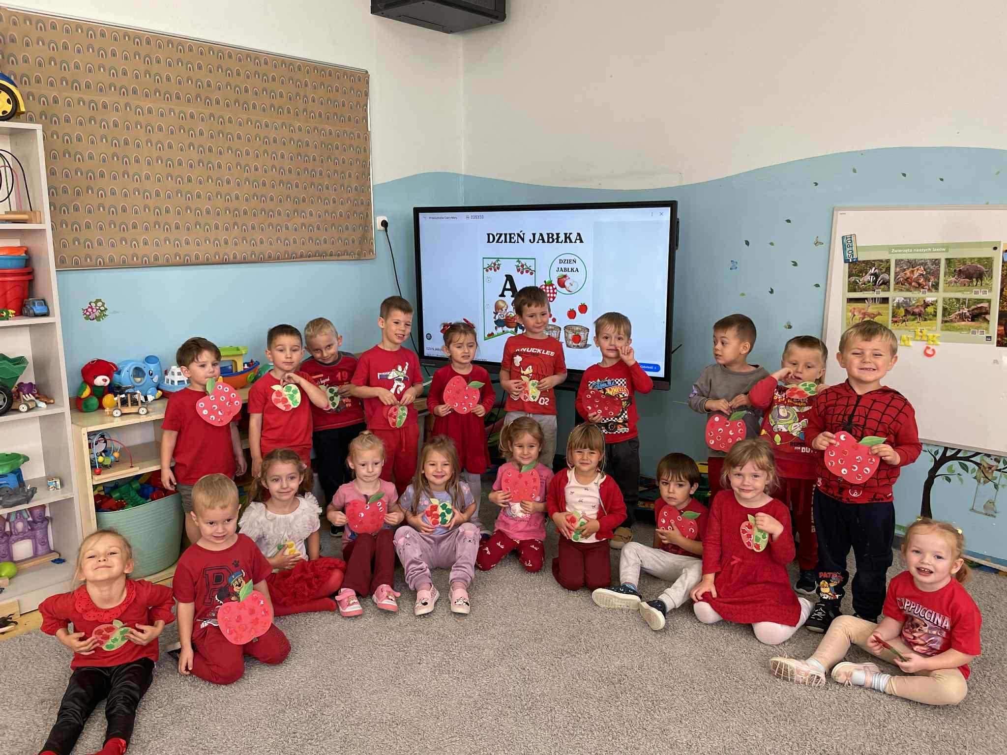 W minionym tygodniu w każdej grupie przedszkolnej odbył się Dzień Jabłka. Dzieci poznały wartości odżywcze najbardziej popularnego owocu jesieni – jabłka oraz dowiedziały się, jak ważną rolę odgrywają owoce w codziennej diecie. Przedszkolaki poznawały jabłka wszystkimi zmysłami – wąchały, dotykały, smakowały oraz porównywały ich wielkość i wygląd. W ramach zajęć dzieci wykonywały prace plastyczne z motywem jabłka, uczestniczyły w zabawach matematycznych i ruchowych, w których główną rolę odgrywał ten pyszny owoc. Najbardziej smakowitym punktem dnia była wspólna degustacja różnych odmian jabłek.