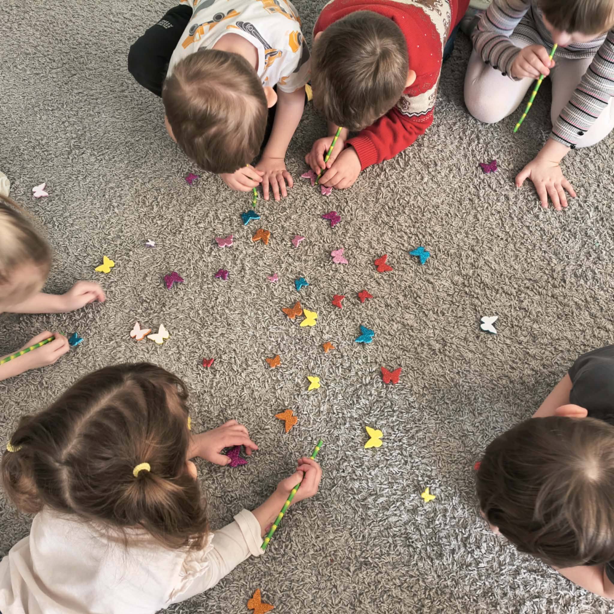Dzień Motyla w grupach „Kamyczki”, „Szkraby” i „Zuchy” był pełen radości, kolorów i ciekawych aktywności. Dzieci rozpoczęły dzień od rozmowy na temat motyli – ich wyglądu, etapów rozwoju oraz znaczenia w przyrodzie. Poznały cykl życia motyla, od gąsienicy po pięknego, kolorowego owada. Następnie przedszkolaki wzięły udział w zajęciach plastycznych, podczas których wykonały własne motyle z papieru, bibuły i innych materiałów. Każda praca była wyjątkowa i pełna barw. Nie zabrakło również zabaw ruchowych – dzieci naśladowały lot motyli przy muzyce oraz uczestniczyły w różnych grach i zabawach tematycznych. Dużo radości sprawiły także zabawy sensoryczne i edukacyjne, które rozwijały spostrzegawczość oraz kreatywność najmłodszych. Dzień Motyla był doskonałą okazją do nauki przez zabawę. To był wyjątkowy i bardzo kolorowy dzień, który na długo pozostanie w pamięci wszystkich uczestników.