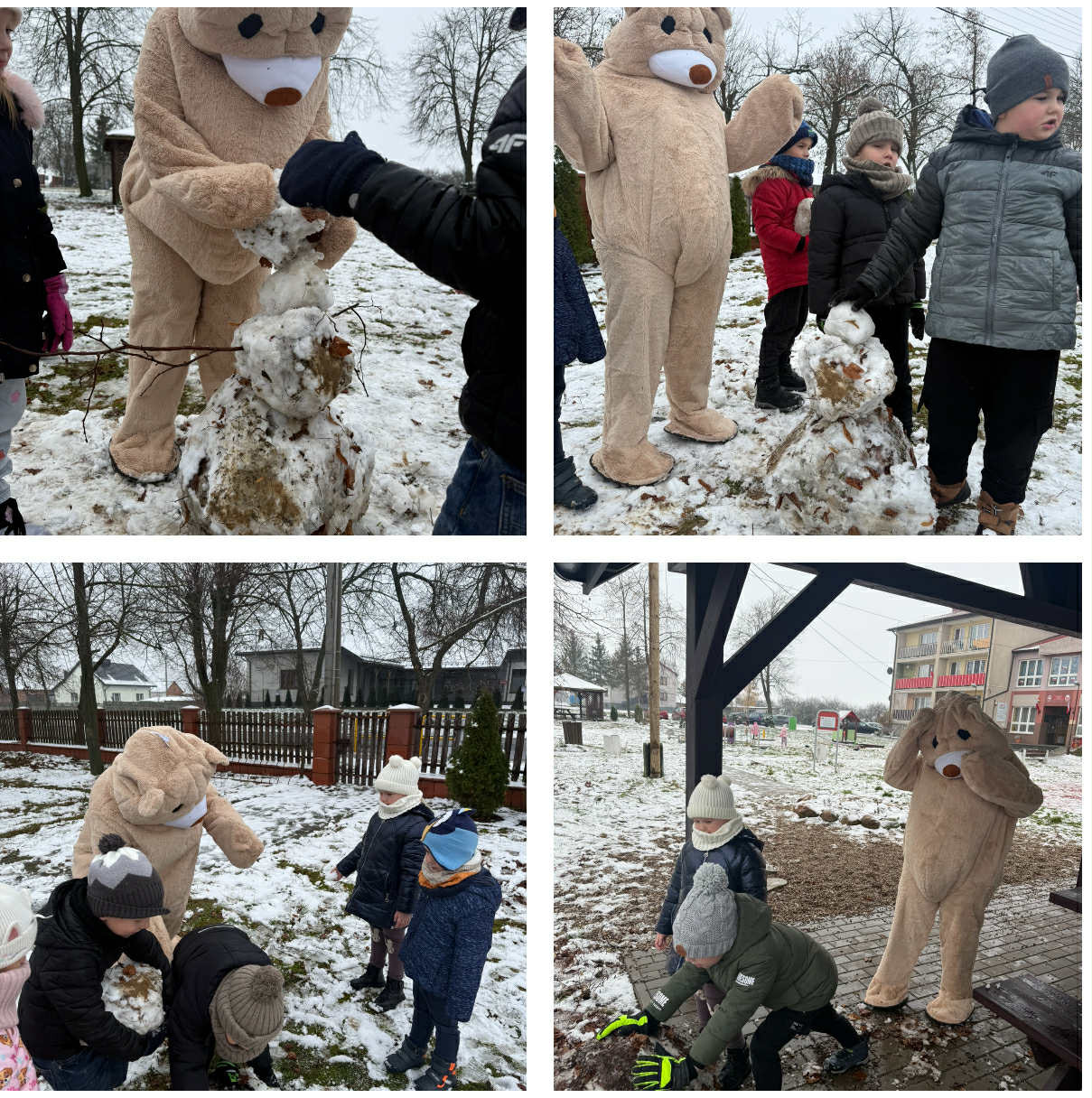 Dzień Pluszowego Misia to jedno z najcieplejszych i najbardziej wyczekiwanych świąt w przedszkolnym kalendarzu. W naszym przedszkolu w Sadykierzu obchodziliśmy je z wyjątkową radością, a w tym roku towarzyszyła nam pewna niezwykła postać – wielki Pluszowy Miś, który już od rana wywołał u dzieci ogromny zachwyt. Miś zaprosił przedszkolaki na wspólną zabawę na świeżym powietrzu. Dzieci z entuzjazmem ulepiły z nim wspaniałego bałwana, świetnie się przy tym bawiąc i pokazując, że nawet zimowy chłód nie jest straszny, gdy towarzyszy nam ktoś tak wyjątkowy. Po powrocie do przedszkola rozpoczęła się prawdziwa misiowa zabawa. Dzieci tańczyły do wesołych, misiowych piosenek, a uśmiechy nie schodziły im z twarzy. Następnie każdy przedszkolak wykonał własną misiową opaskę, którą z dumą nosił przez resztę dnia. Nie zabrakło także chwili wyciszenia – dzieci wysłuchały ciepłego i wzruszającego opowiadania o przygodach pluszowego misia. Tego dnia do przedszkola zawitały również pluszowe misie przyniesione z domów. Dzieci z dumą prezentowały swoje ukochane przytulanki i opowiadały, dlaczego są dla nich tak ważne. Niektóre misie mają już swoje historie, inne są nowymi przyjaciółmi – wszystkie jednak zajmują szczególne miejsce w dziecięcych sercach. Dzień Pluszowego Misia upłynął w atmosferze radości, przytulania i serdeczności. To święto przypomniało nam wszystkim, że czasem największą wartość mają najprostsze rzeczy – ciepły uśmiech, przytulny miś i szczęśliwe dziecięce wspomnienia.