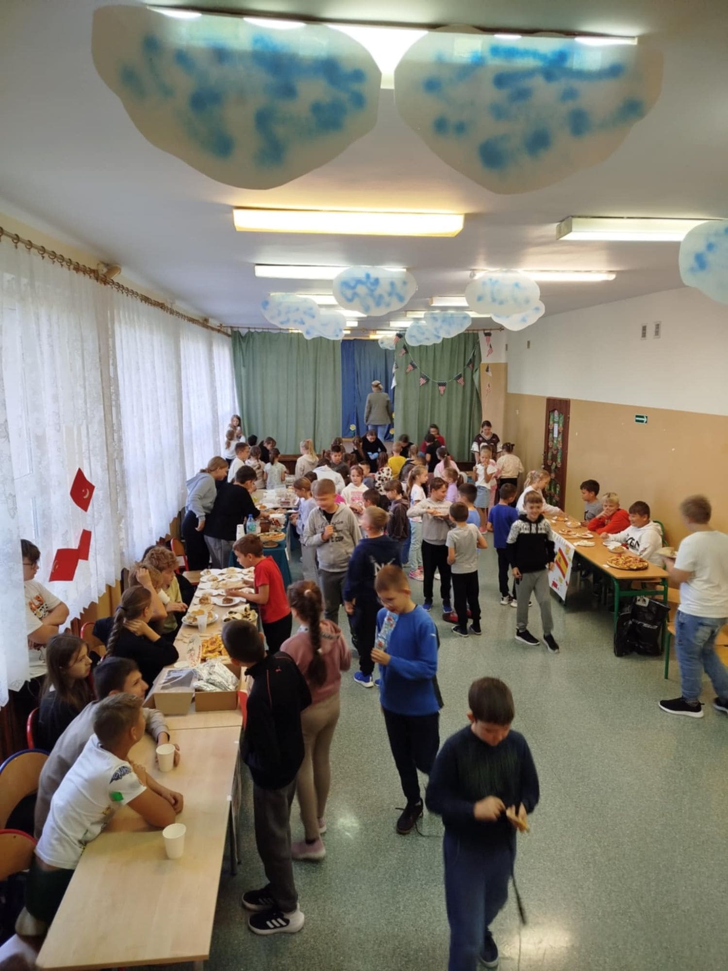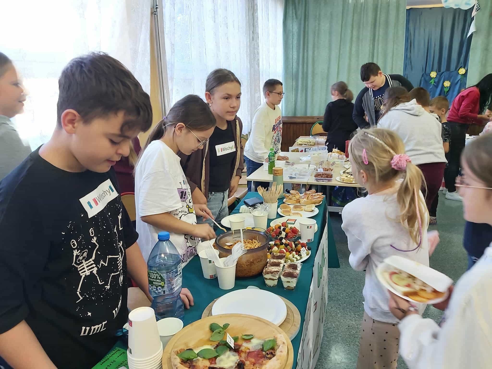 Uczniowie klas 4–6 przygotowali stoiska z potrawami wybranych krajów oraz plakaty z flagami, zdjęciami i ciekawostkami. Dzięki temu cała społeczność szkolna mogła poznać kulturę i tradycje innych państw.