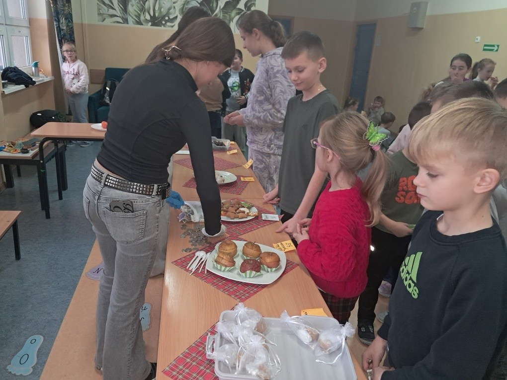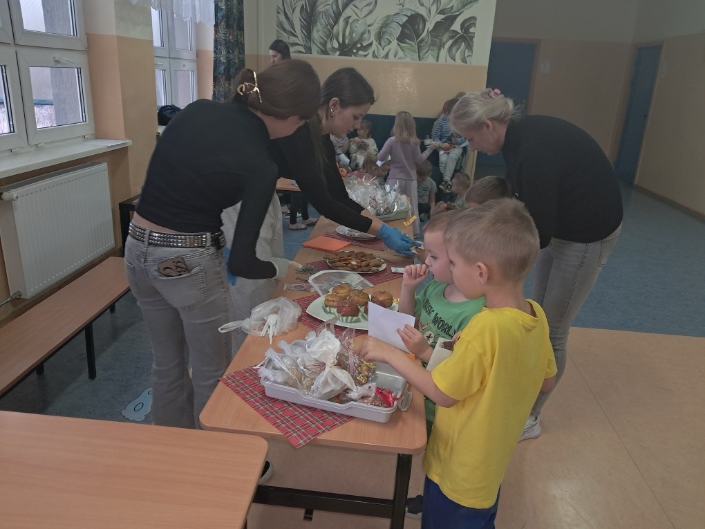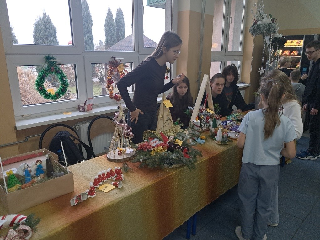Już do 12 grudnia uczniowie oraz przedszkolaki przynosili piękne, własnoręcznie wykonane ozdoby świąteczne, przygotowane zarówno na konkurs, jak i na jarmark. Podczas wydarzenia uczniowie klas I–VIII zadbali również o słodką stronę jarmarku, przynosząc pyszności takie jak babeczki, pierniczki, owoce oraz ciasta, które cieszyły się ogromnym zainteresowaniem.