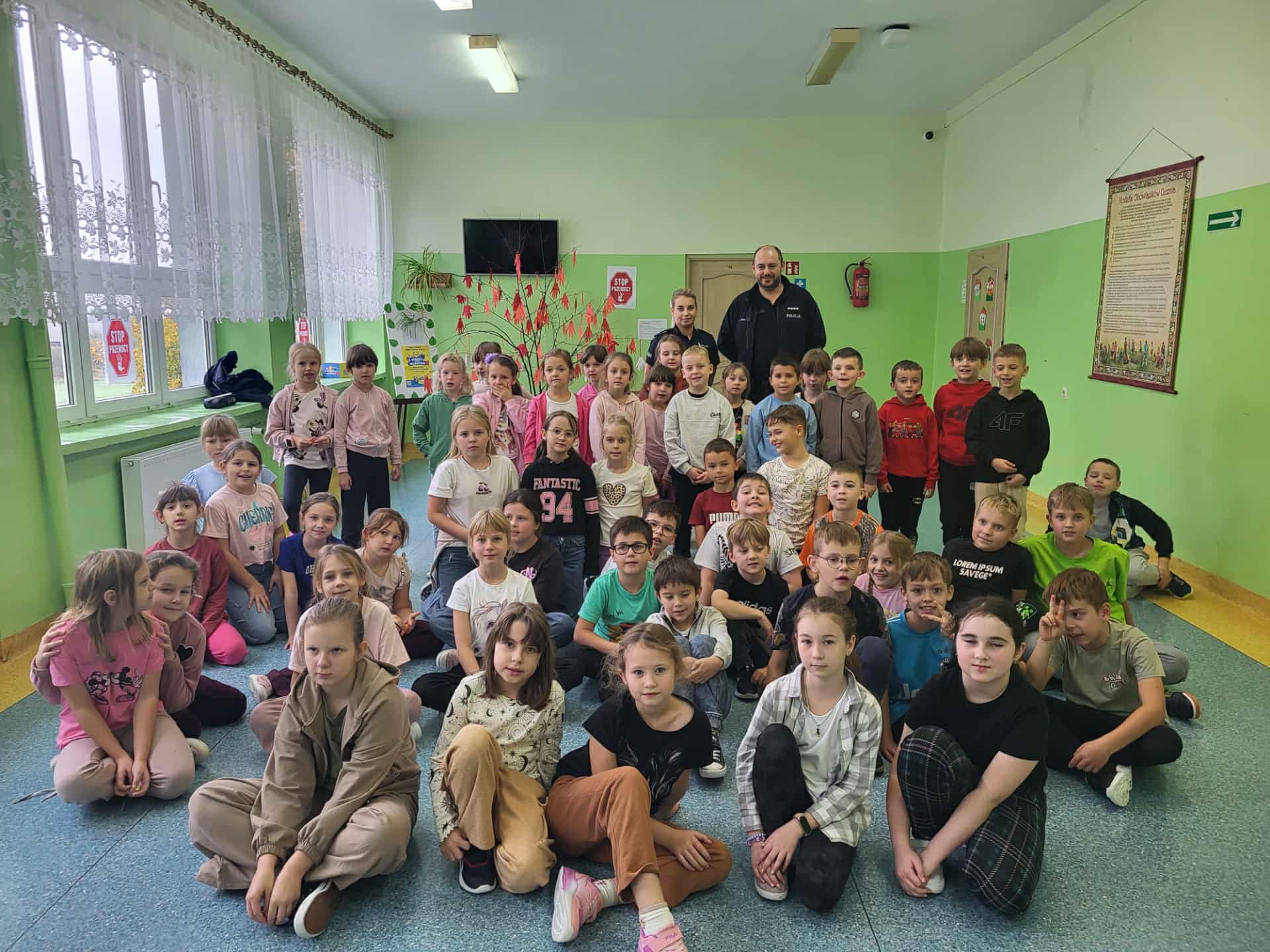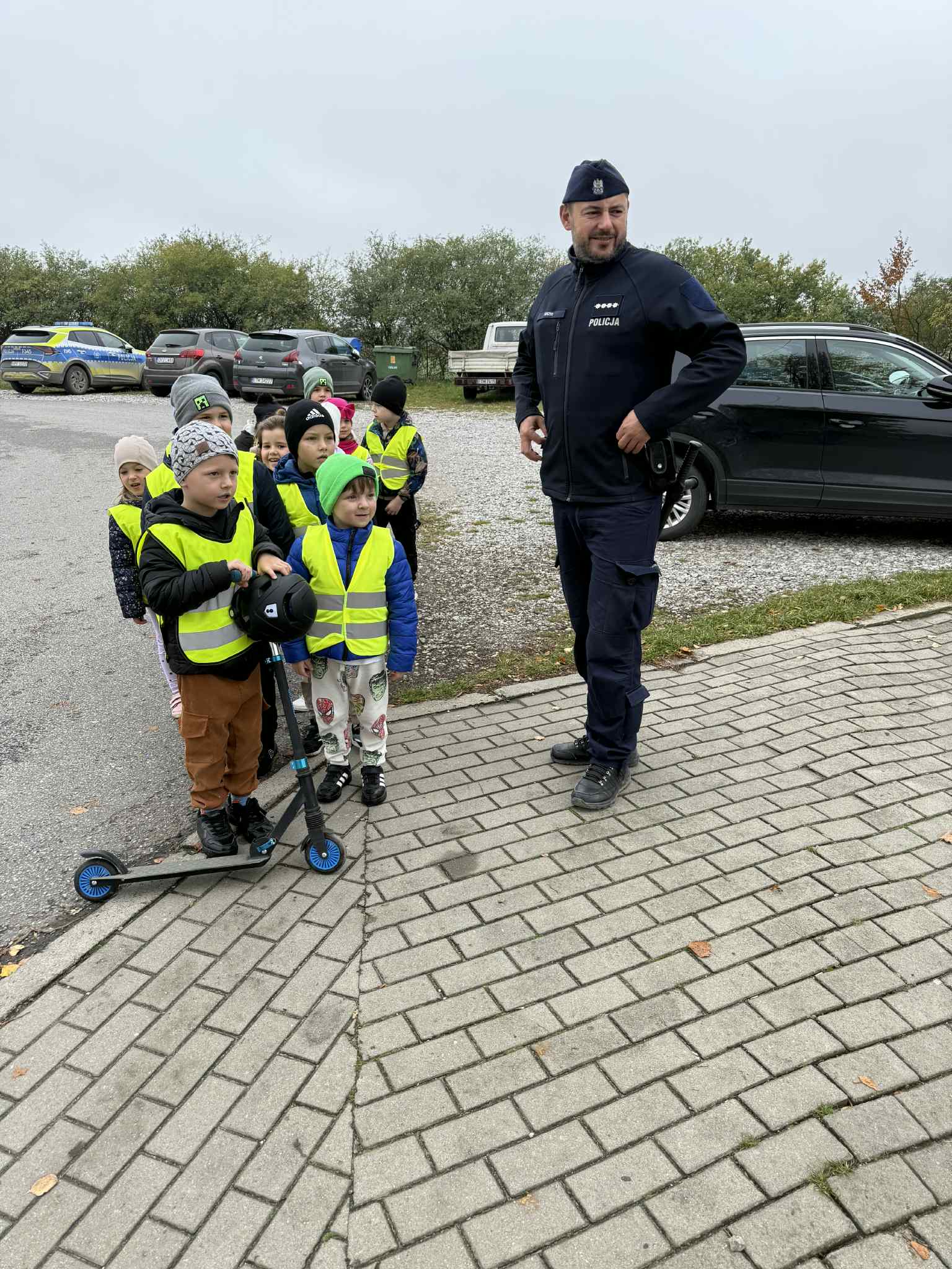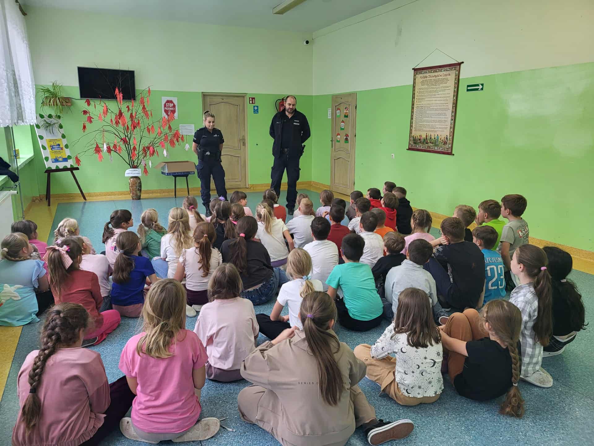 „Jesteśmy bezpieczni” – wizyta policjanta w przedszkolu i szkole