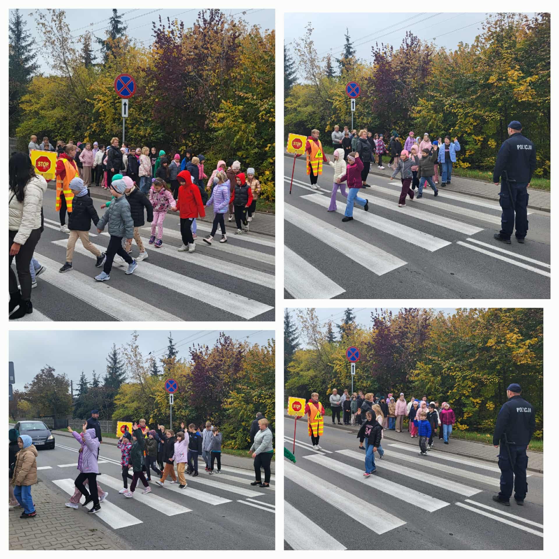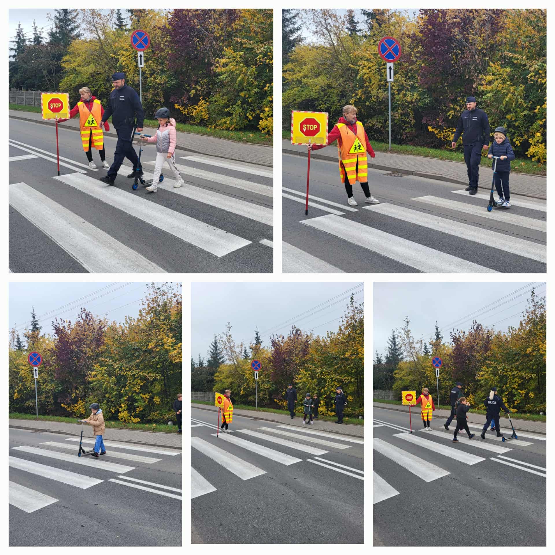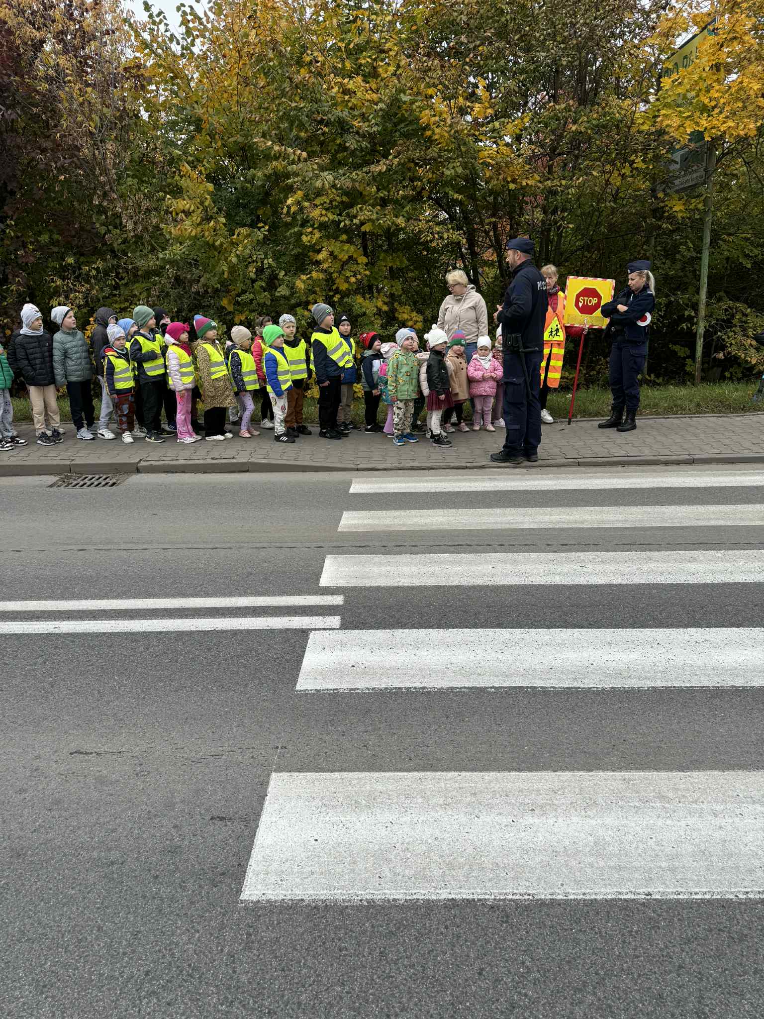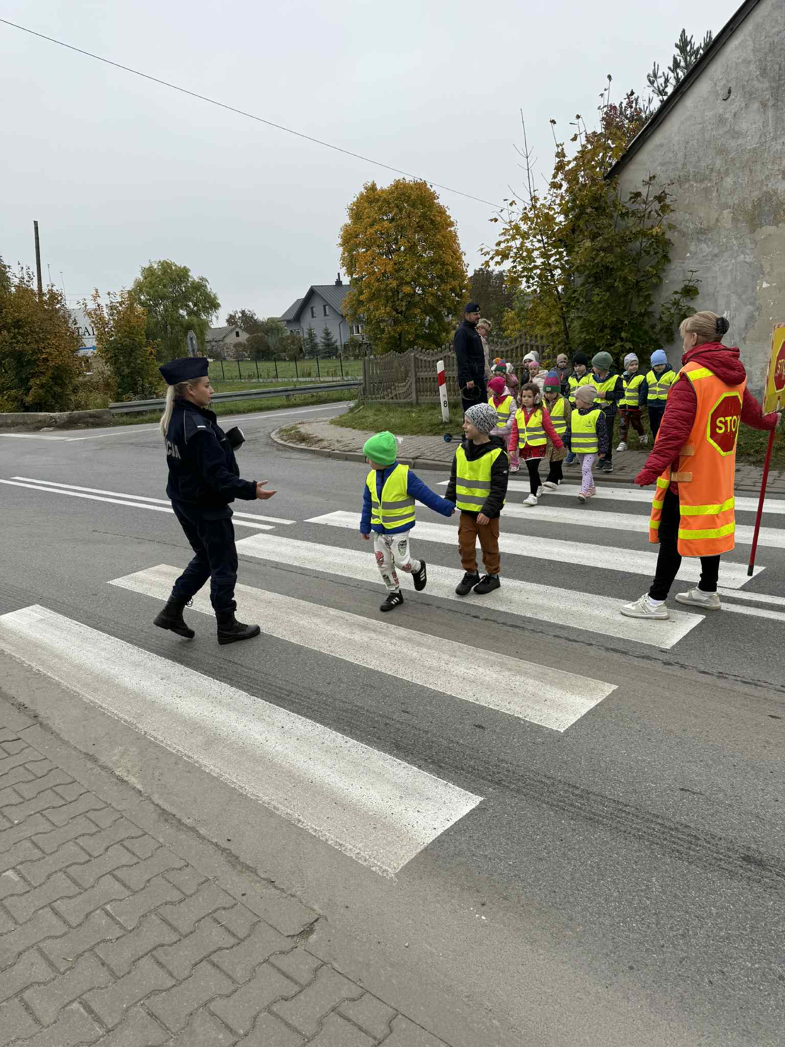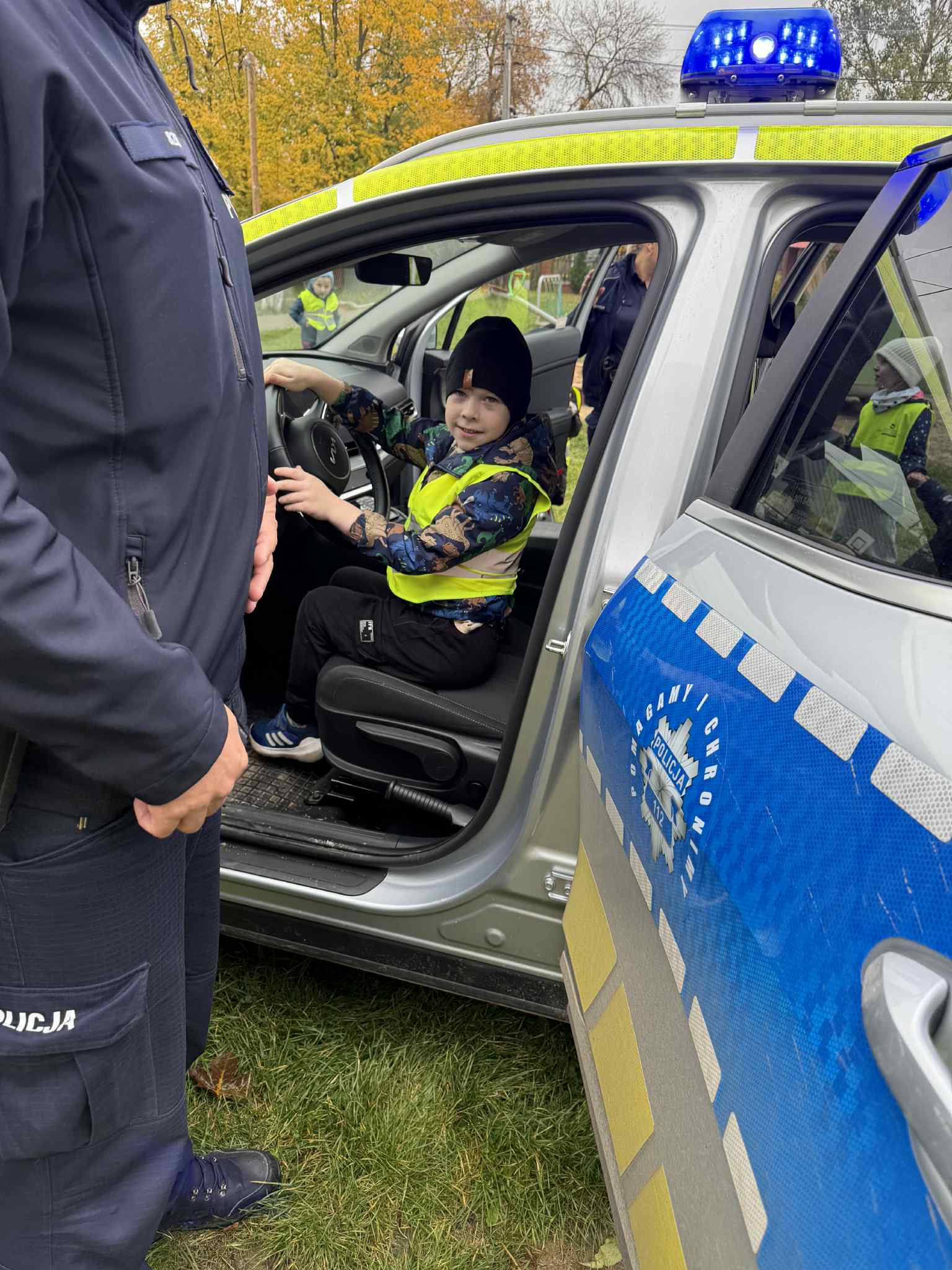 W naszym przedszkolu i szkole odbyło się spotkanie z policjantami. Tematem spotkania było utrwalenie z dziećmi z oddziału przedszkolnego oraz klas 1-3, zasad ruchu drogowego oraz przypomnienie zagadnień dotyczących bezpieczeństwa dzieci w przedszkolu i w domu. Policjanci, w formie praktycznej, przypomnieli podstawowe zasady zachowania się podczas przechodzenia przez jezdnię oraz sposoby poruszania się hulajnogą na chodniku i przejściu dla pieszych. Następnie wytłumaczyli, jak należy zachować się w kontaktach z obcymi ludźmi, jak dbać o bezpieczeństwo własne i innych oraz do kogo zwracać się o pomoc w sytuacji zagrożenia. Dzieci z dużym zainteresowaniem słuchały rad i wskazówek zaproszonych gości. Przedszkolaki mogły również zobaczyć, jak wygląda policyjny radiowóz od środka, używały sygnałów świetlnych, dźwiękowych oraz korzystały z megafonu. Na zakończenie wizyty dzieci wręczyły policjantom podziękowanie.