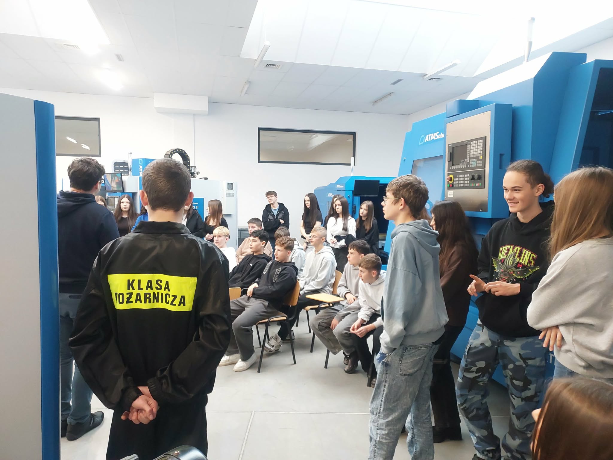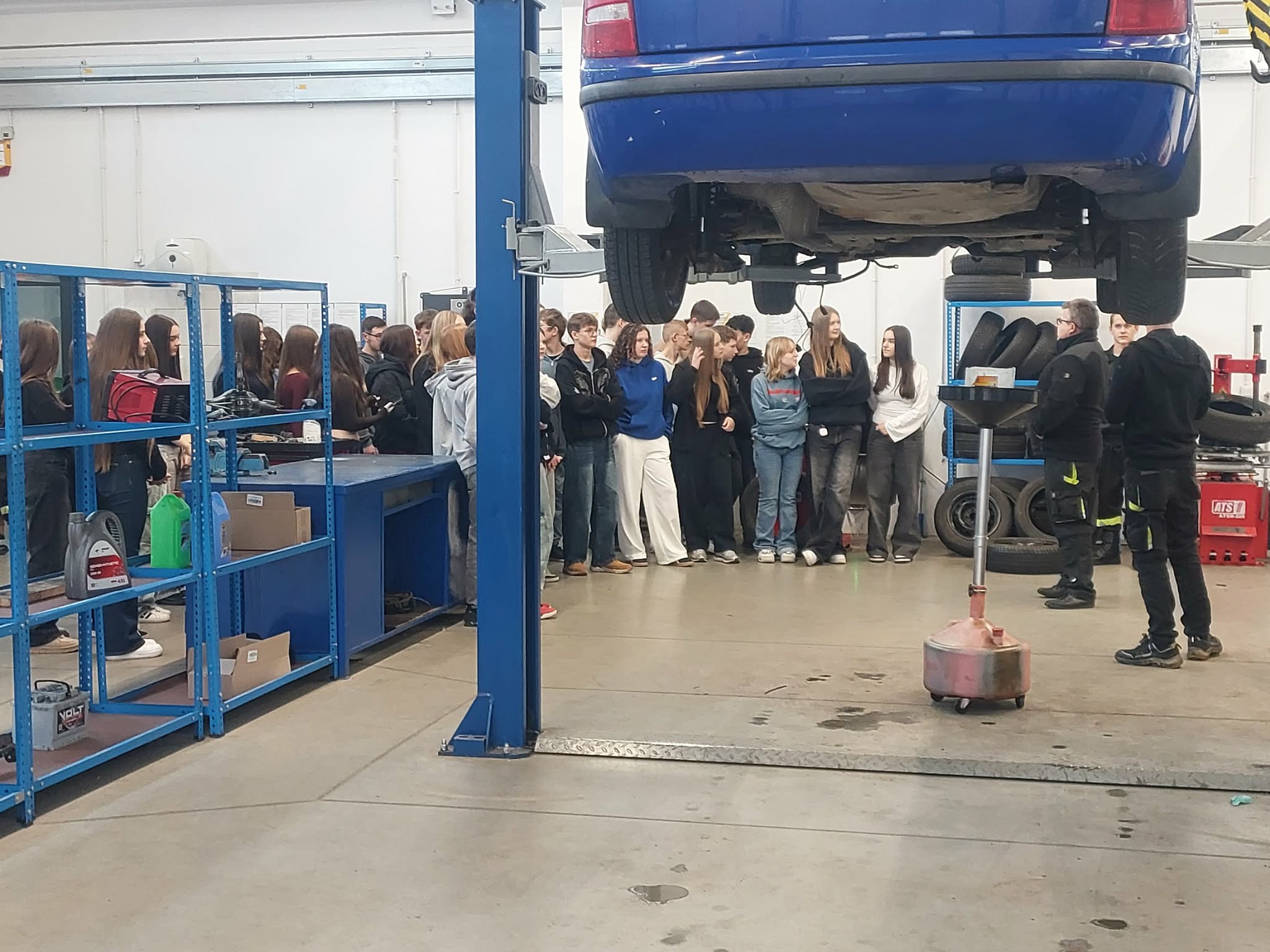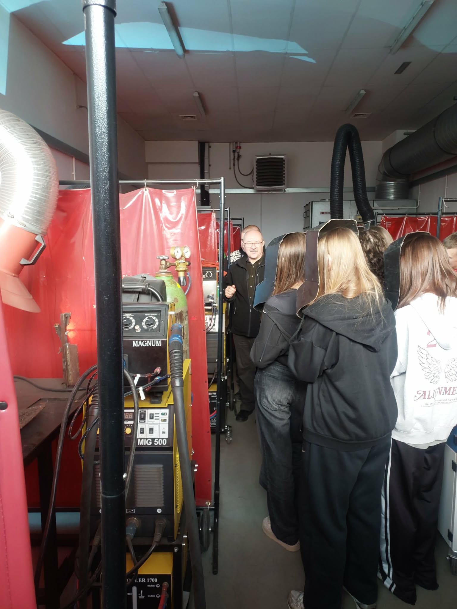Następnie uczniowie zwiedzili sale warsztatów logistycznych, warsztat samochodowy, lakiernię, pracownię spawalniczą oraz nowoczesną tokarnie. W poszczególnych pracowniach każdy kierunek kształcenia zawodowego był szczegółowo omawiany przez nauczycieli przedmiotów zawodowych.