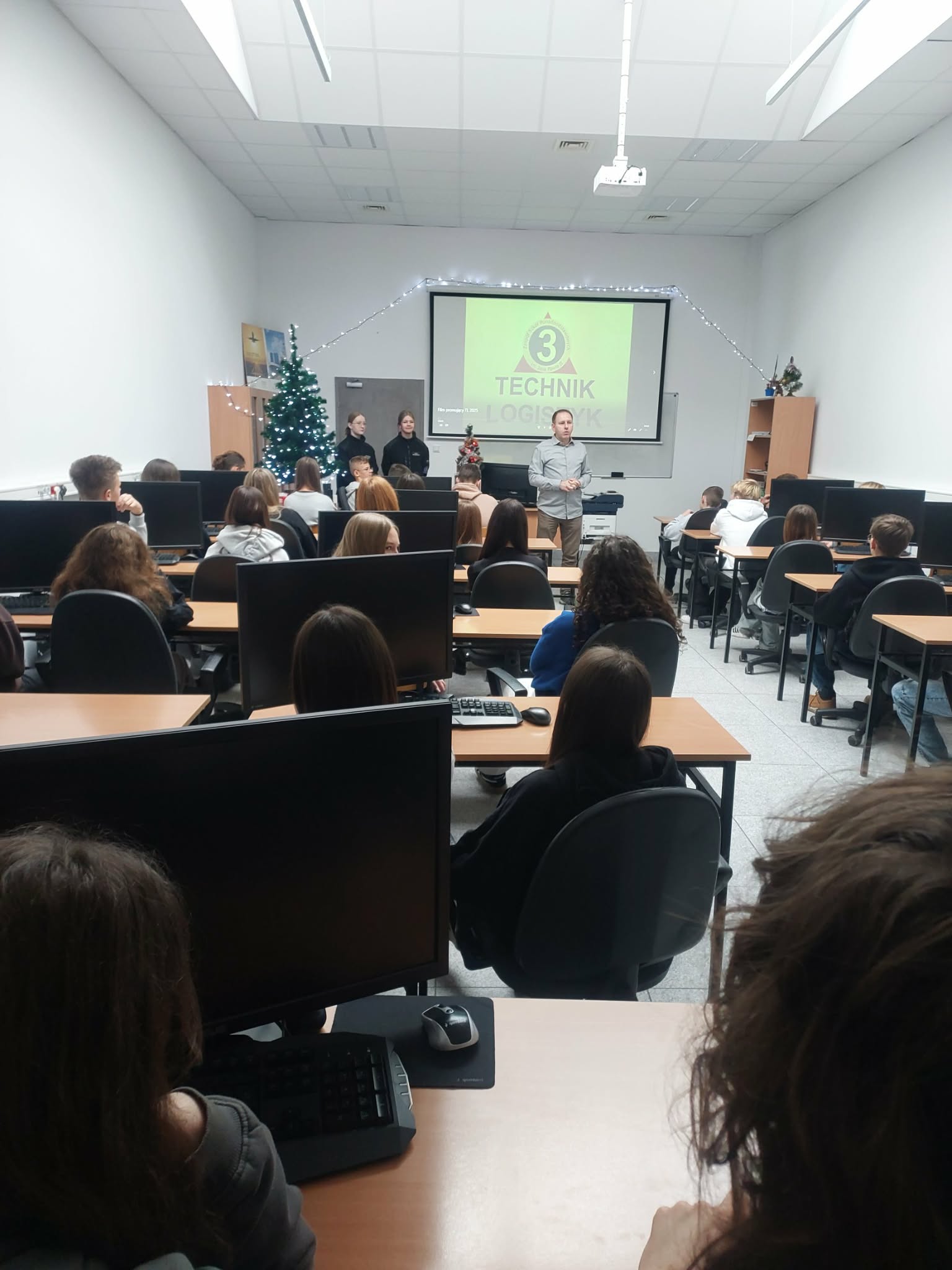Wizytę rozpoczęła prelekcja w szkolnej auli, prowadzona przez kierownika Dariusza Piotrowskiego, nauczycielkę przedmiotów zawodowych o specjalności logistyk – Katarzynę Osiadacz oraz doradcę zawodowego ZSP nr 3 – Żanetę Koprek.