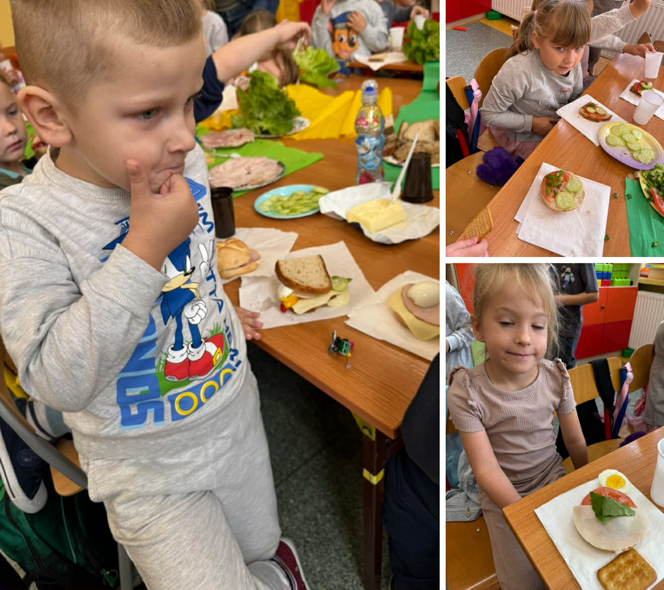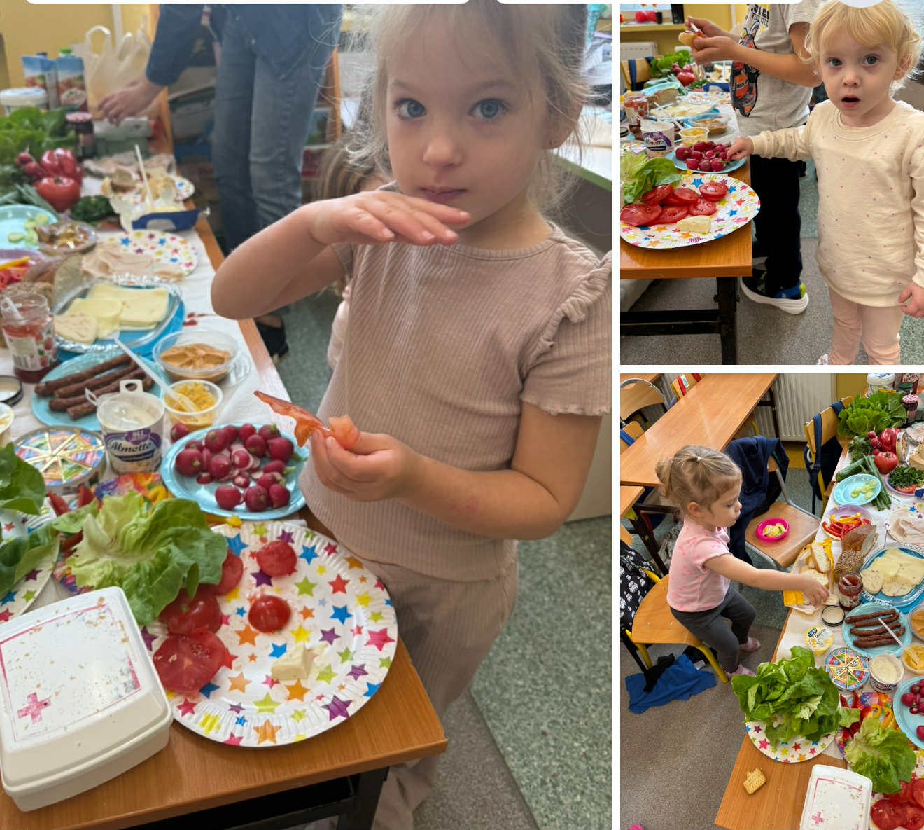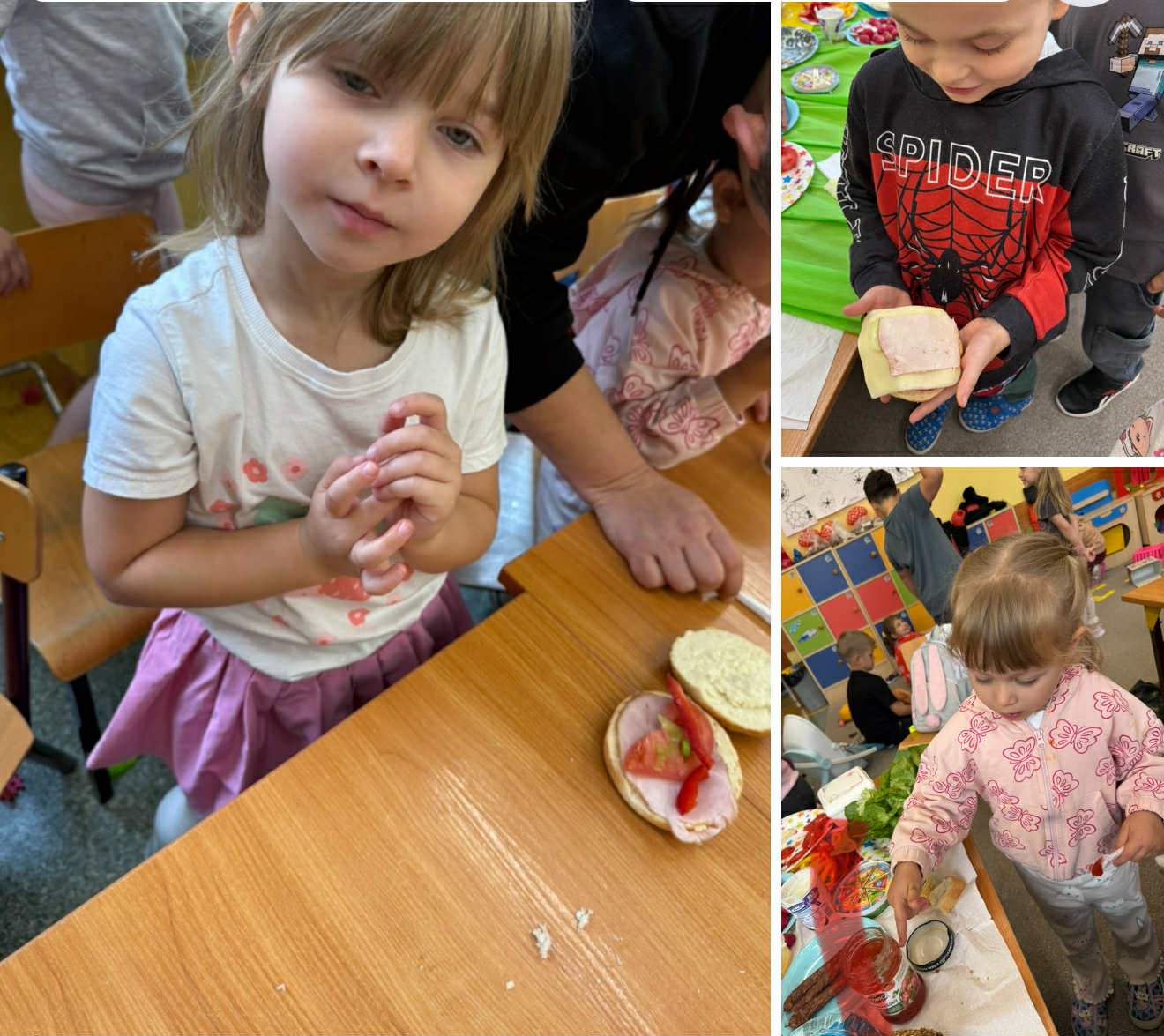 Mamo, dziś zrobiłem kanapkę sam! I bez ciebie!” “Naprawdę?” – zdziwiła się mama. “Tak! A wiesz, z czym ją zrobiłem?” “Z czym?” – zapytała z uśmiechem. “Z ogórkiem i pomidorem! I zjadłem całą!” Takie rozmowy po przedszkolu to dla rodziców największa nagroda – bo za tymi słowami kryją się nauka samodzielności, zdrowe nawyki i duma z małych sukcesów. Właśnie taki był dzień, który przeżyły nasze przedszkolaki z grup „Żabki” i „Słoneczka” – pełen nowych smaków, śmiechu, kolorów, warzyw, zabawy i twarzy umazanych twarożkiem…