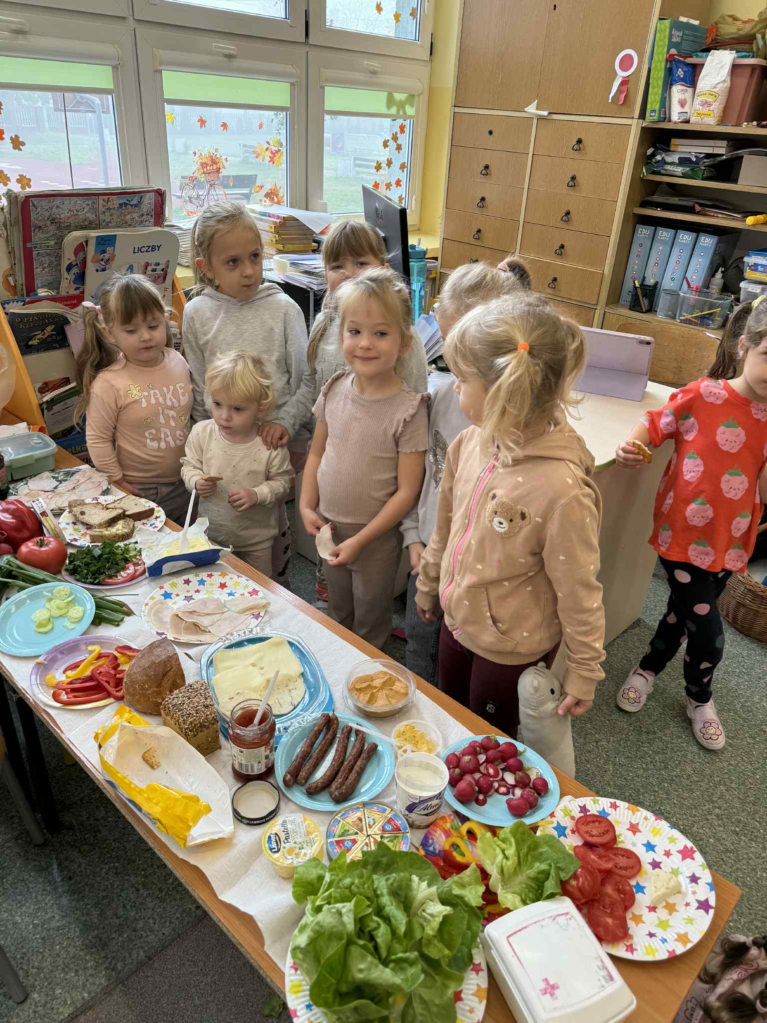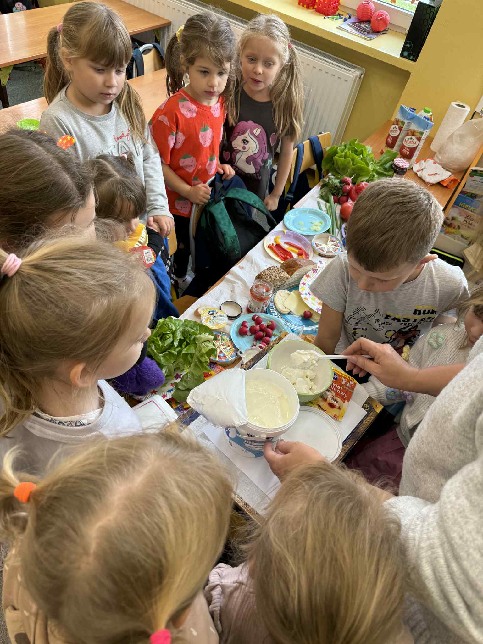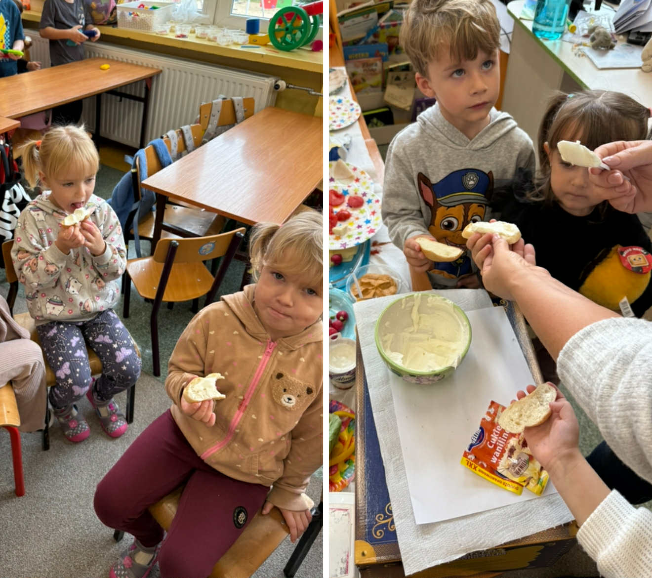 Mamo, dziś zrobiłem kanapkę sam! I bez ciebie!” “Naprawdę?” – zdziwiła się mama. “Tak! A wiesz, z czym ją zrobiłem?” “Z czym?” – zapytała z uśmiechem. “Z ogórkiem i pomidorem! I zjadłem całą!” Takie rozmowy po przedszkolu to dla rodziców największa nagroda – bo za tymi słowami kryją się nauka samodzielności, zdrowe nawyki i duma z małych sukcesów. Właśnie taki był dzień, który przeżyły nasze przedszkolaki z grup „Żabki” i „Słoneczka” – pełen nowych smaków, śmiechu, kolorów, warzyw, zabawy i twarzy umazanych twarożkiem…