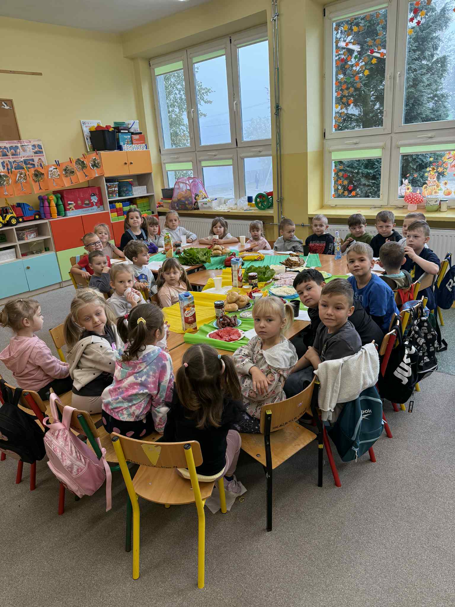 W naszym przedszkolu dobrze wiemy, że zdrowe śniadanie to podstawa dobrego dnia – daje energię, uśmiech i siłę do zabawy oraz nauki. Dlatego grupy „Żabki” i „Słoneczka” postanowiły bliżej poznać tajniki tego najważniejszego posiłku. I to nie z książki, a w praktyce – tworząc własne, zdrowe śniadanie! Dzieci przyniosły do przedszkola kolorowe warzywa, pieczywo, twarożek i inne pyszne dodatki. Na stołach pojawiły się rzodkiewki, ogórki, pomidory, szczypiorek, sałata, jajka. Każdy mógł stworzyć swoją wymarzoną kanapkę – zdrową, kolorową i wyjątkową. Niektóre wyglądały jak tęcze, inne jak uśmiechnięte buzie, a wszystkie były zrobione z wielką starannością. Dzieci z zapałem smarowały, układały składniki i z dumą prezentowały swoje dzieła: „Moja kanapka ma oczy jajek i nos z ogórka!” – pochwalił się jeden z chłopców z grupy Żabek. „A moja jest jak kwiatek!” – dodała dziewczynka ze Słoneczek. To jednak nie koniec kulinarnej przygody! Tego dnia dzieci nauczyły się także, jak przygotować twarożek w wersji na słodko. Okazało się, że to połączenie bardzo przypadło im do gustu. Niektórzy prosili nawet o dokładkę! Po wspólnym śniadaniu przyszedł czas na… warzywne zabawy! Dzieci bawiły się w układanie warzyw we wskazane miejsce. Było przy tym mnóstwo śmiechu i radości.