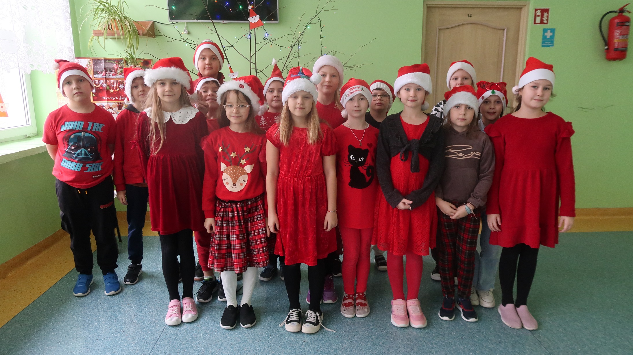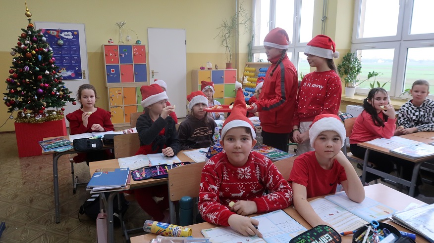 5 grudnia 2025r. Samorząd Uczniowski zorganizował w naszej szkole radosną akcję mikołajkową. Tego dnia każdy uczeń, który przyszedł do szkoły w czapce Mikołaja, mógł liczyć na wyjątkowy przywilej – zwolnienie z odpowiedzi ustnych. W klasach panował świąteczny nastrój, a czerwone czapki wprowadziły do szkoły dużo uśmiechu i pozytywnej energii. Tego dnia naszą szkołę odwiedził również długo wyczekiwany Gość – Święty Mikołaj! Uczniowie z ogromną radością witali Mikołaja, który obdarował każdą klasę uśmiechem, dobrym słowem i świeżymi owocami. Dziękujemy uczniom za tak liczny udział i wspólne tworzenie mikołajkowej atmosfery!