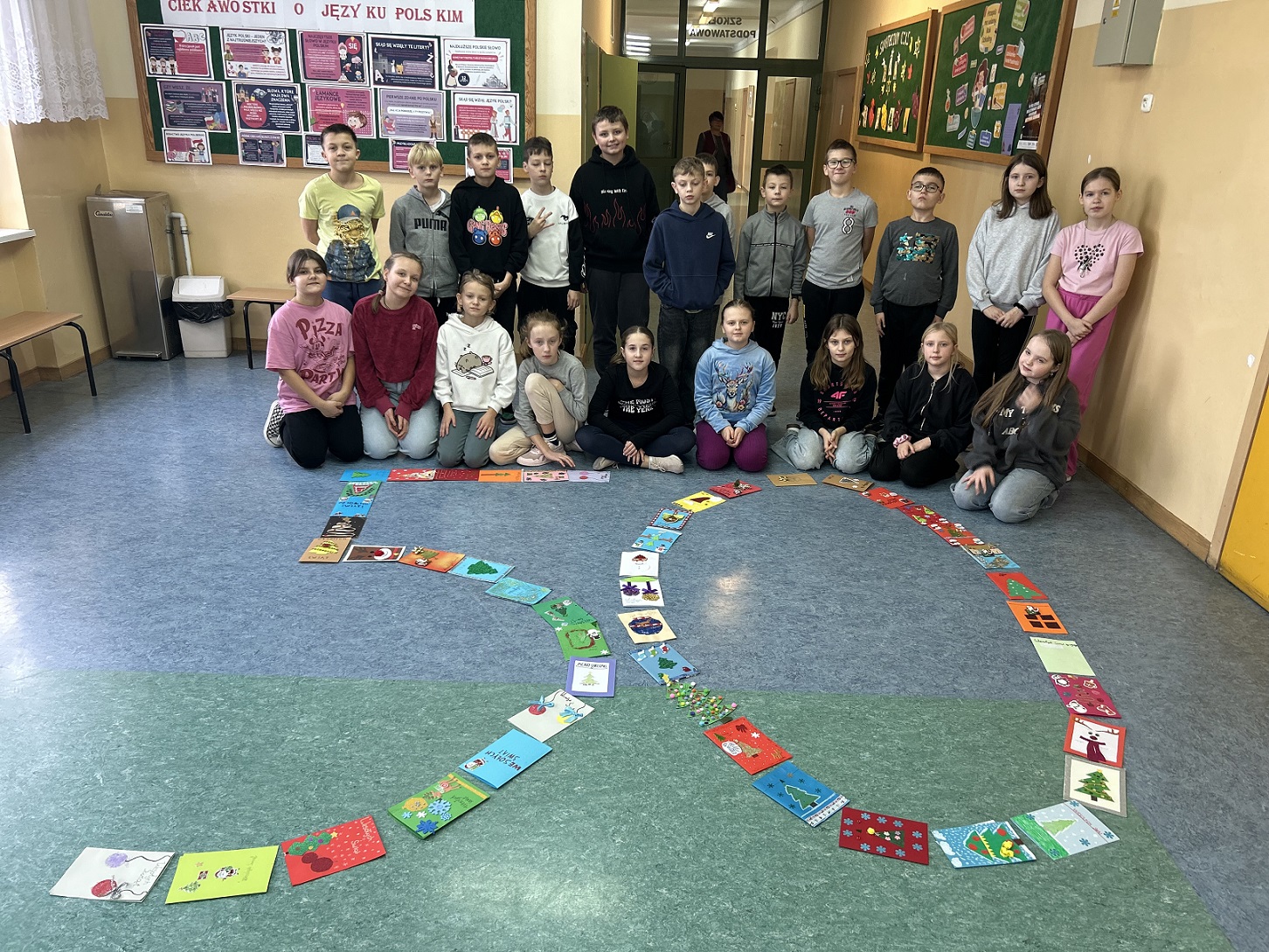 W świątecznej, pełnej radości atmosferze powstały piękne kartki, które utworzyły symboliczną liczbę 50, podkreślając jubileusz istnienia naszej szkoły. Wszystkie karty zostały rozdane pracownikom pedagogicznym i niepedagogicznym naszej szkoły podczas szkolnych jasełek .