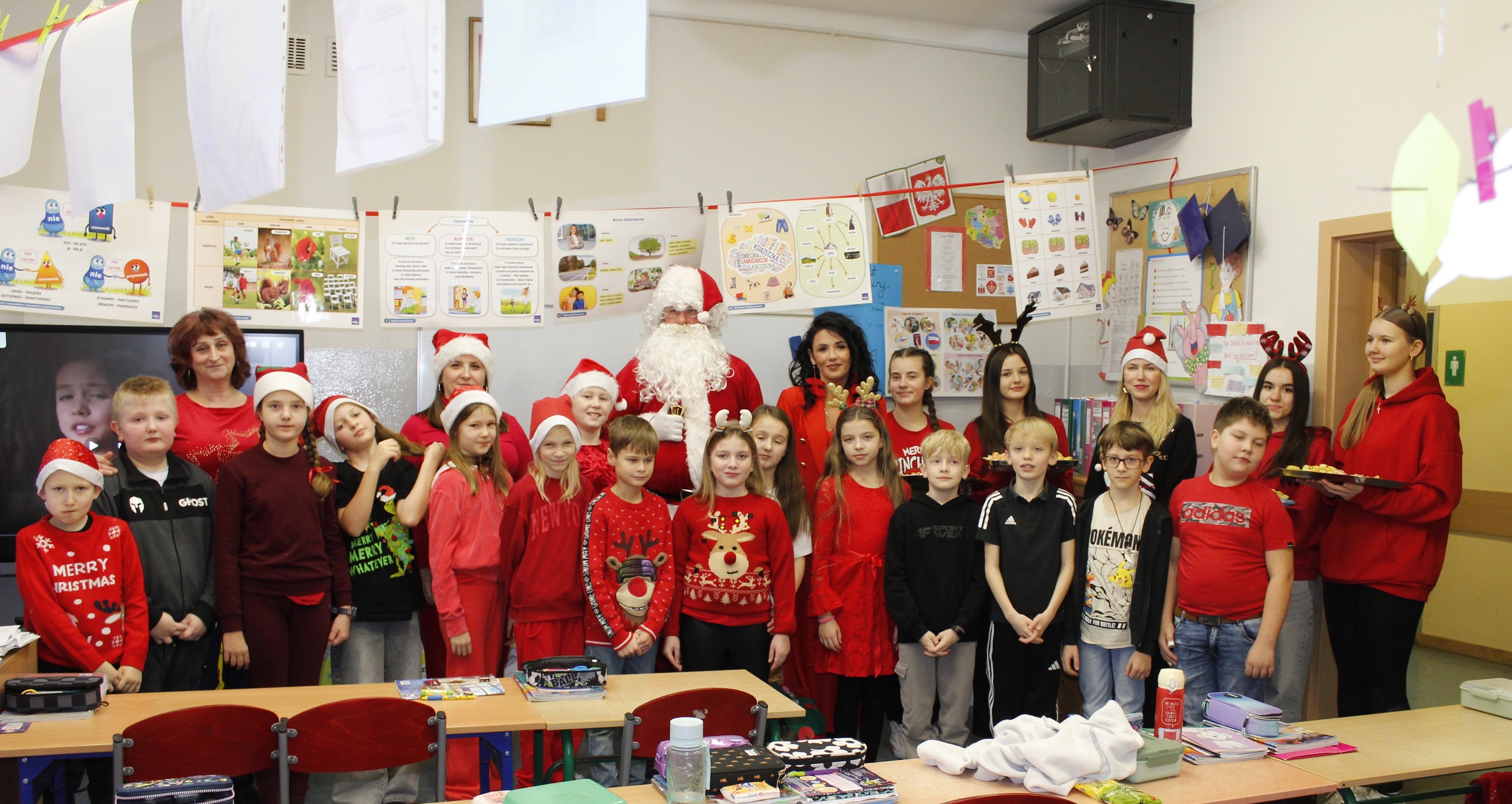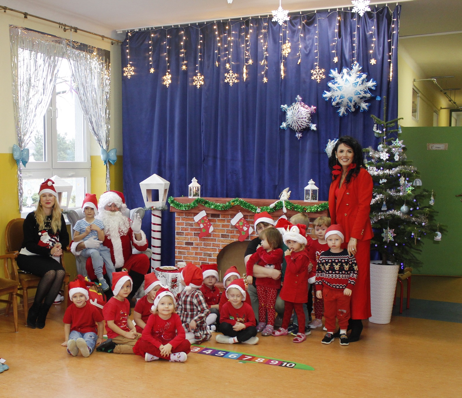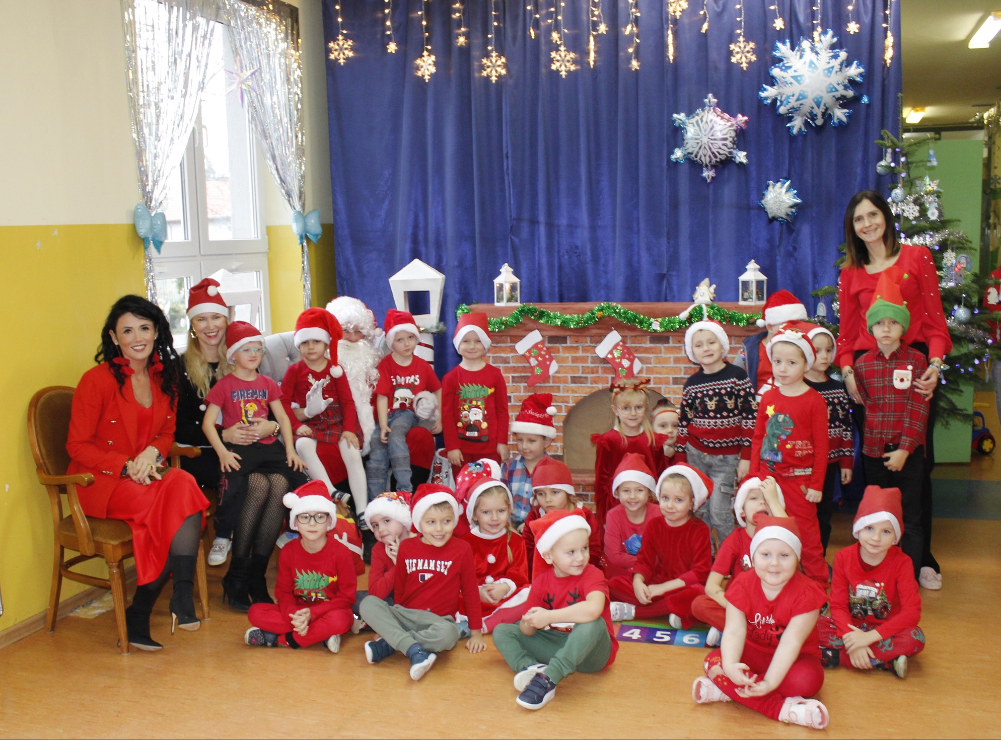 Dzisiejszy dzień wypełniła wyjątkowa, świąteczna atmosfera. Wśród dzieci dominowały czerwone akcenty, mikołajowe czapki oraz wesołe „Ho, ho, ho!” rozbrzmiewało w całej szkole i oddziale przedszkolnym. Najważniejszym punktem dnia była oczywiście wizyta Świętego Mikołaja, który sprawił, że na twarzach wszystkich dzieci pojawiły się szerokie uśmiechy. W towarzystwie Pani Dyrektor Agaty Ewy Ostalskiej oraz Zastępcy Wójta Pani Iwony Łuszcz-Krawczyk odwiedzał przedszkole i klasy, obdarowując drobnymi upominkami. Dzieci chętnie rozmawiały z Mikołajem, prezentowały piosenki i wierszyki, a niektórzy odważnie odpowiadali na jego żartobliwe pytania. Magiczny nastrój udzielił się wszystkim - pełen radości, ciepła i świątecznego czaru!
