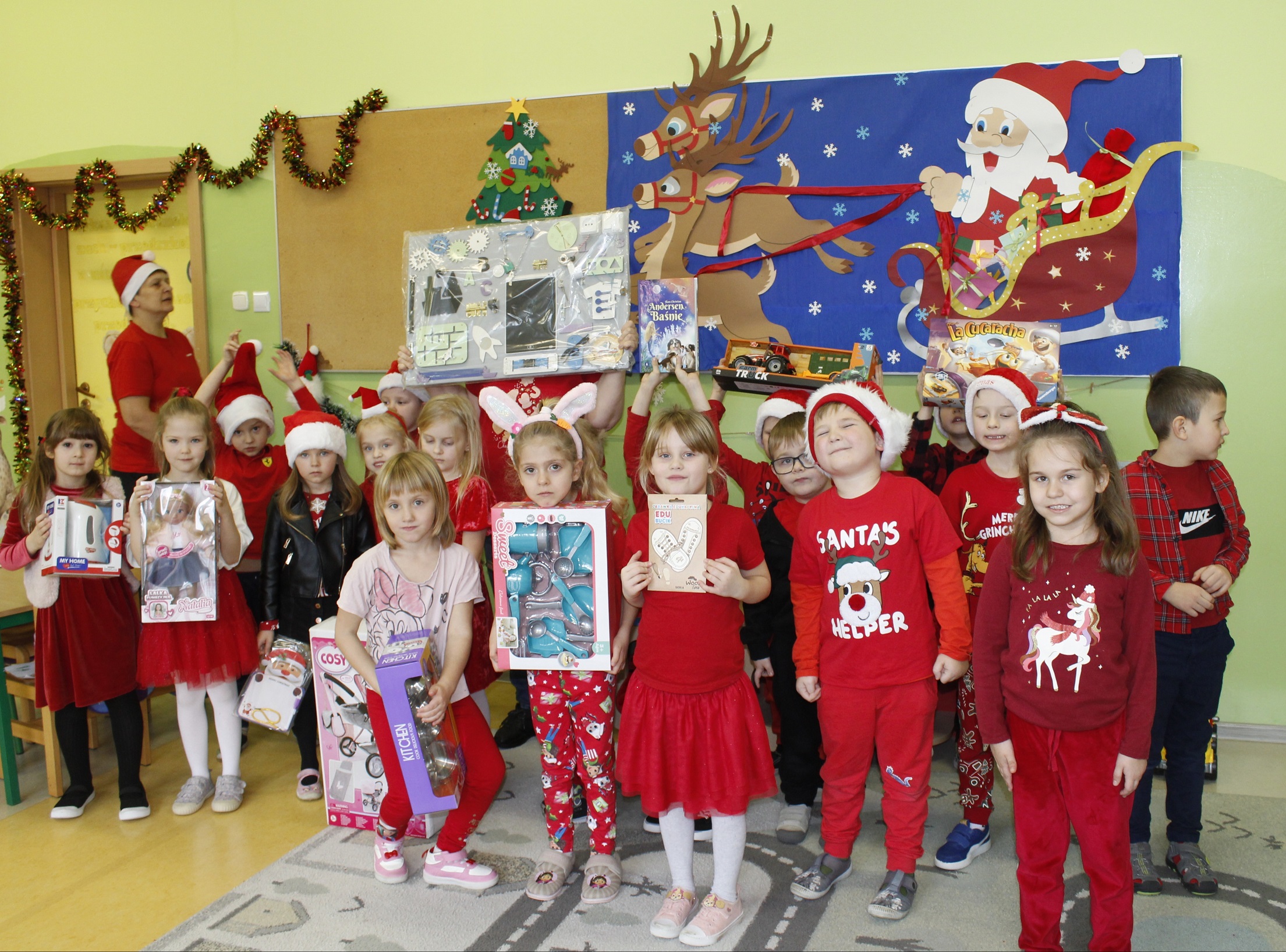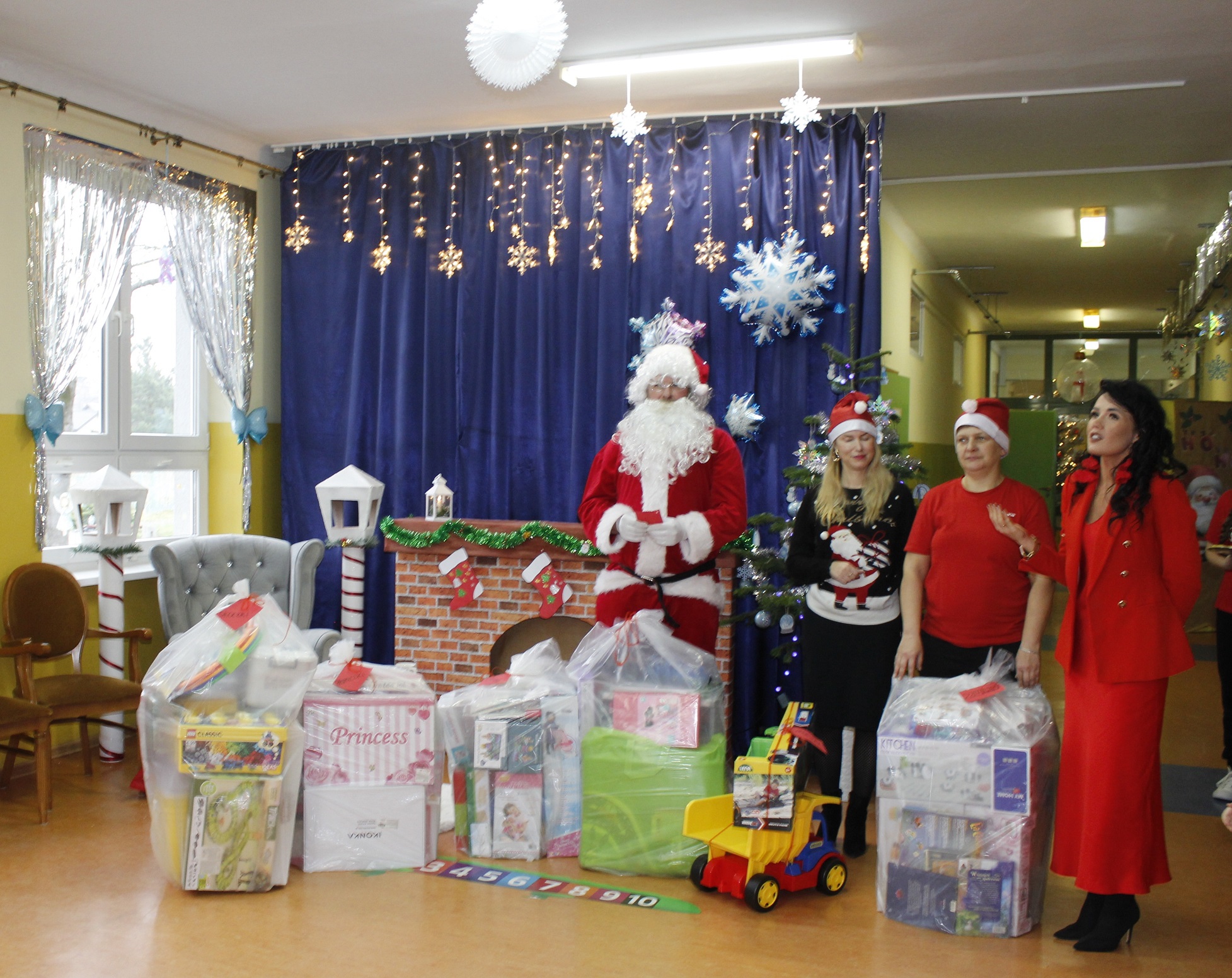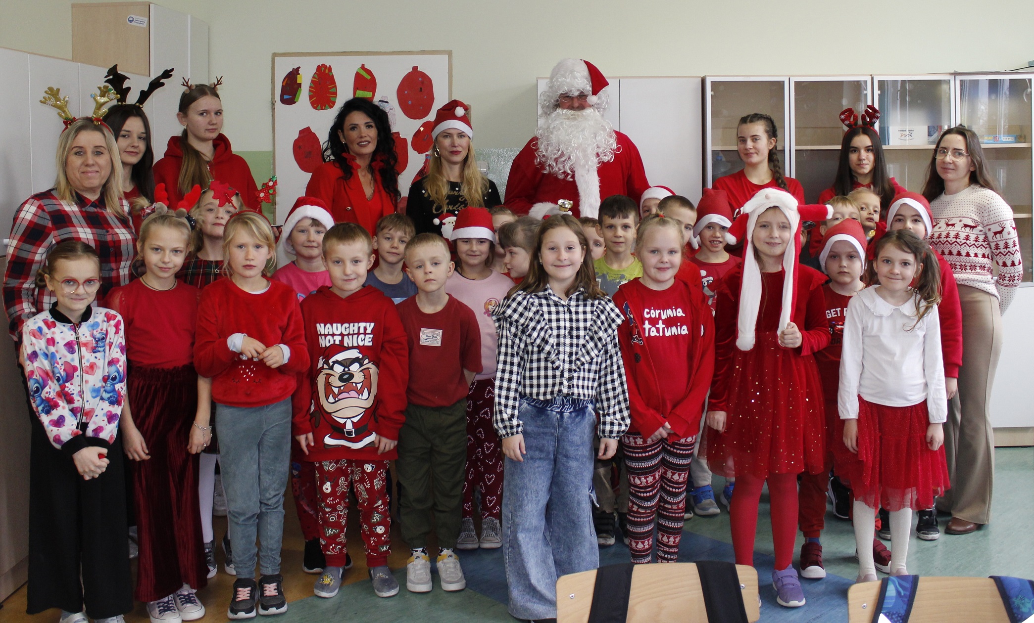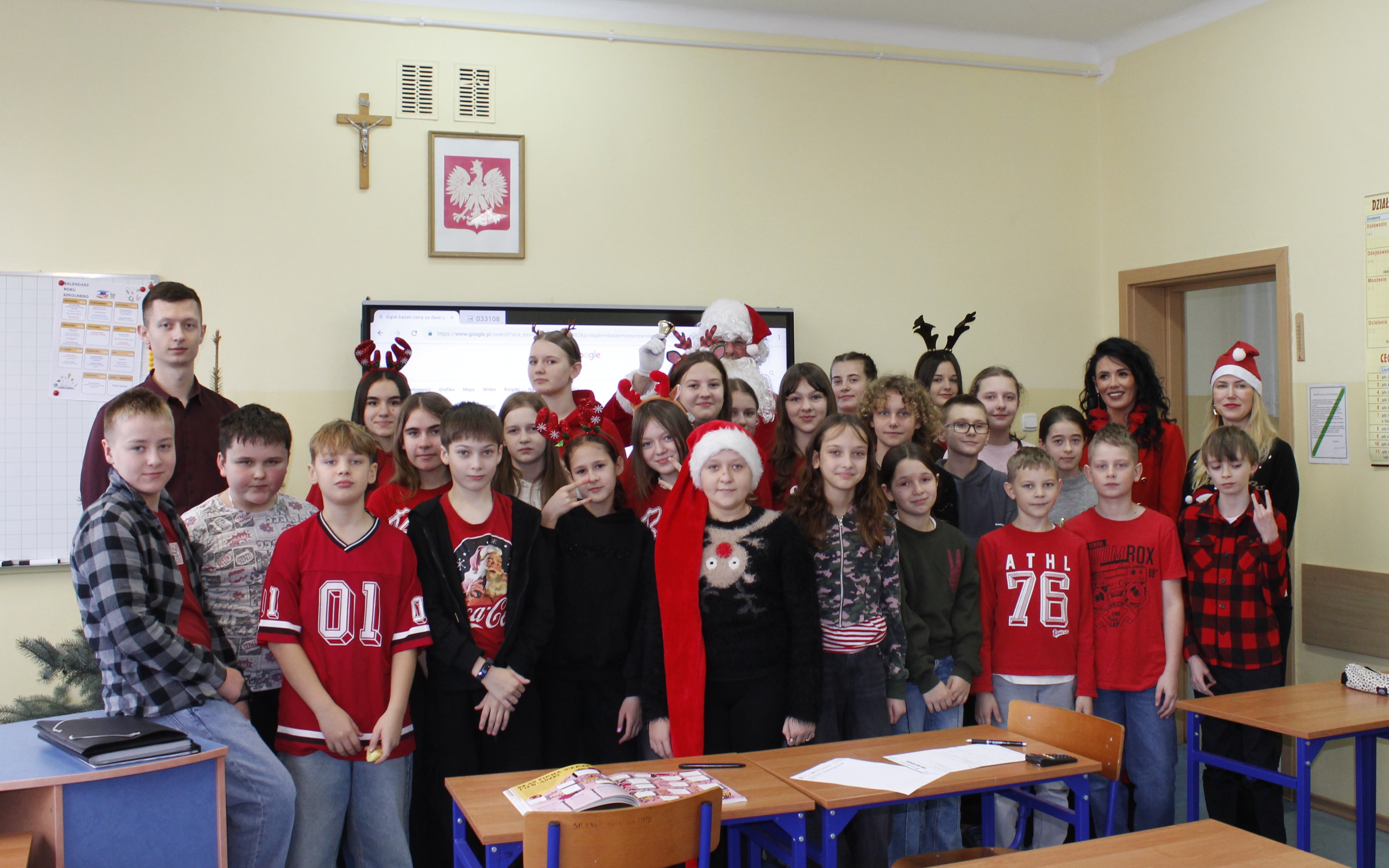 Dzisiejszy dzień wypełniła wyjątkowa, świąteczna atmosfera. Wśród dzieci dominowały czerwone akcenty, mikołajowe czapki oraz wesołe „Ho, ho, ho!” rozbrzmiewało w całej szkole i oddziale przedszkolnym. Najważniejszym punktem dnia była oczywiście wizyta Świętego Mikołaja, który sprawił, że na twarzach wszystkich dzieci pojawiły się szerokie uśmiechy. W towarzystwie Pani Dyrektor Agaty Ewy Ostalskiej oraz Zastępcy Wójta Pani Iwony Łuszcz-Krawczyk odwiedzał przedszkole i klasy, obdarowując drobnymi upominkami. Dzieci chętnie rozmawiały z Mikołajem, prezentowały piosenki i wierszyki, a niektórzy odważnie odpowiadali na jego żartobliwe pytania. Magiczny nastrój udzielił się wszystkim - pełen radości, ciepła i świątecznego czaru!