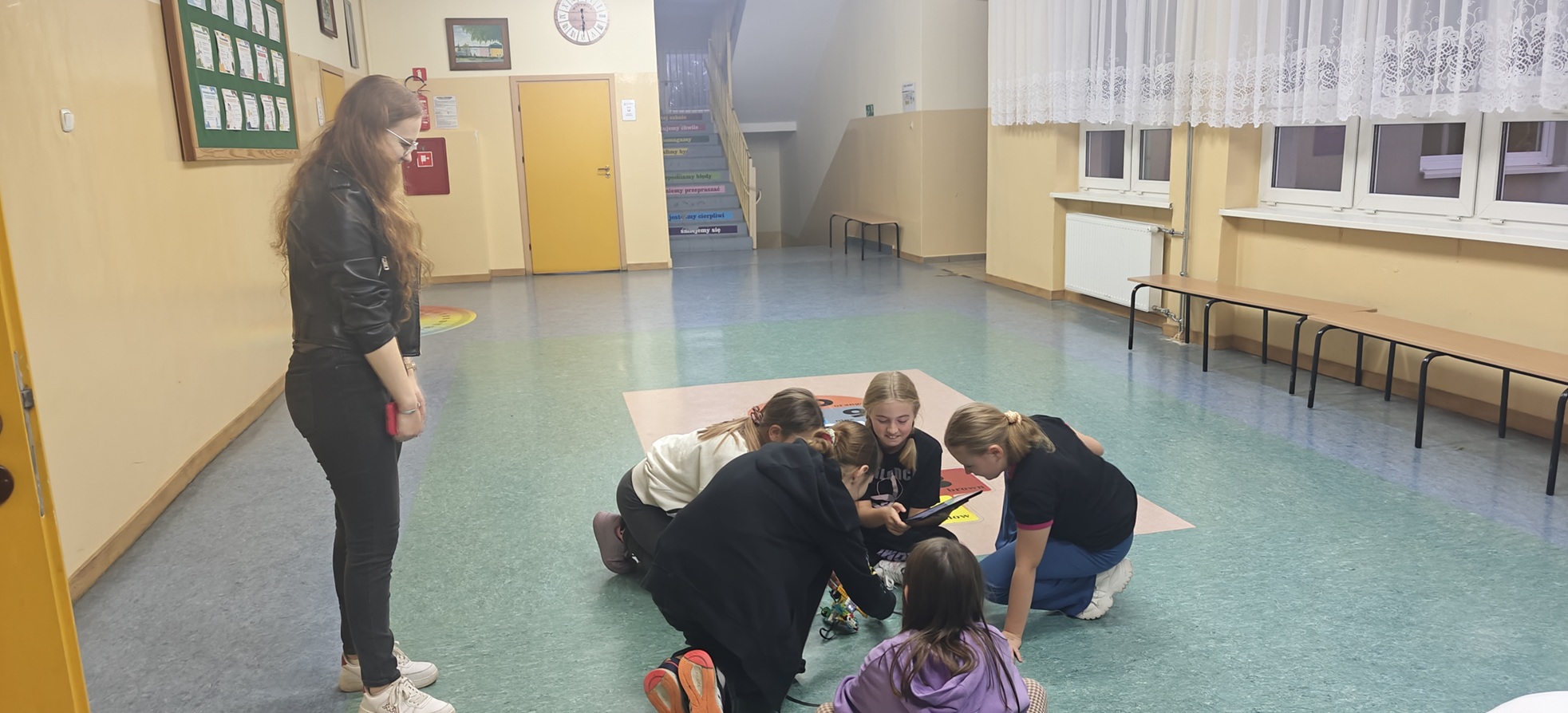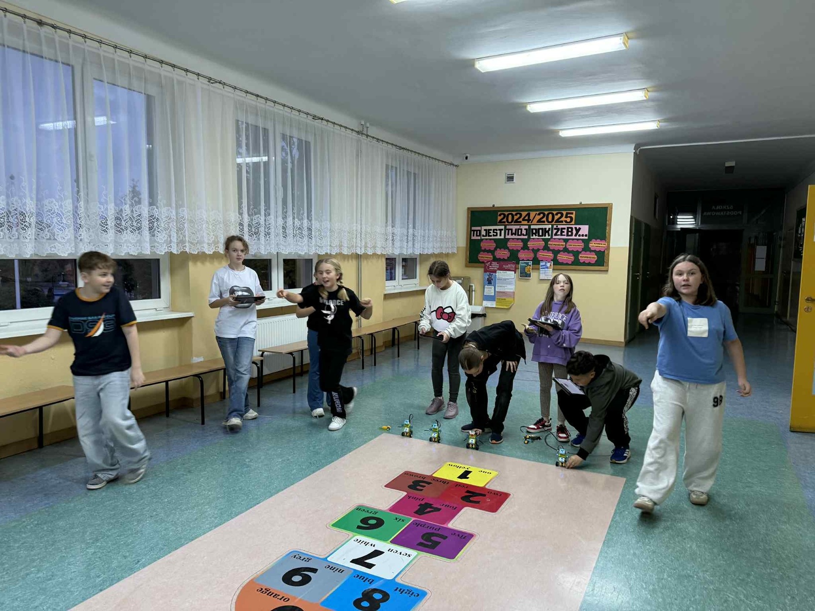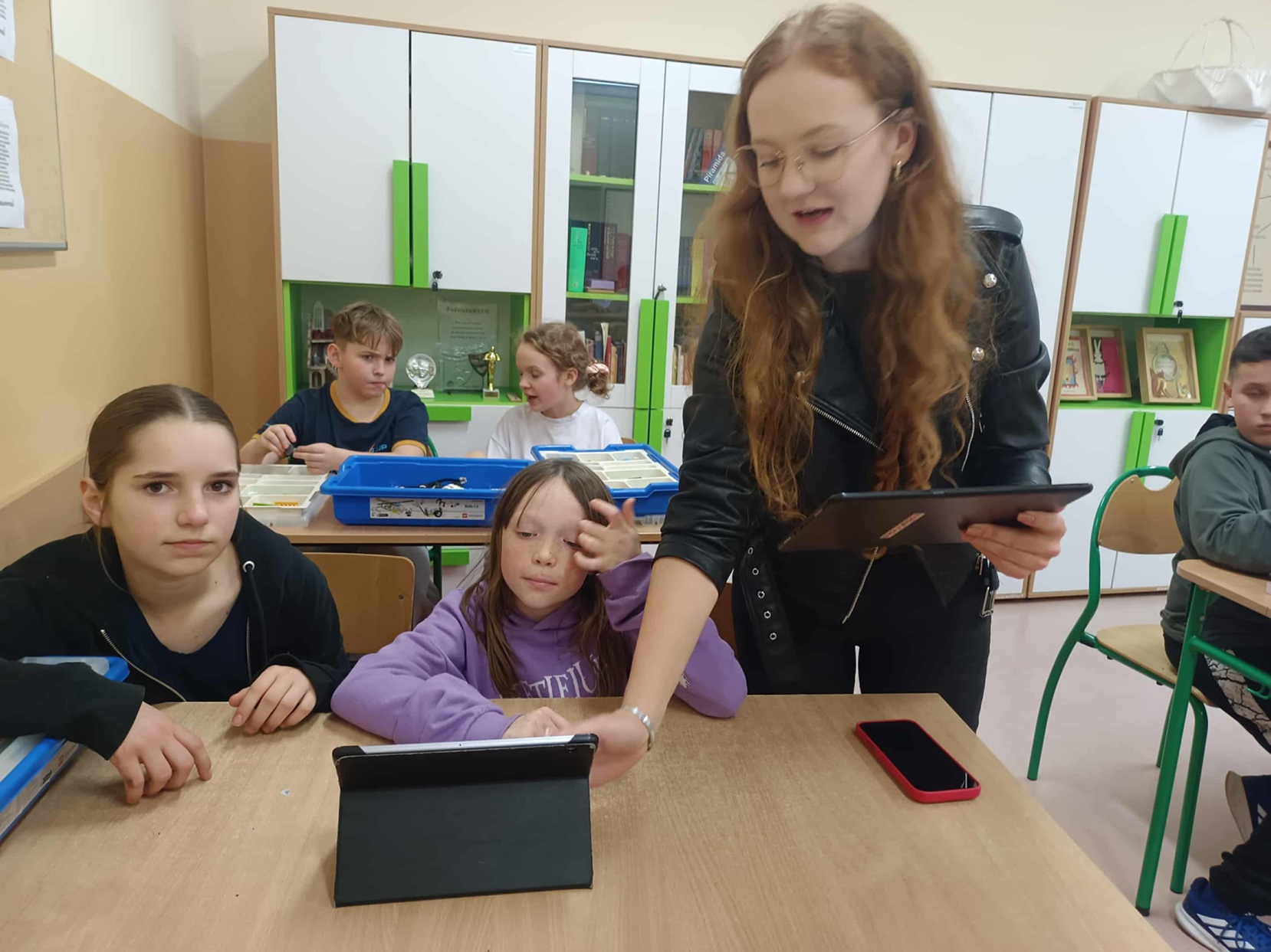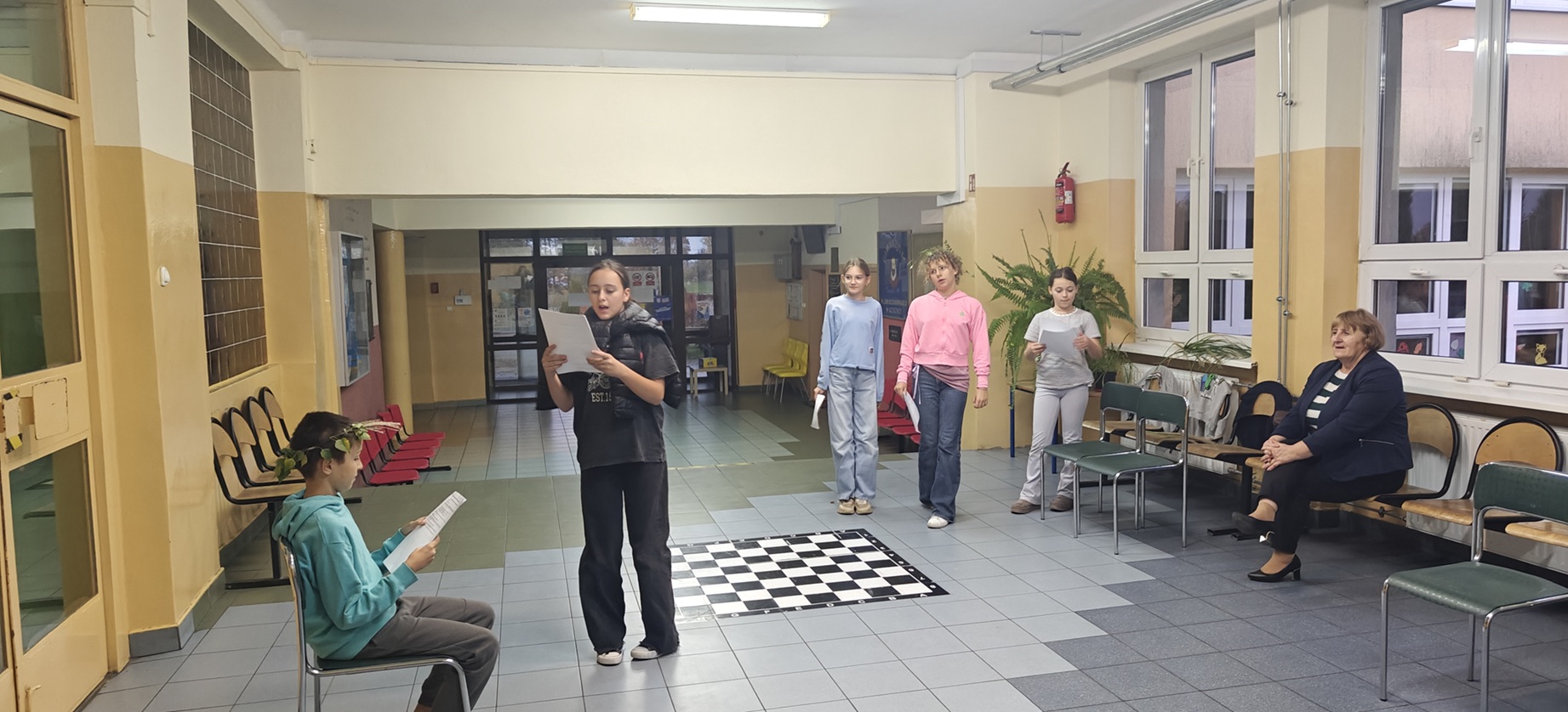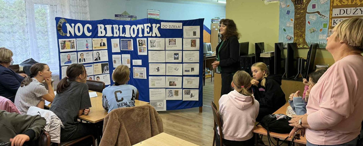 Nasza Noc Bibliotek rozpoczęła się w bibliotece szkolnej. Pani Monika Fau, prowadząca bibliotekę szkolną, omówiła uczniom na podstawie przygotowanych wystawek historię pisma i książki oraz przedstawiła sławnych ludzi, którzy czytają bardzo wiele i podkreślają istotę czytelnictwa jak i wartość płynącą z wiedzy książkowej. Po części informacyjnej uczniowie podzielili się na dwie grupy. Pierwsza z nich udała się na zajęcia z robotyki z klockami LEGO, które poprowadziła Sara Fau, a grupa druga pod opieką polonistki pani Jadwigi Kowalczyk rozpoczęła przygotowanie scenki mitologicznej „Demeter i Kora”. Po przygotowaniu i przedstawieniu scenki w swojej grupie na holu uczniowie uczestniczyli w podchodach przygotowanych przez panią Monikę Fau. Uczniowie, aby wykonać kolejne zadania rozwiązywali łamigłówki matematyczne, odczytywali mapy, wykonywali ćwiczenia na podstawie poleceń w języku angielskim, poszukiwali informacji i rozwiązań z wykorzystaniem Internetu, poznali legendę związaną z Biblioteką Aleksandryjską oraz odpowiedzieli na pytanie kto był założycielem tejże biblioteki. Po wykonaniu zadań uczniowie zmienili grupy - uczniowie z grupy drugiej udali się na zajęcia z robotyki, a grupa pierwsza pod opieką pani Jadwigi Kowalczyk rozpoczęła przygotowania scenki do mitu „Prometeusz”. Scenkę przedstawili na holu szkolnym, a następnie wzięli udział w podchodach, podobnie jak uczniowie z grupy pierwszej.
