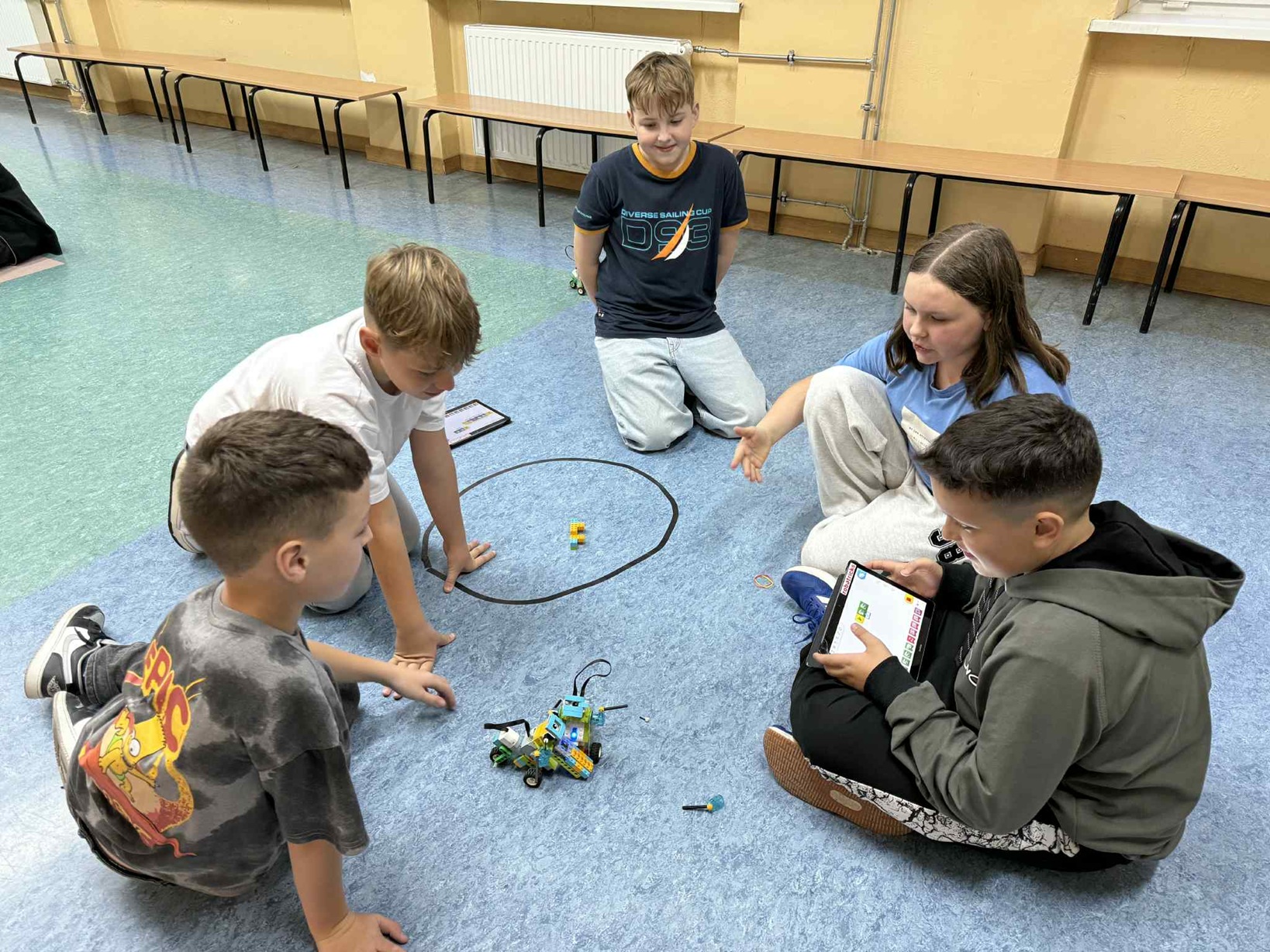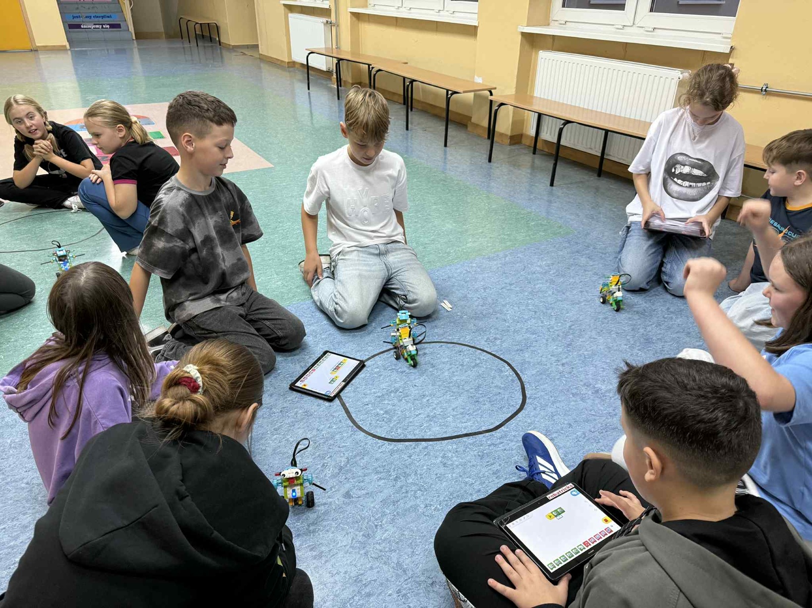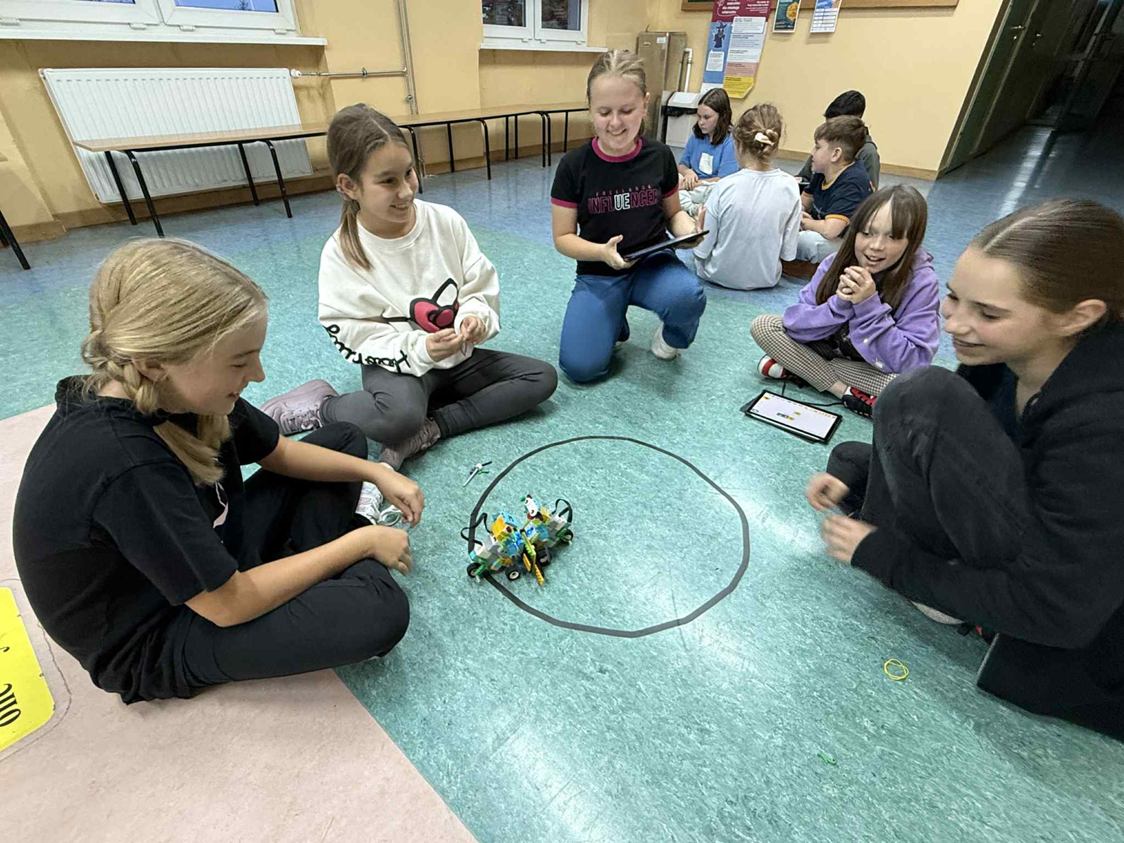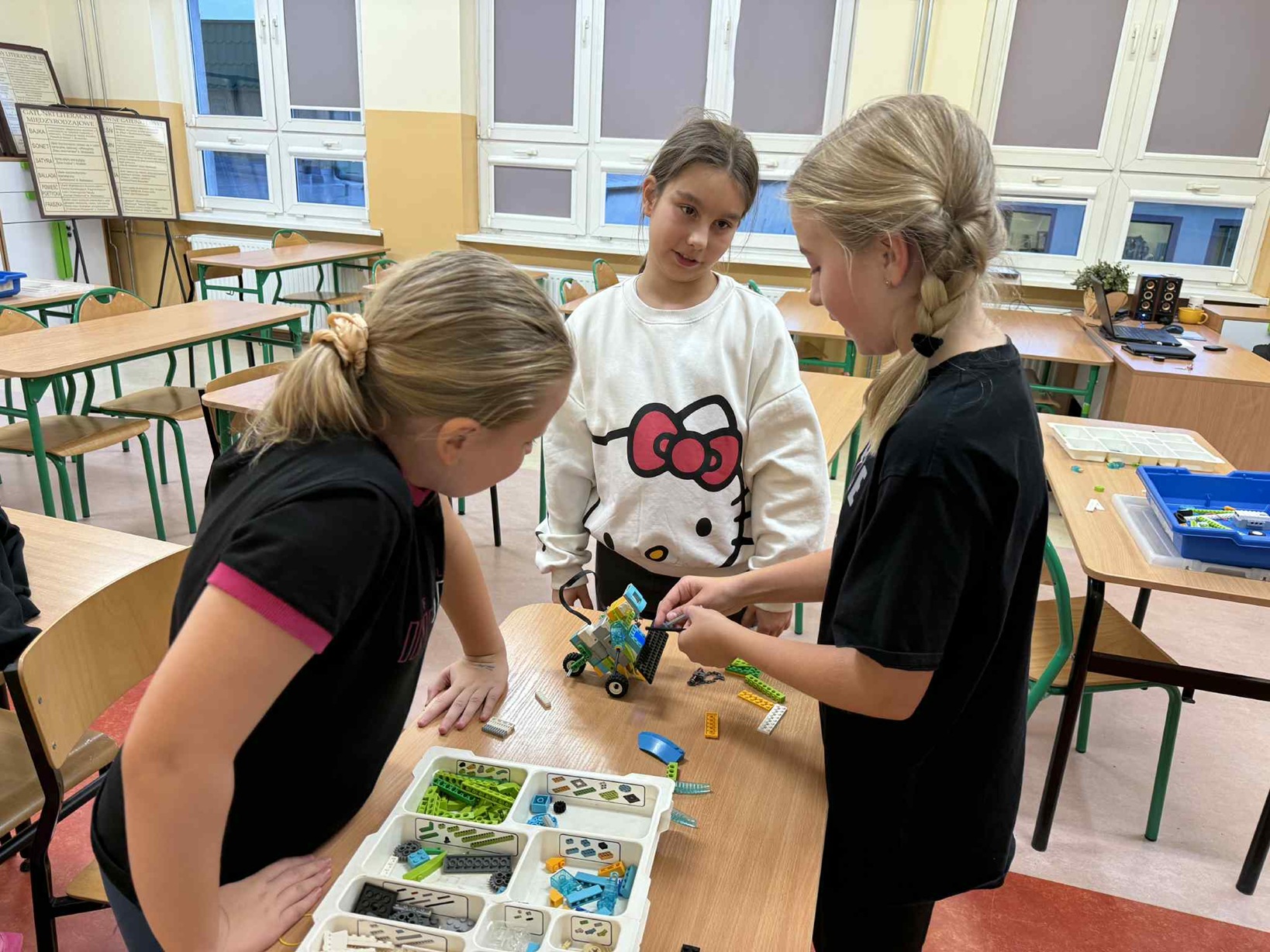 Nasza Noc Bibliotek rozpoczęła się w bibliotece szkolnej. Pani Monika Fau, prowadząca bibliotekę szkolną, omówiła uczniom na podstawie przygotowanych wystawek historię pisma i książki oraz przedstawiła sławnych ludzi, którzy czytają bardzo wiele i podkreślają istotę czytelnictwa jak i wartość płynącą z wiedzy książkowej. Po części informacyjnej uczniowie podzielili się na dwie grupy. Pierwsza z nich udała się na zajęcia z robotyki z klockami LEGO, które poprowadziła Sara Fau, a grupa druga pod opieką polonistki pani Jadwigi Kowalczyk rozpoczęła przygotowanie scenki mitologicznej „Demeter i Kora”. Po przygotowaniu i przedstawieniu scenki w swojej grupie na holu uczniowie uczestniczyli w podchodach przygotowanych przez panią Monikę Fau. Uczniowie, aby wykonać kolejne zadania rozwiązywali łamigłówki matematyczne, odczytywali mapy, wykonywali ćwiczenia na podstawie poleceń w języku angielskim, poszukiwali informacji i rozwiązań z wykorzystaniem Internetu, poznali legendę związaną z Biblioteką Aleksandryjską oraz odpowiedzieli na pytanie kto był założycielem tejże biblioteki. Po wykonaniu zadań uczniowie zmienili grupy - uczniowie z grupy drugiej udali się na zajęcia z robotyki, a grupa pierwsza pod opieką pani Jadwigi Kowalczyk rozpoczęła przygotowania scenki do mitu „Prometeusz”. Scenkę przedstawili na holu szkolnym, a następnie wzięli udział w podchodach, podobnie jak uczniowie z grupy pierwszej.