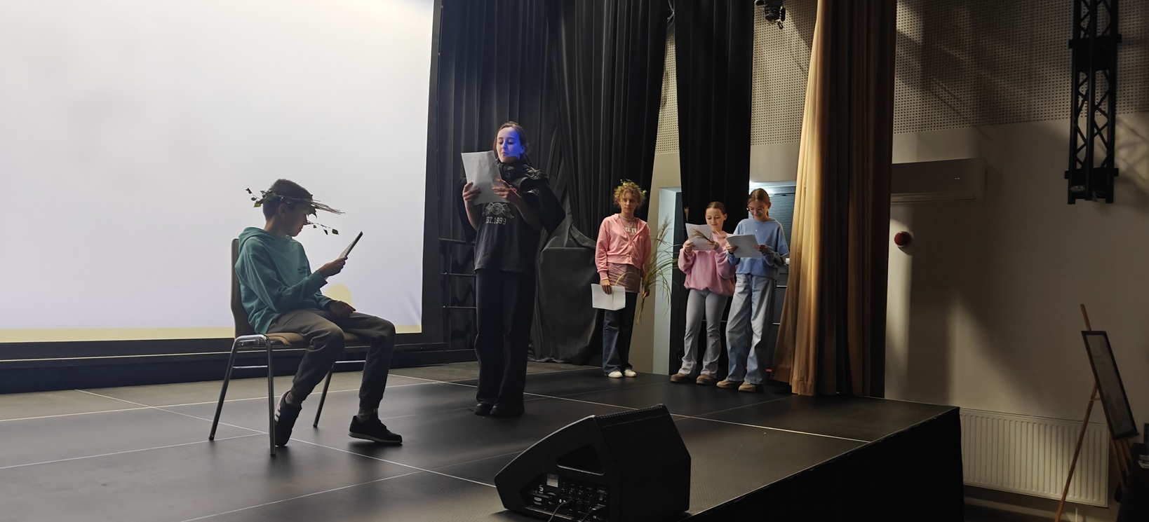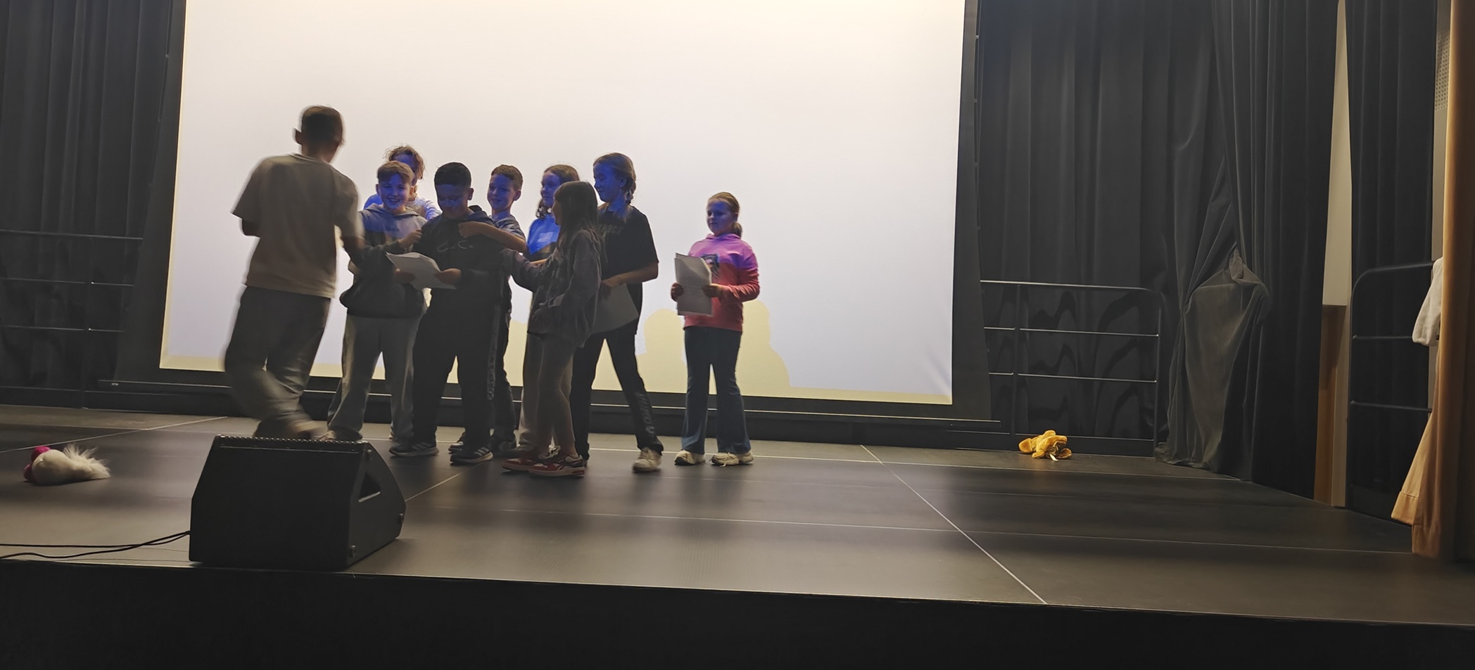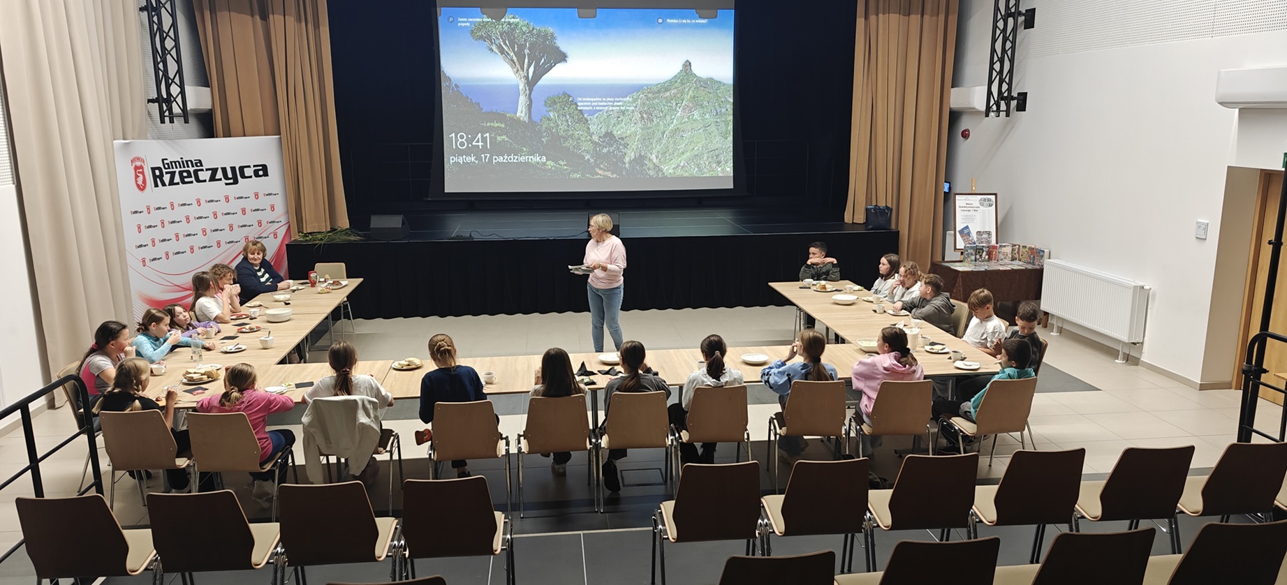 Po zakończeniu zajęć na terenie Szkoły wszyscy uczestnicy udali się na teren GOK w Rzeczycy. Pani Grażyna Kamińska z Biblioteki Publicznej w Rzeczycy, pełniąca również funkcję Dyrektora GOK, przygotowała uczniom pieczone kiełbaski i przekąski. Po poczęstunku uczniowie przedstawili swoje scenki mitologiczne dla wszystkich uczestników w sali widowiskowej GOK w Rzeczycy. Pani Grażyna Kamińska omówiła uczniom książki z serii Biuro Detektywistyczne Lassego i Mai, wszyscy obejrzeli film „Biuro Detektywistyczne Lassego i Mai. Rabuś z pociągu.” Na zakończenie uczniowie rozwiązywali krzyżówki i wykreślanki, które przygotowała pani Grażyna Kamińska.