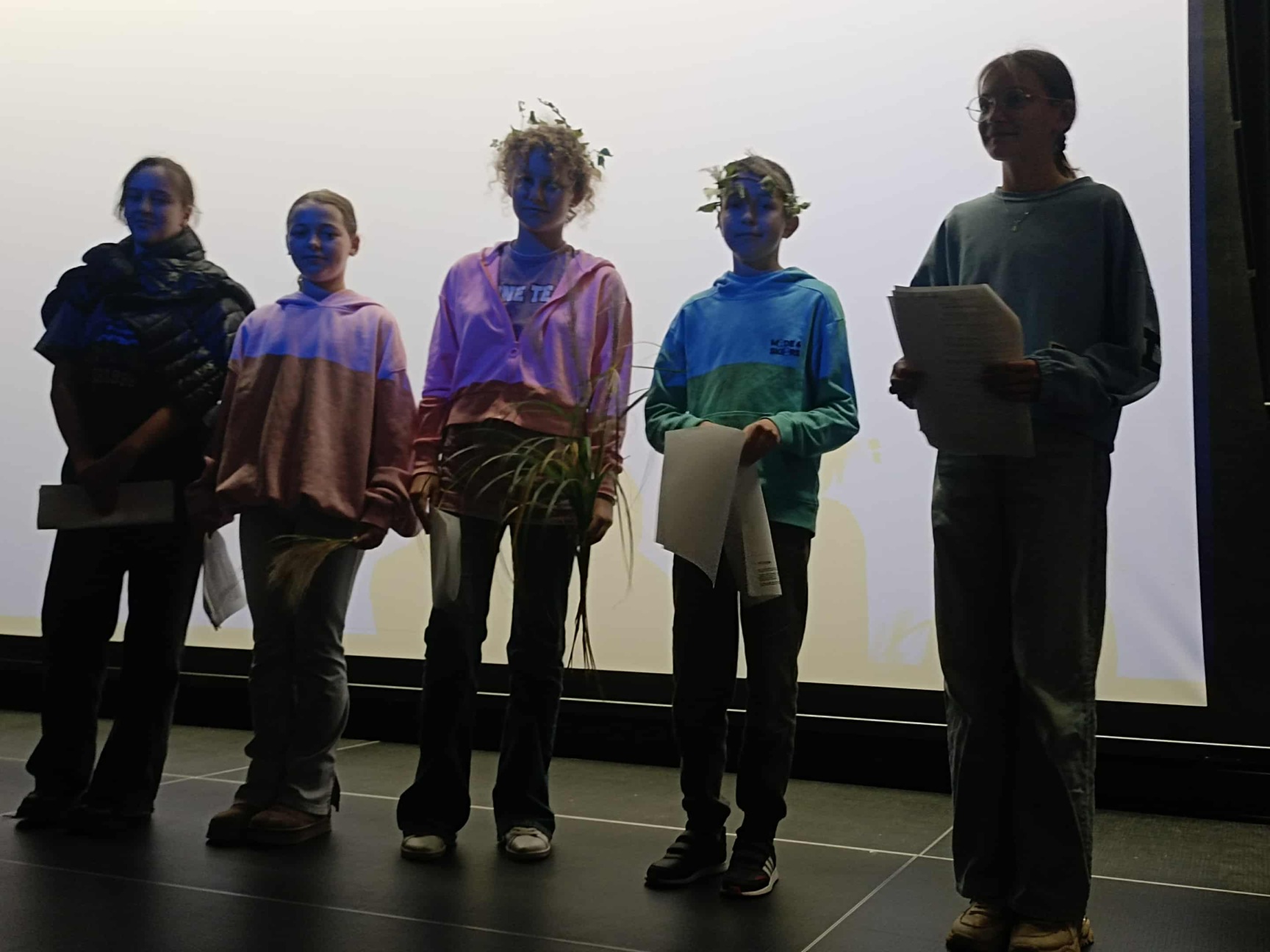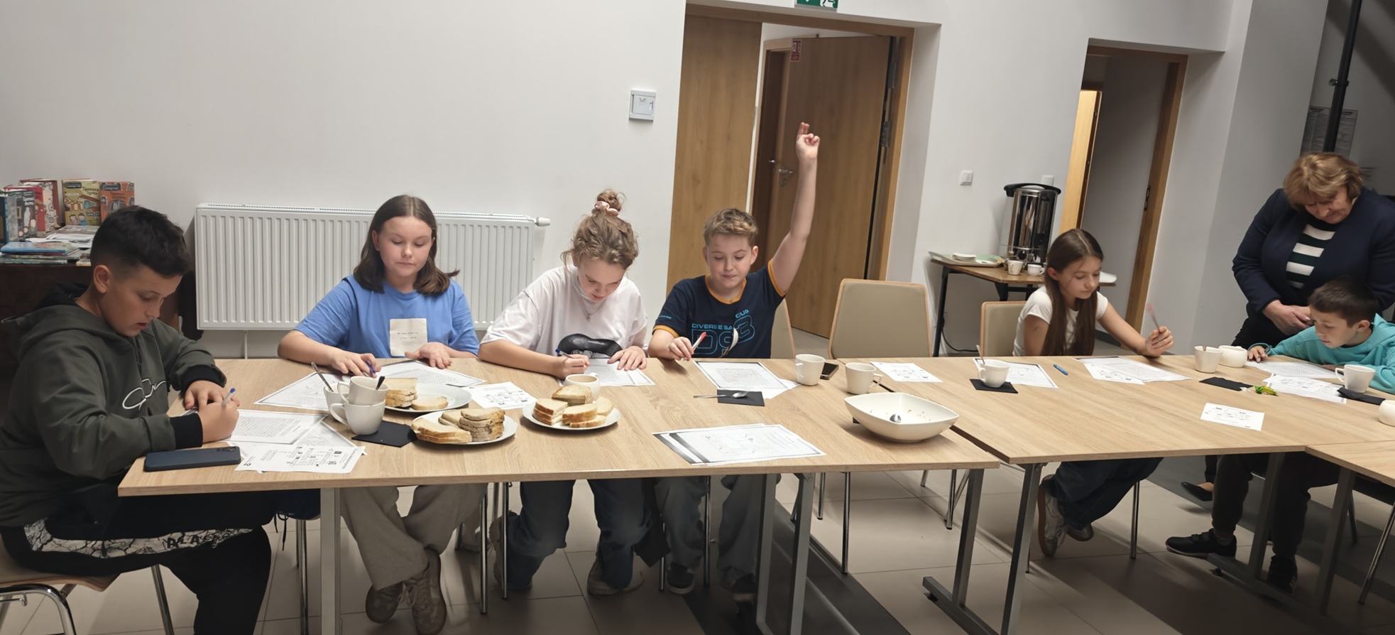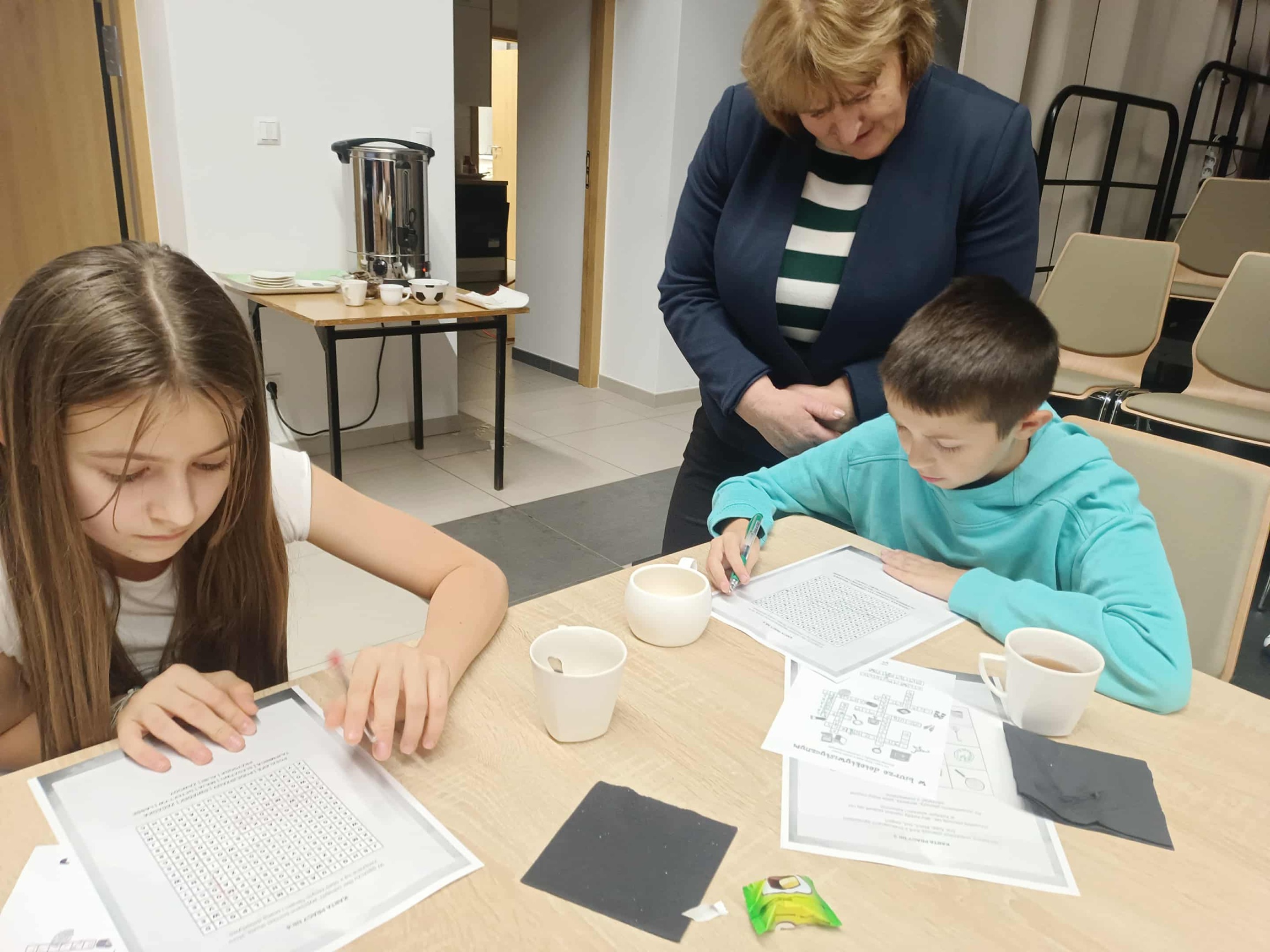 Po zakończeniu zajęć na terenie Szkoły wszyscy uczestnicy udali się na teren GOK w Rzeczycy. Pani Grażyna Kamińska z Biblioteki Publicznej w Rzeczycy, pełniąca również funkcję Dyrektora GOK, przygotowała uczniom pieczone kiełbaski i przekąski. Po poczęstunku uczniowie przedstawili swoje scenki mitologiczne dla wszystkich uczestników w sali widowiskowej GOK w Rzeczycy. Pani Grażyna Kamińska omówiła uczniom książki z serii Biuro Detektywistyczne Lassego i Mai, wszyscy obejrzeli film „Biuro Detektywistyczne Lassego i Mai. Rabuś z pociągu.” Na zakończenie uczniowie rozwiązywali krzyżówki i wykreślanki, które przygotowała pani Grażyna Kamińska.