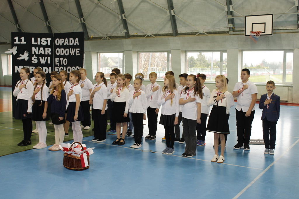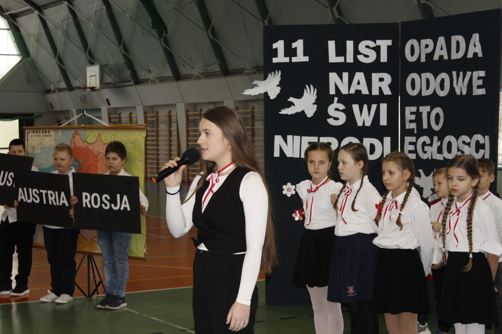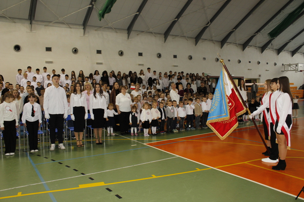 Dnia 12 listopada odbył się w naszej szkole uroczysty apel upamiętniający 107 rocznicę odzyskania przez Polskę niepodległości. Wydarzenie przygotowali uczniowie klas trzecich przy współudziale uczennic ze starszych klas: Aleksandry, Zofii i Alicji. W uroczystości udział wzięli goście: Wójt Gminy pan Marek Kaźmierczyk, zastępca Wójta Gminy pani Iwona Łuszcz-Krawczyk, przewodnicząca Rady Gminy pani Aneta Podlasek, rodzice. Gości przywitała pani Dyrektor Szkoły Agata Ewa Ostalska. Podczas apelu uczniowie przedstawili wzruszający montaż słowno-muzyczny, przypominając najważniejsze wydarzenia prowadzące do odrodzenia państwa polskiego. Recytowane wiersze i śpiewane pieśni patriotyczne stworzyły niezwykły klimat, który pozwolił wszystkim zgromadzonym na chwilę zadumy nad historią ojczyzny oraz wysiłkiem wielu pokoleń Polaków walczących o wolność. Dzięki zaangażowaniu i ogromnej wrażliwości artystycznej występujących uczniów, apel stał się prawdziwą lekcją historii i patriotyzmu.