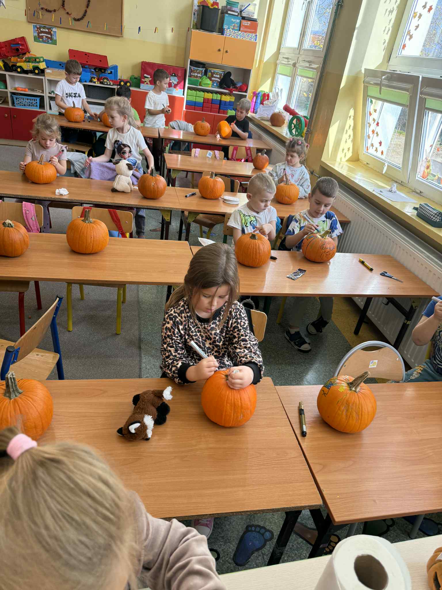Nasze przedszkolaki uczestniczyły w niezwykłych zajęciach ruchowych… z dynią w roli głównej! Dzieci turlały dynie, podawały je sobie, ćwiczyły zręczność, równowagę i świetnie się przy tym bawiły. Po aktywnej części przyszedł czas na jesienną kreatywność. Każde dziecko samodzielnie pomalowało swoją dynię, zamieniając ją w prawdziwe, kolorowe dzieło sztuki. Nie zabrakło uśmiechu, skupienia i wyobraźni. To był dzień pełen ruchu, zabawy i jesiennej magii!