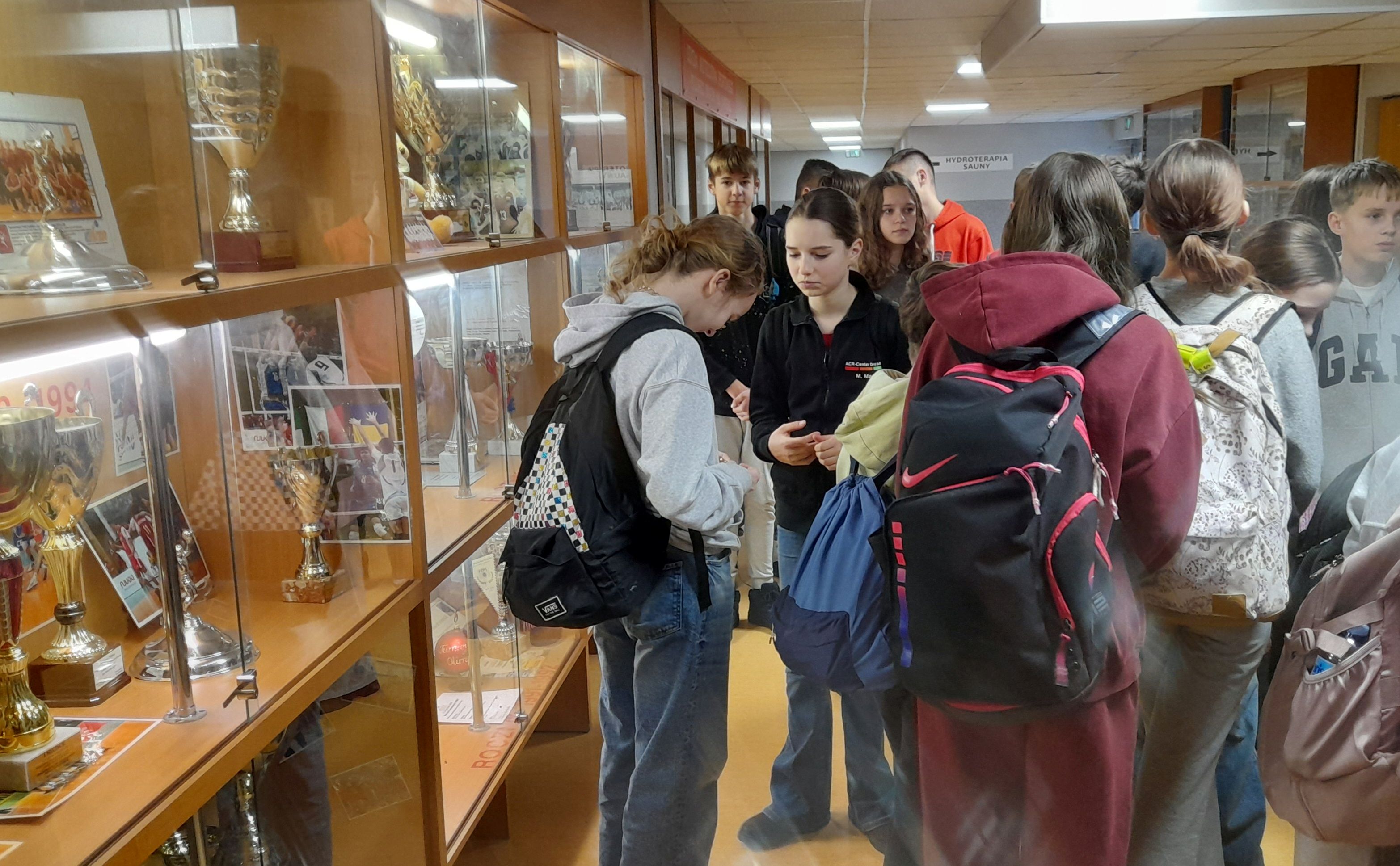 Duże wrażenie zrobiła na nas gablota z medalami i pucharami najlepszych siatkarzy SMS Spała. Mogliśmy z bliska obejrzeć nagrody wywalczone przez wybitnych sportowców i poczuć się częścią tej wyjątkowej historii.