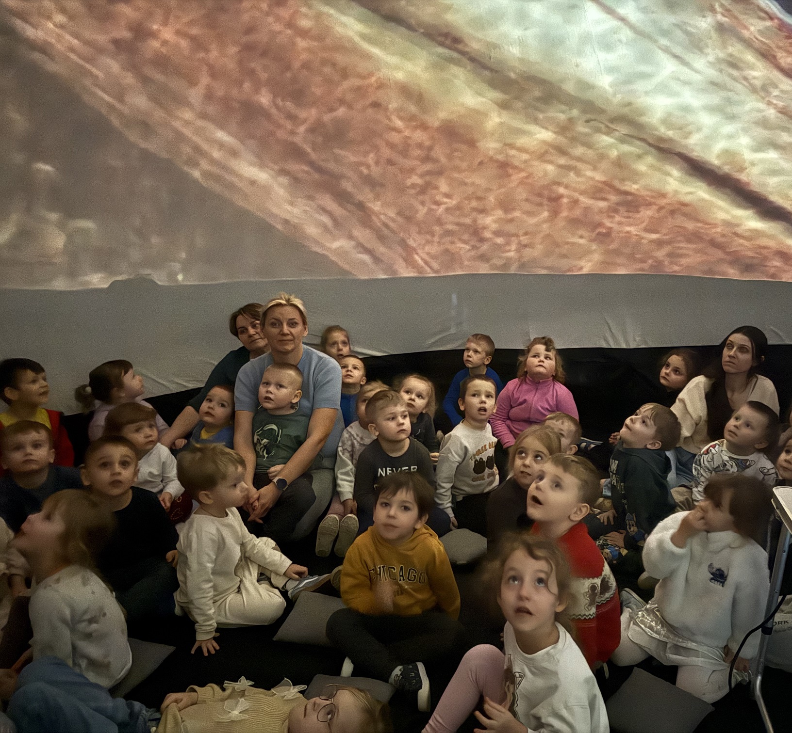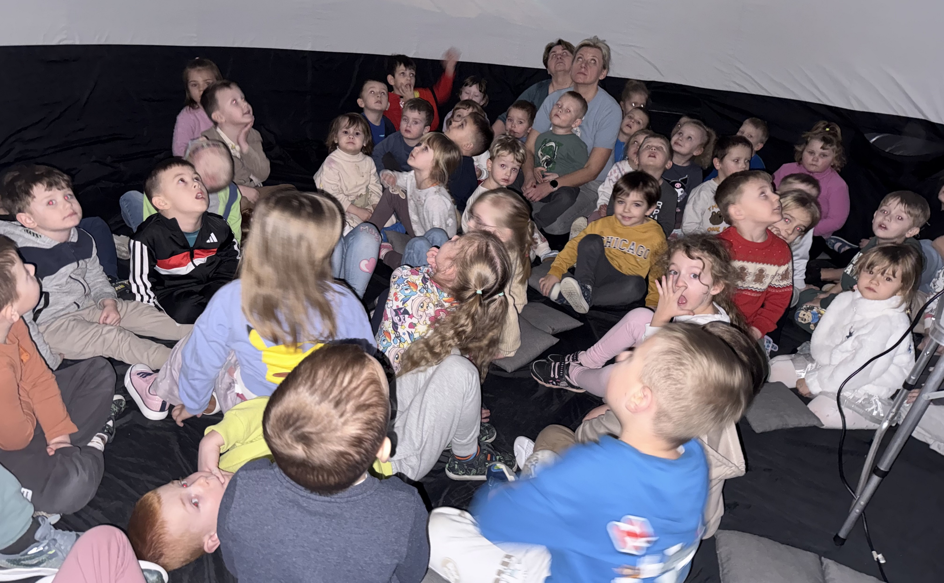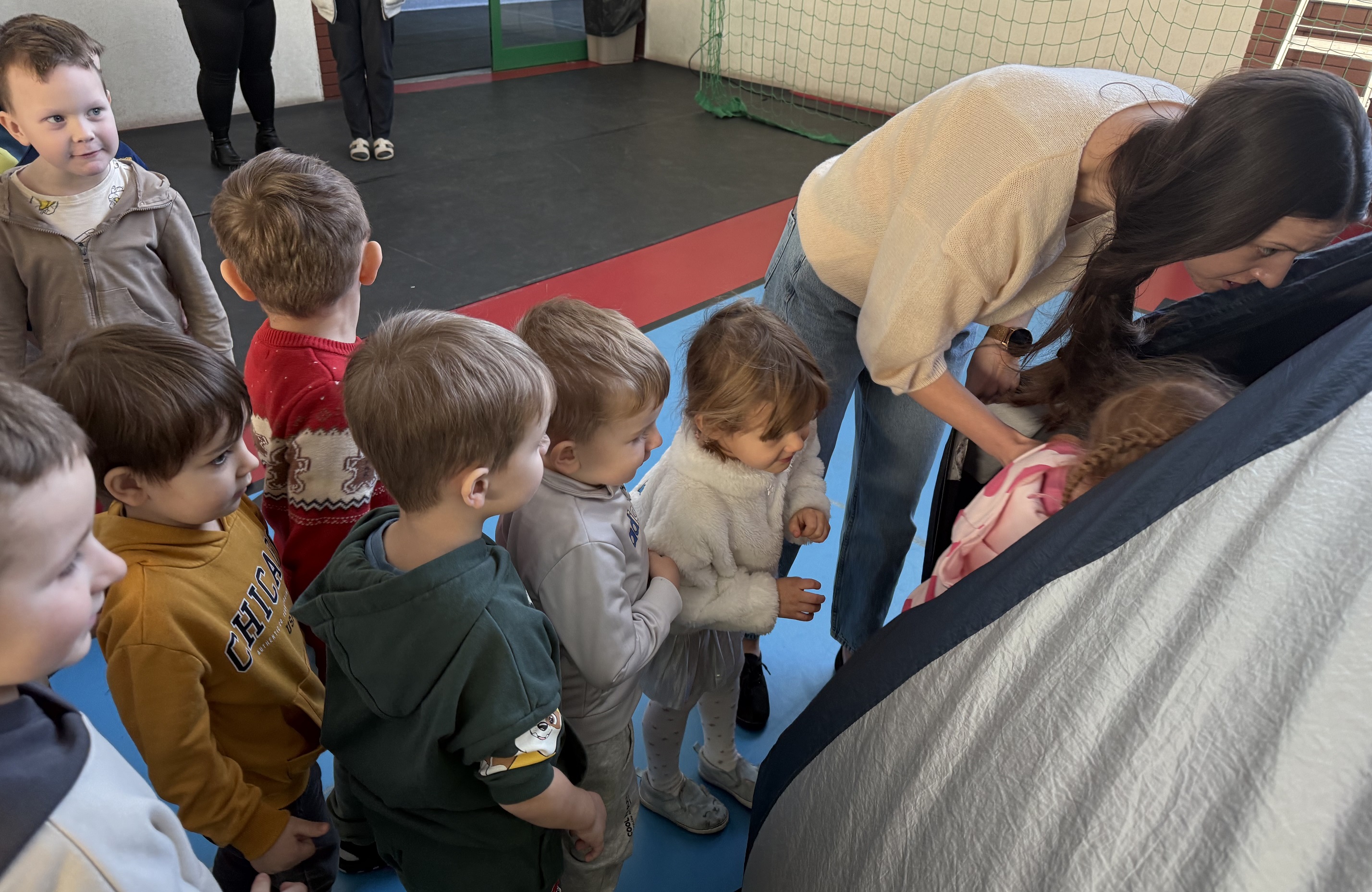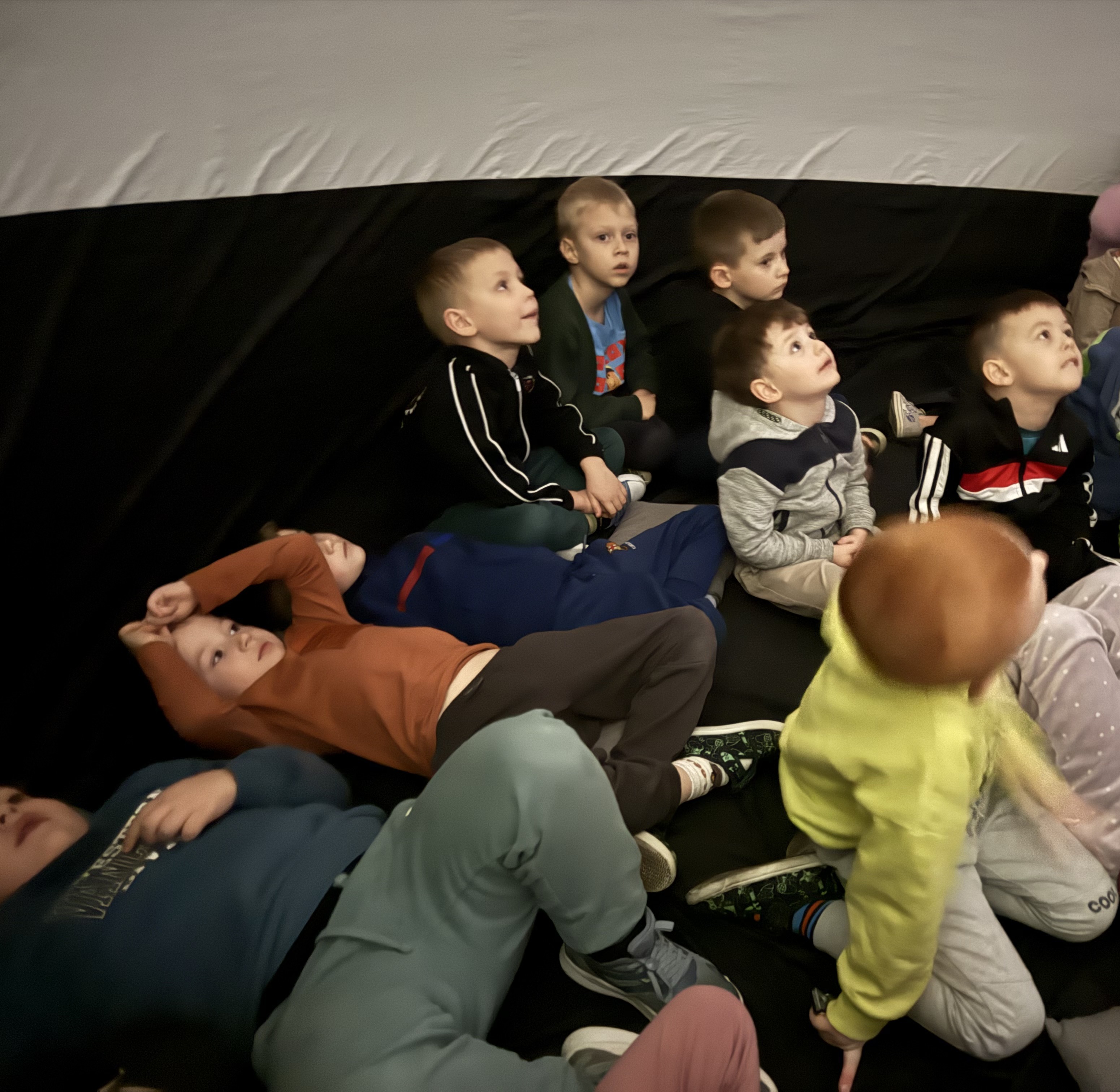 22 stycznia 2026r. w naszym przedszkolu odbył się pokaz mobilnego kina. Już od samego początku wydarzenie wzbudzało ogromne emocje, a dzieci z ciekawością oczekiwały na rozpoczęcie seansu. Największą atrakcją była specjalna, dmuchana kapsuła, do której dzieci wchodziły pojedynczo lub w małych grupach. Wewnątrz kapsuły odbywał się niezwykły seans, podczas którego przedszkolaki miały możliwość przenieść się w fascynujący świat prehistorii i poznać erę dinozaurów. Dzięki efektom wizualnym i dźwiękowym uczestnicy mogli poczuć się jak prawdziwi odkrywcy, obserwując życie dinozaurów oraz poznając ciekawostki na temat ich wyglądu, sposobu życia i środowiska. Seans był nie tylko atrakcyjną formą rozrywki, ale również wartościowym doświadczeniem edukacyjnym, które rozwijało wyobraźnię, poszerzało wiedzę oraz zachęcało dzieci do zadawania pytań i rozmów na temat świata sprzed milionów lat. Po zakończeniu projekcji dzieci chętnie dzieliły się swoimi wrażeniami i opowiadały o tym, co najbardziej im się podobało.