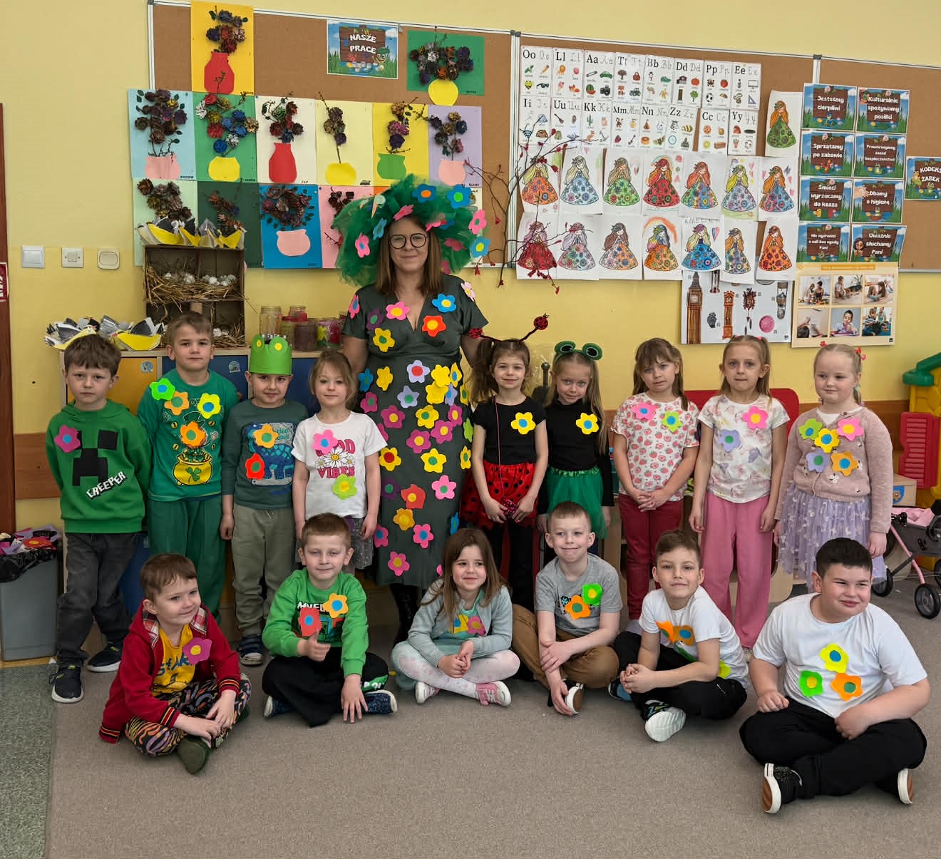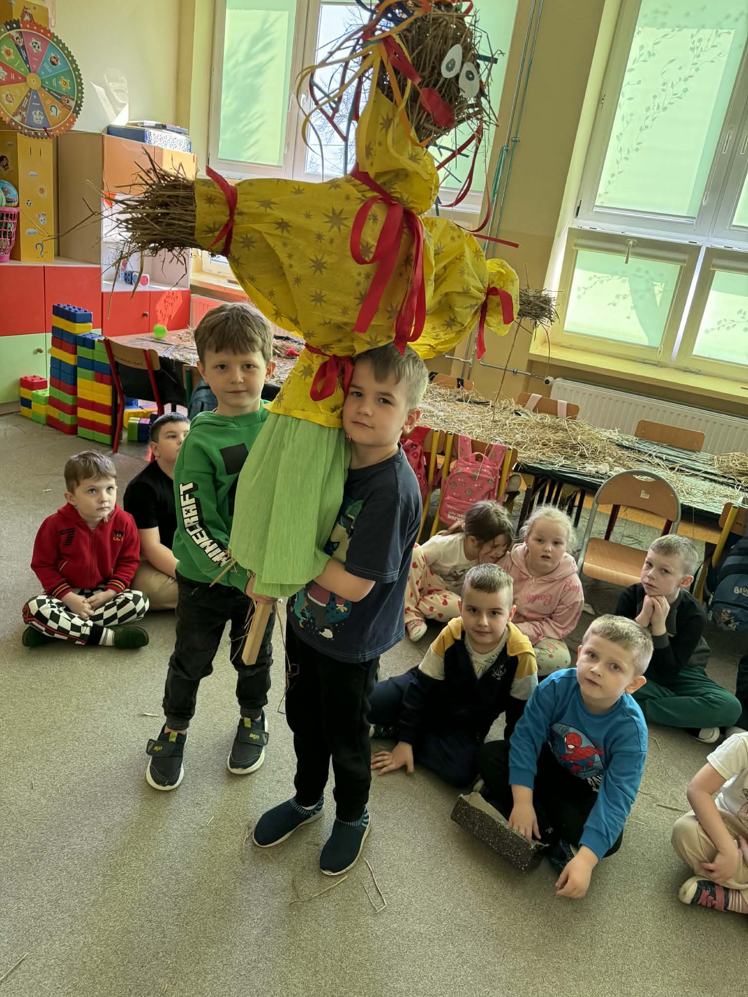 Dzieci z Przedszkola w Sadykierzu radośnie i z ogromnym zaangażowaniem powitały nadejście długo wyczekiwanej wiosny. Przygotowania do tego wyjątkowego wydarzenia rozpoczęły się od wspólnych rozmów o oznakach nowej pory roku. Przedszkolaki zastanawiały się, jakie zmiany zachodzą w przyrodzie oraz jakie ptaki zwiastują nadejście cieplejszych dni. Podczas zajęć dzieci wykonywały ze słomy gniazda wypełnione jajkami, poznając jednocześnie zwyczaje ptaków oraz znaczenie wiosny w świecie przyrody. Powstała także wyjątkowa grzęda z jajkami, a teraz wszyscy z ciekawością czekają, co się z nich wykluje. Była to doskonała okazja do rozwijania dziecięcej ciekawości i obserwacji natury. Nie mogło zabraknąć również tradycyjnego pożegnania zimy. Dzieci wspólnie stworzyły ze słomy Marzannę, która symbolicznie pomogła zakończyć zimowy czas. Kolorowy korowód ze słomianą kukłą stał się radosnym wydarzeniem, które oficjalnie zakończyło panowanie zimy i otworzyło drzwi wiośnie. Gdy pojawiła się Pani Wiosna, dzieci mogły poczuć niezwykłe zapachy kwiatów i uczestniczyć w wyjątkowych warsztatach zapachowych. Wiosna uczyła przedszkolaki, jak tworzyć własne perfumy. Każdy zapach był niepowtarzalny, a dzieci z wielką dumą nadawały swoim kompozycjom oryginalne nazwy, rozwijając przy tym wyobraźnię i kreatywność. Po intensywnej pracy przyszedł czas na małe co nieco. Zgłodniałe przedszkolaki chętnie zakupiły smaczne galaretki przygotowane przez Samorząd Szkolny, ucząc się przy okazji samodzielności oraz zasad wspólnego działania. Chętne dzieci doskonaliły także swoje umiejętności recytatorskie, przygotowując wiersze dla Wiosny, a niektóre z nich wzięły udział w konkursie na najpiękniejsze wiosenne przebranie, prezentując kolorowe i pomysłowe stroje. Spacer z Marzanną w uroczystym korowodzie symbolicznie zakończył pobyt zimy i rozpoczął piękny, pełen nadziei czas wiosny.