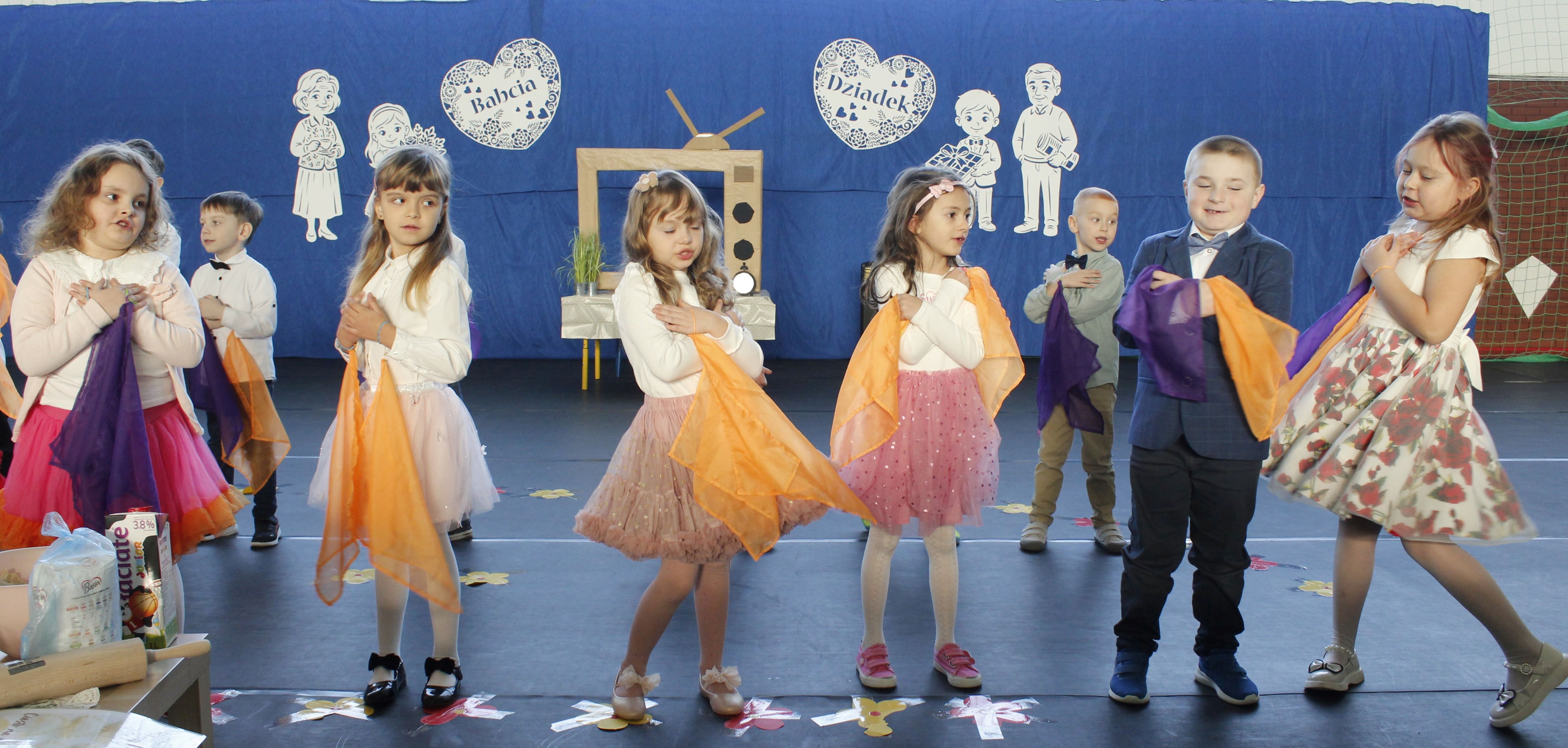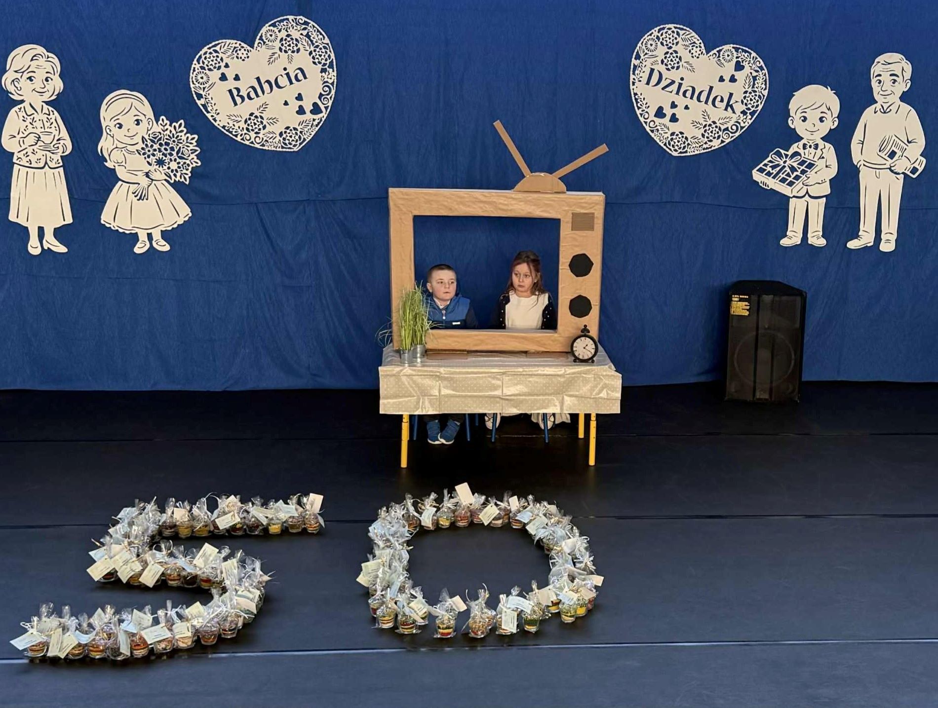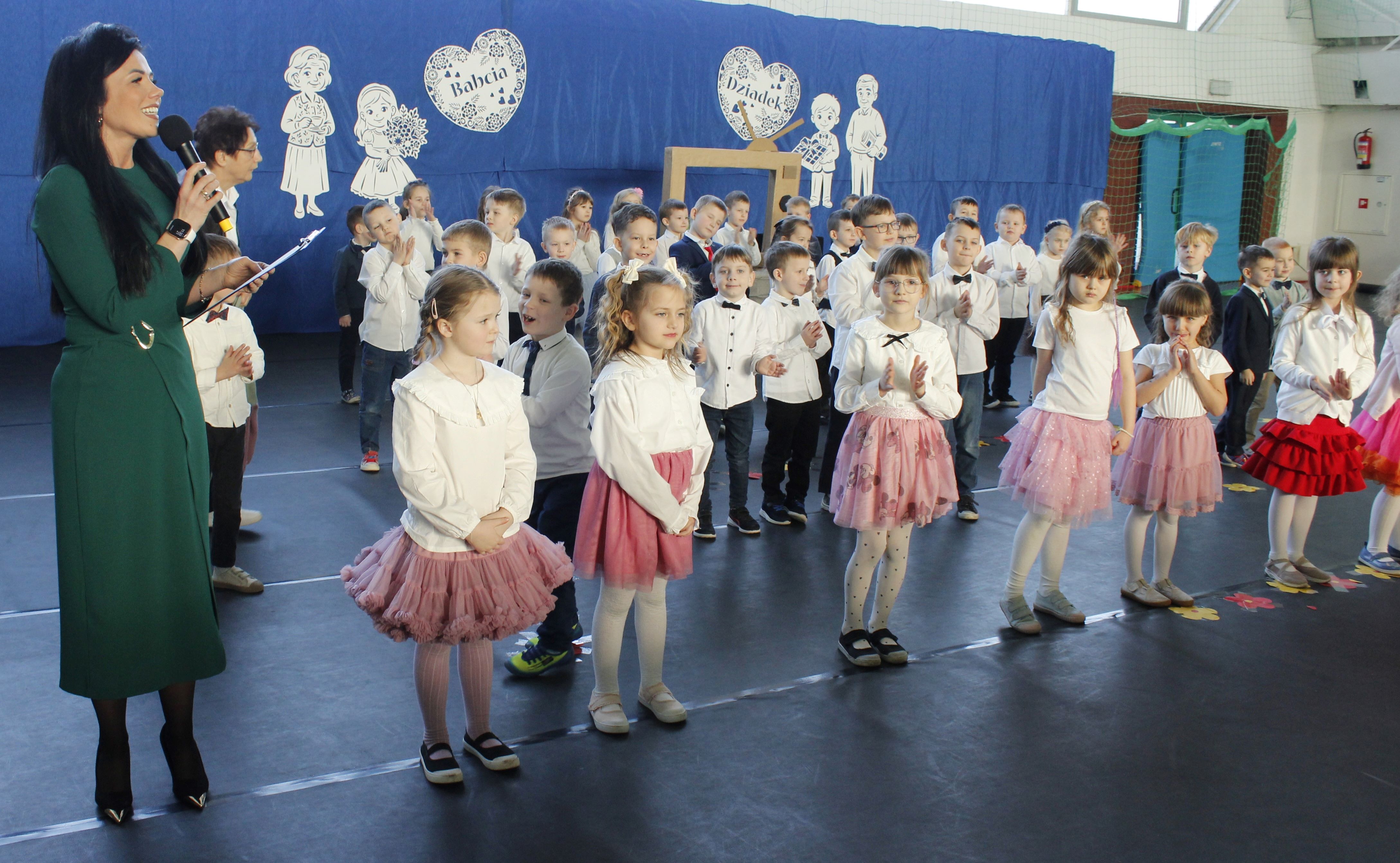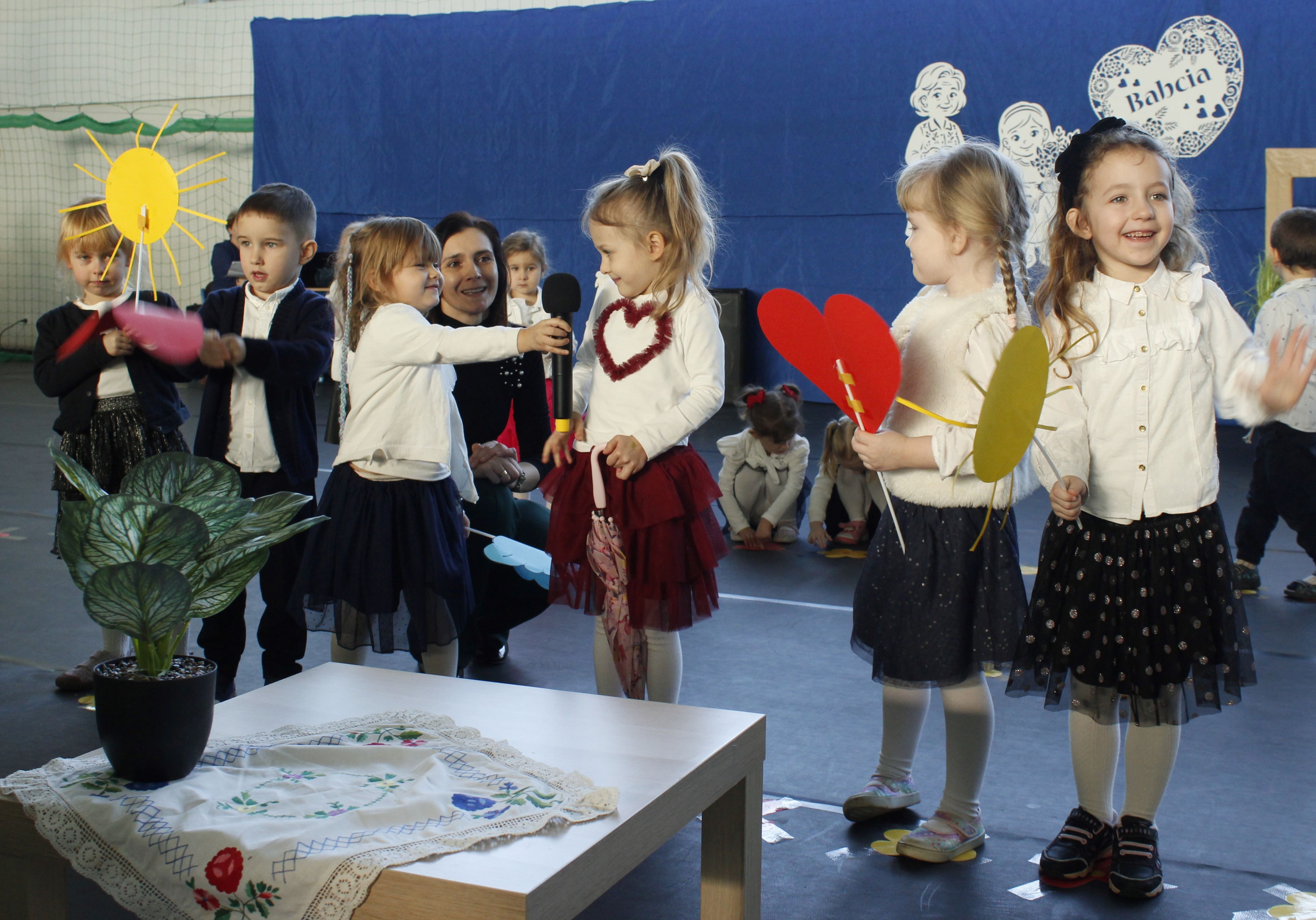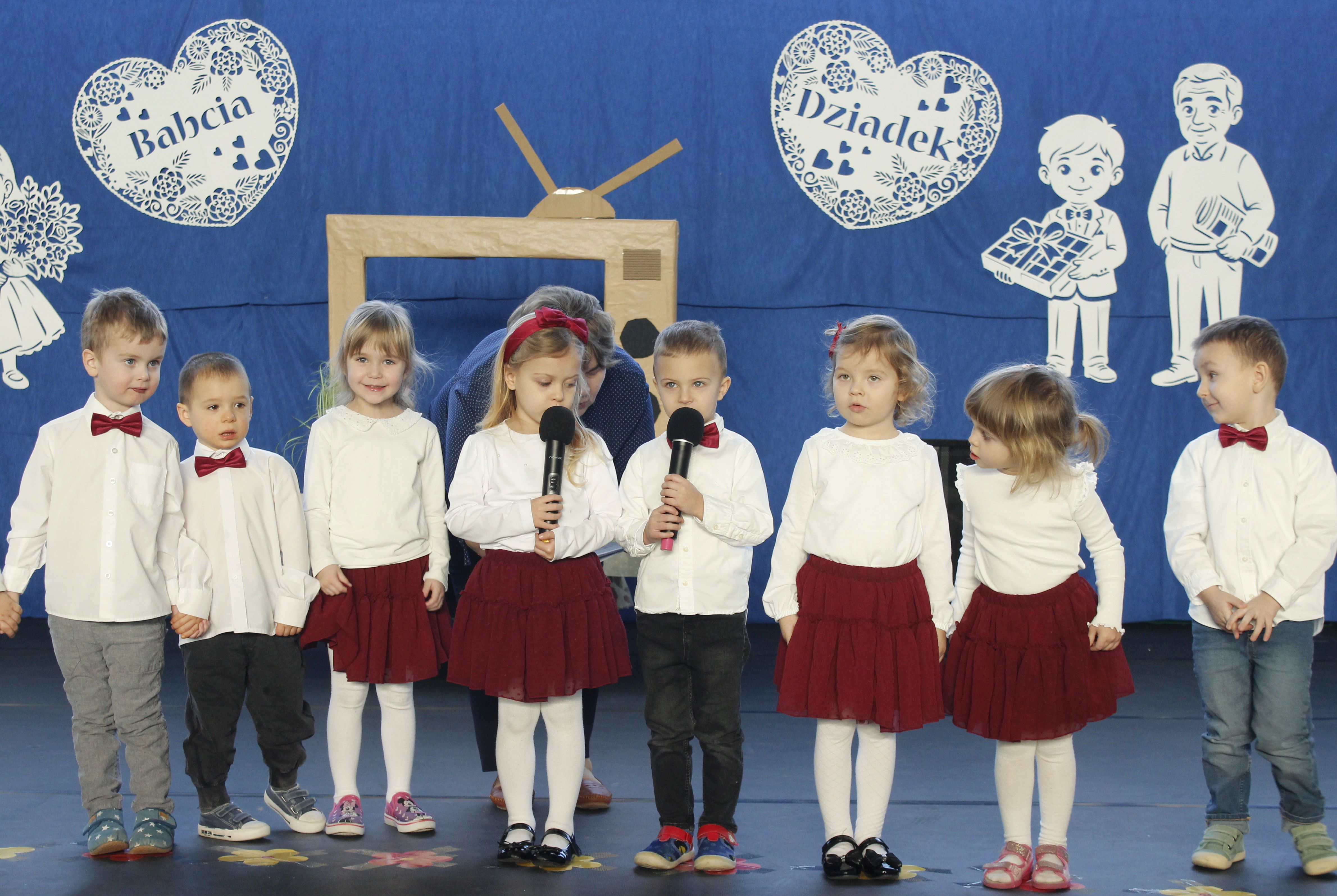 Z okazji Dnia Babci i Dziadka nasze przedszkole zamieniło się w studio telewizyjne! Pani Dyrektor Agata Ewa Ostalska powitała zaproszonych gości: Wójta Gminy Rzeczyca Pana Marka Kaźmierczyka, Przewodniczącą Rady Gminy Panią Anetę Podlasek oraz Dyrektor Gminnego Ośrodka Kultury Panią Kingę Kowalską, a przede wszystkim najważniejszą widownię – Kochane Babcie i Drogich Dziadków. Dzieci ze wszystkich grup przedszkolnych przygotowały wyjątkowy program telewizyjny: „Nadajemy prosto ze Studia TV Przedszkolaki, gdzie temperatura serc wynosi… Uwaga! Uwaga! 100% Miłości! Prosimy o wygodne zajęcie miejsc. Przed Wami Drodzy Widzowie, najważniejsze wydarzenie roku – Dzień Babci i Dziadka”. W ramówce programu był Koncert Życzeń, podczas którego, dzieci z wielkim zaangażowaniem dedykowały piosenki swoim babciom i dziadkom, składając im najserdeczniejsze życzenia zdrowia, radości i uśmiechu na każdy dzień. Każdy występ był małym wyznaniem miłości, a na twarzach zaproszonych gości nie brakowało wzruszenia i dumy. Przeprowadzono wywiady z małymi reporterami (którzy zdradzili, dlaczego babcie są najlepszymi kucharkami świata, a dziadkowie znają się na wszystkim), nie zabrakło pełnej słońca prognozy pogody oraz poradnika kulinarnego z przepisami prosto od mistrzów kuchni. Były chwile wzruszeń, salwy śmiechu, zabawnych momentów i ogromu braw. Nie zabrakło prezentów prosto z serca – przedszkolaki wręczyły Babciom i Dziadkom własnoręcznie wykonane świece przygotowane podczas warsztatów. Mali artyści włączyli się także w obchody 50-lecia szkoły, układając symboliczną cyfrę „50” z przygotowanych upominków – dodając całemu wydarzeniu wyjątkowy charakter. Dzień Babci i Dziadka długo pozostanie w naszej pamięci, bo najpiękniejsze programy to te, które nadajemy prosto z serca.