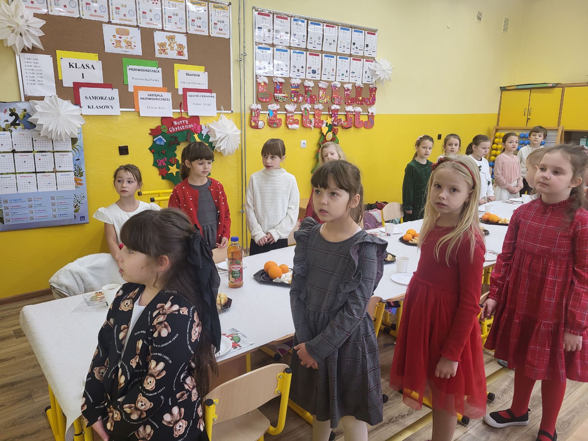 Klasowa Wigilia pozostawia trwałe wspomnienia, do których chętnie wraca się po latach. Choć są częścią szkolnej codzienności, niosą ze sobą magię, która zbliża ludzi i przypomina o tym, co w życiu najważniejsze – bliskości z drugim człowiekiem. Nasze świętowanie zakończył udział w jasełkach szkolnych. Dziękuję rodzicom za przygotowanie Wigilii.