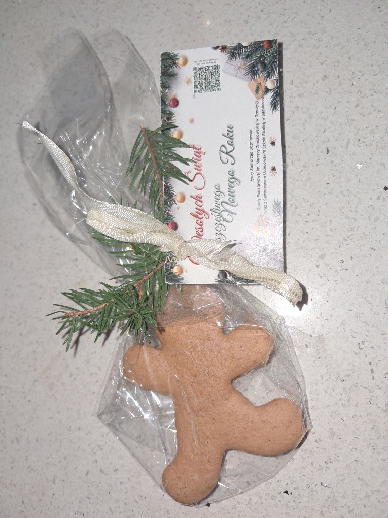 Uczniowie własnoręcznie upiekli aromatyczne pierniczki, które zostały podarowane nauczycielom oraz gościom obecnym na tegorocznych Jasełkach jako wyraz wdzięczności, życzliwości oraz świątecznych życzeń. Do słodkich upominków dołączono nowoczesny akcent – życzenia zapisane w formie kodu QR, który po zeskanowaniu umożliwiał ich odczytanie.