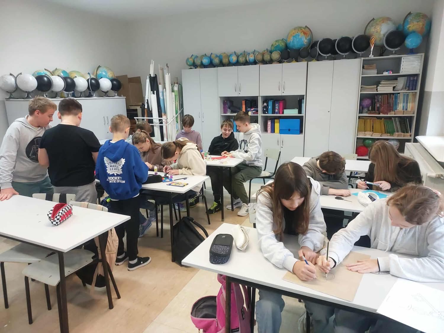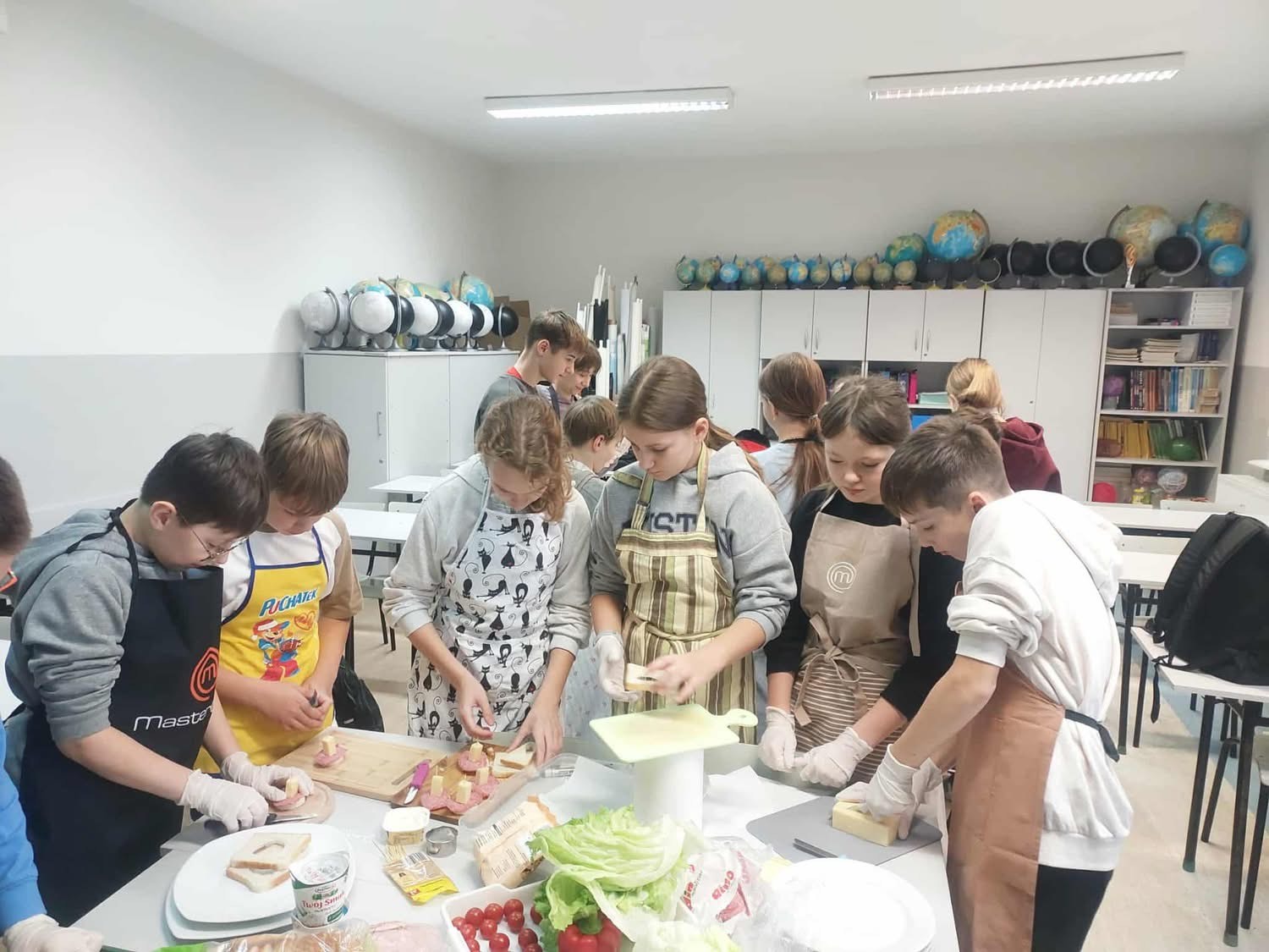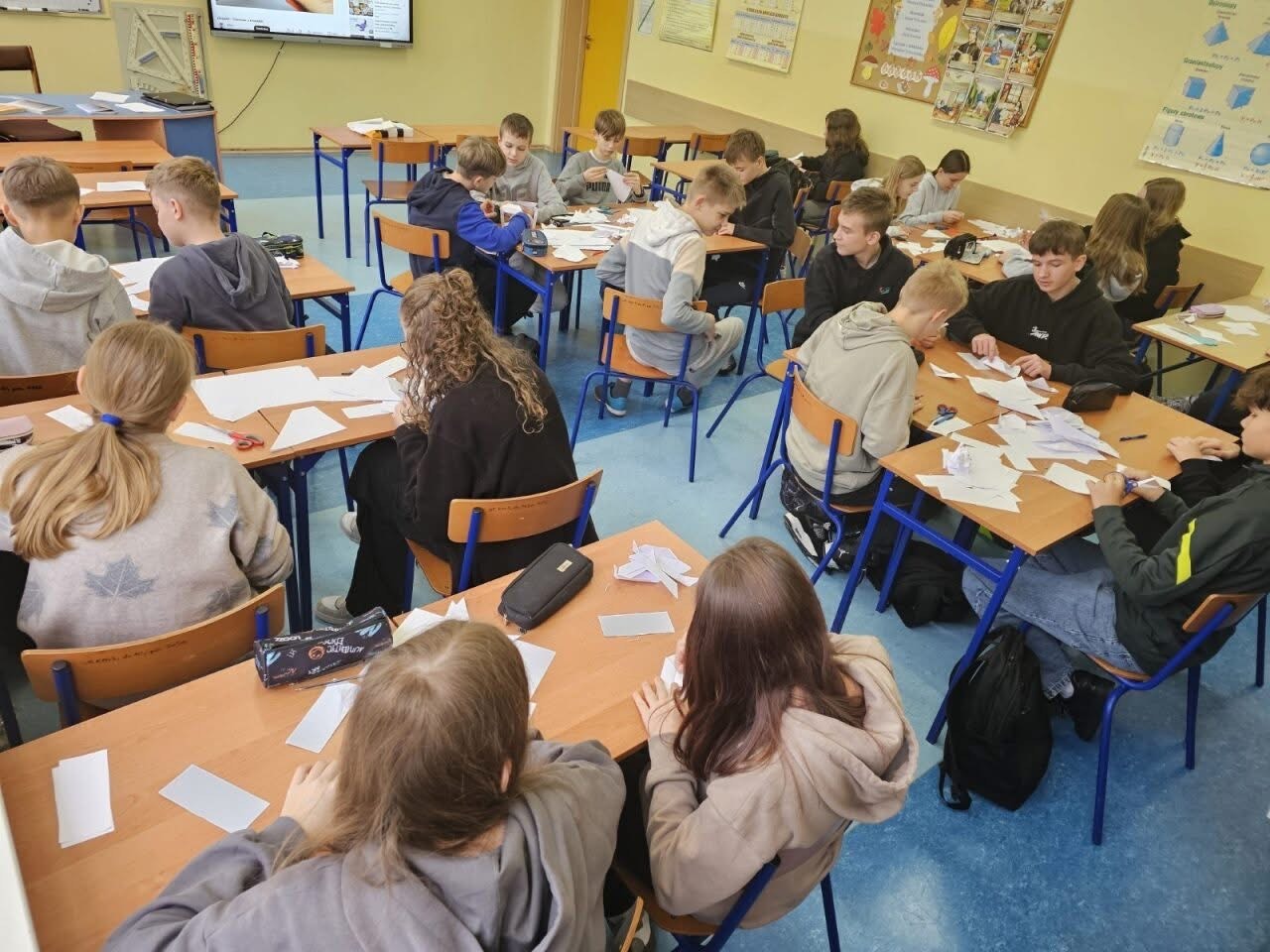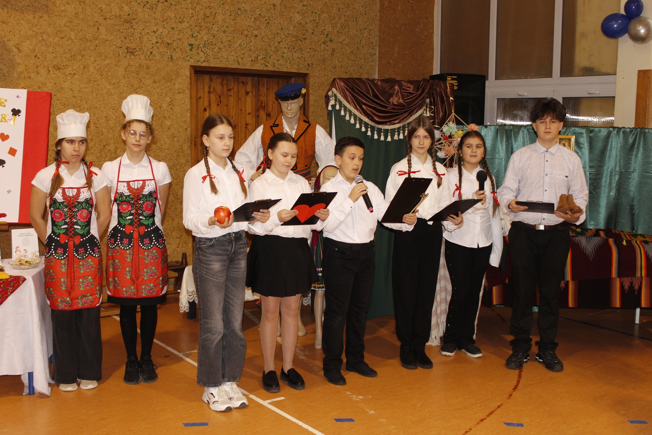 Klasa V i VI pracowała w zespołach międzyprzedmiotowych oraz we współpracy z rodzicami. Uczniowie realizowali temat pt. „Magiczne Andrzejki” na zajęciach historii, techniki, języka polskiego oraz plastyki. Uczniowie na zajęciach piekli muffinki, wykonali andrzejkowe tortille „Magiczne rolady”. Na lekcji plastyki uczniowie przygotowali plakaty, natomiast na lekcji historii dowiedzieli się o św. Andrzeju i pierwszych wzmiankach o wróżbach. Uczniowie rozmawiali dlaczego ludzie dawniej wierzyli w wróżby i znaki oraz tworzyli oś czasu tradycji andrzejkowych (średniowiecze → XIX w. → dziś). Uczniowie w grupach przygotowali mini słownik andrzejkowy (np. wróżba, lanie wosku, ciasteczko z wróżbą). Tworzyli listę potraw i ich znaczeń (np. jabłko – miłość, chleb – dostatek). Uczniowie zaprojektowali menu historyczno andrzejkowe – krótkie opisy potraw. Na lekcji języka polskiego analizowali znaczenia przysłów andrzejkowych, zwłaszcza tych dotyczących pogody i zmian pór roku. Prezentowali wybrane wiersze o tematyce andrzejkowej. Zapoznali się z pisownią niektórych wyrazów z: ó, u, ż, rz, h, ch.