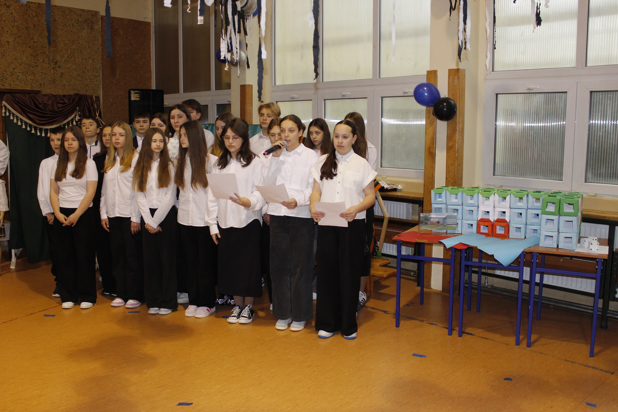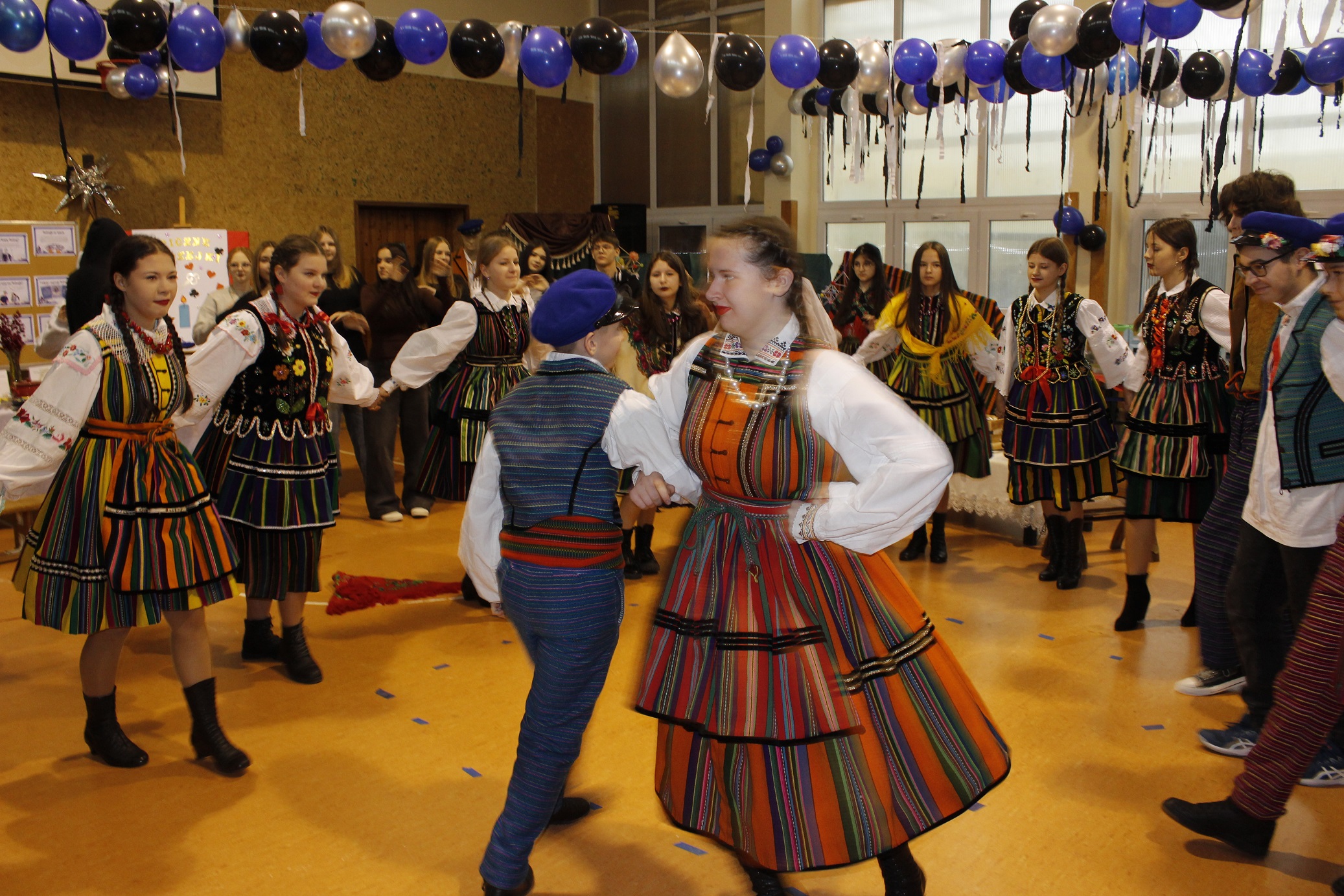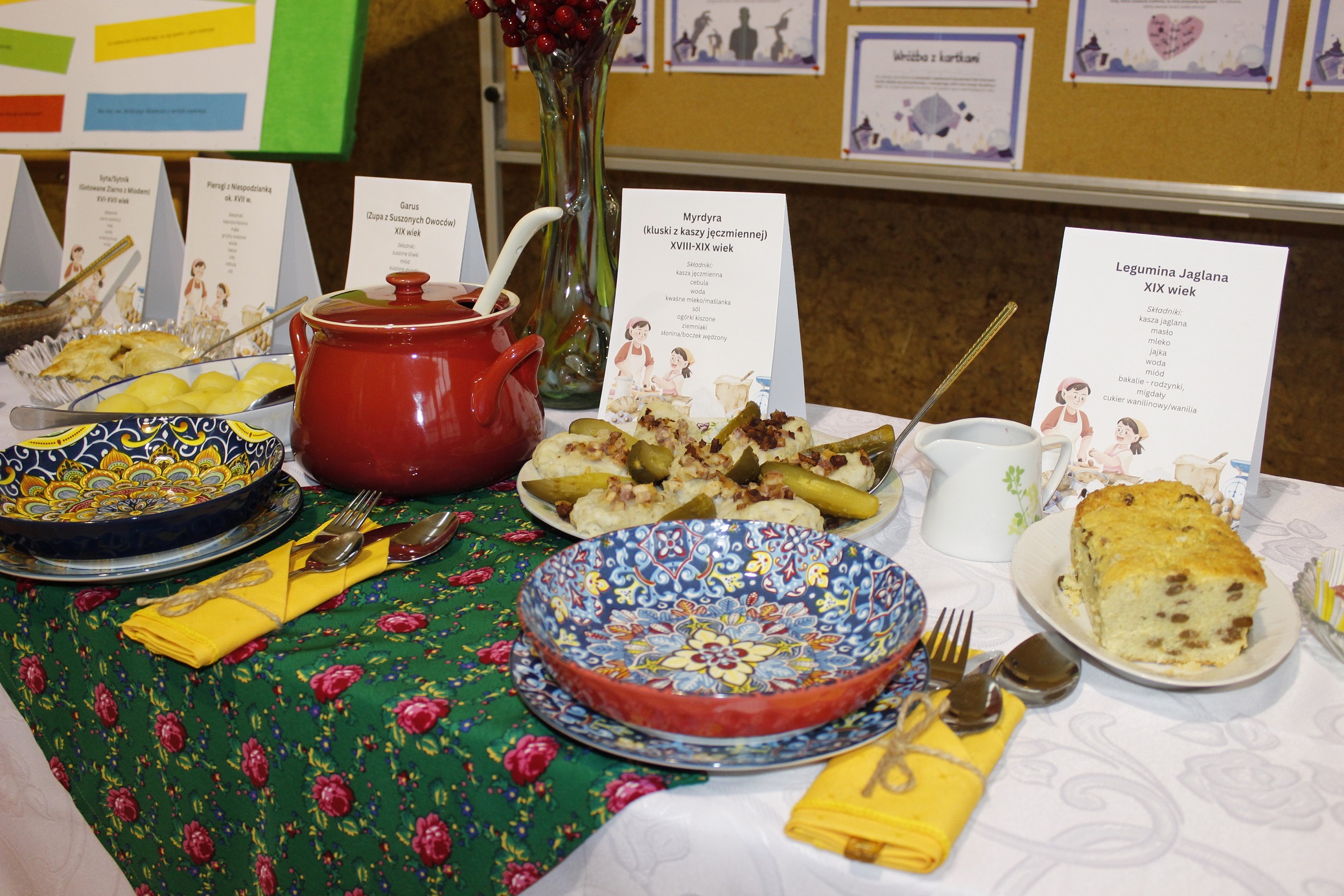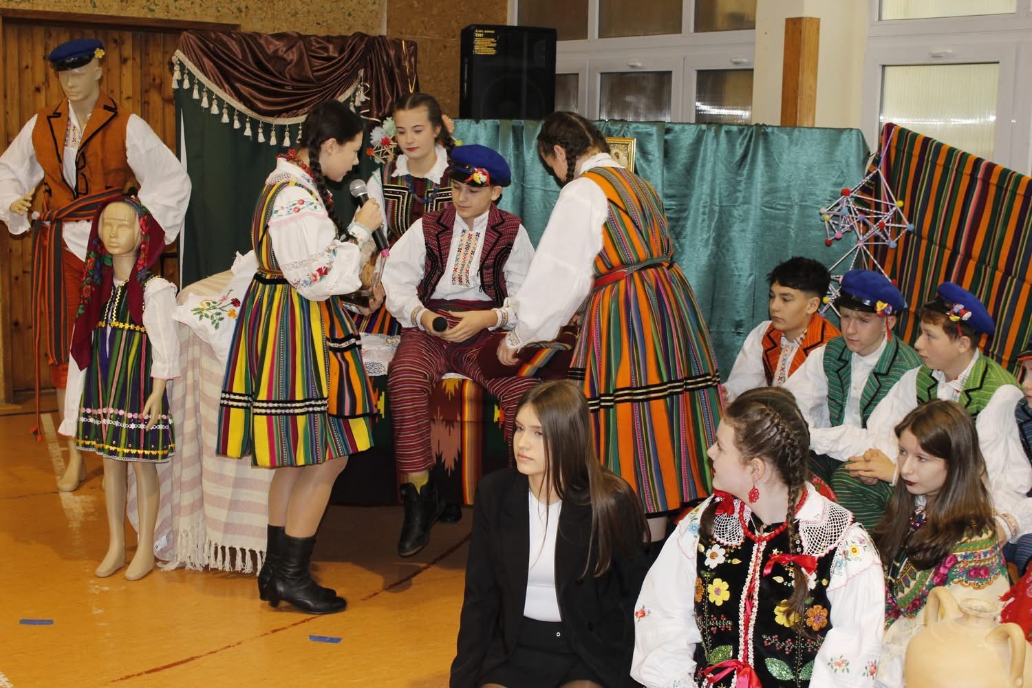 W klasie VIIIa i VIIIb uczniowie realizowali Tydzień Projektowy na zajęciach języka polskiego. Uczniowie podczas projektu poznali tradycje obrzędowe na wsi, które były istotnym elementem kultury, a także poznali charakterystykę kalendarza gospodarczego. Początkowo poznali pojęcie roku obrzędowego i kalendarza gospodarki. W drugiej części przystąpili do stworzenia przedstawienia, które łączyło tradycję z nowoczesnością. Drugiego dnia zdobyli informacje na temat tego, czym jest odzienie, trepy, powijak. Następnie omówiony został strój ludowy oraz sposób jego uszycia i zabarwienia. Następnie tworzyli wystrój chaty chłopskiej, zgodnie z owiązującą wiejską tradycją. Wspólnie zostały wykonane trzy ścianki, stół oraz chłopskie łożono na słomie. Trzeciego dnia uczniowie dowiedzieli się jak wyglądała praca w polu, zaczynając od przygotowania pola, uprawy, młócenia. Czwartego dnia uczniowie zajrzeli do wiejskiej kuchni, by zobaczyć, w jaki sposób wytwarzano, przygotowywano i przechowywano żywność. Piątego dnia nastąpiło podsumowanie projektu. Początkowo uczniowie omówili swoje plakaty, które tworzyli przez cztery dni. Następnie odbył się uroczysty pokaz przedstawienia teatralnego pt.: ,,Historia kołem się toczy”.