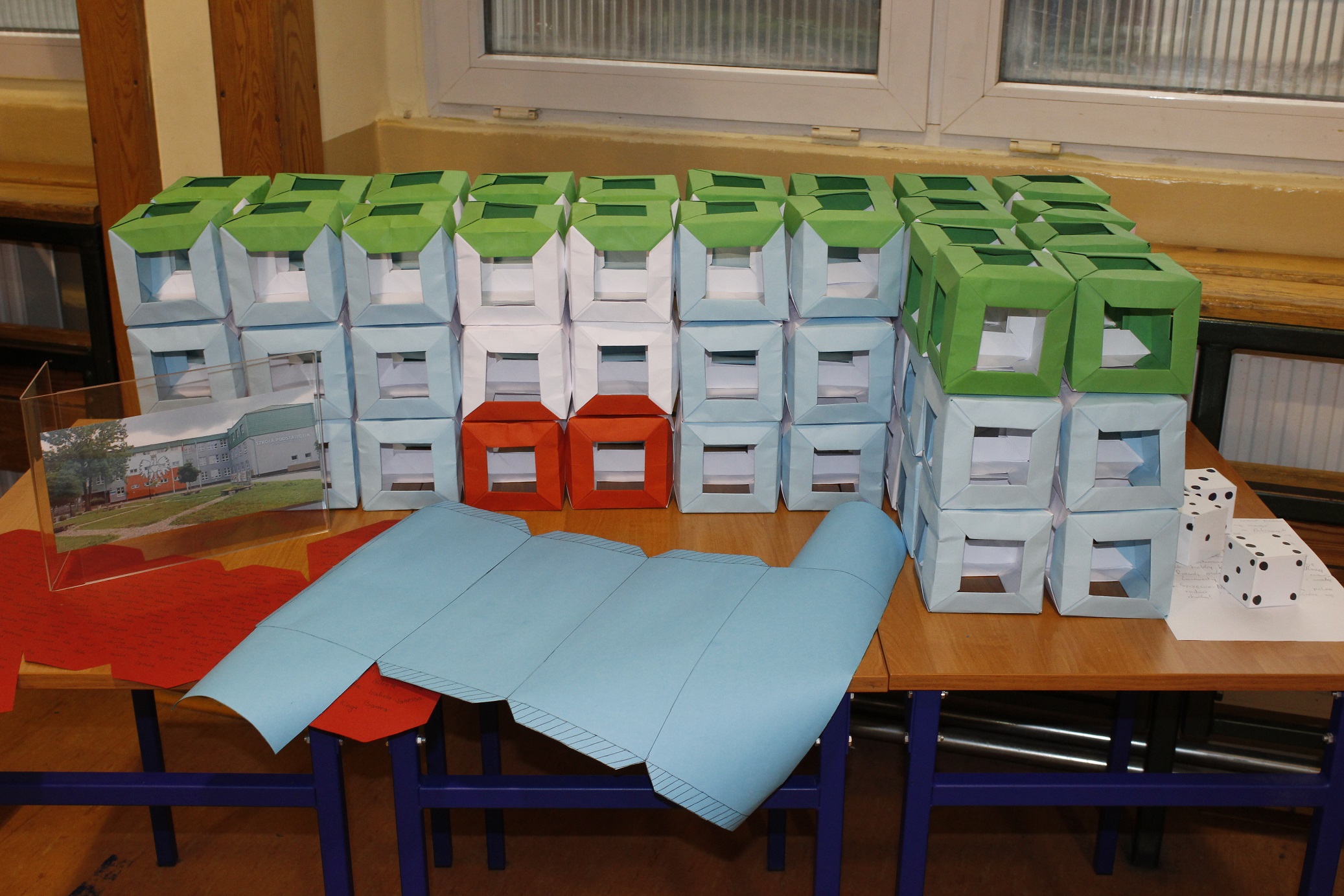 W klasie VIIa i VIIb Tydzień Projektowy realizowany był na zajęciach matematyki. Uczniowie analizowali własności brył, tworzyli bryły modułowe z papieru (origami) oraz wykorzystali je do wykonania makiety przestrzennej – budynku szkoły. Projekt rozwijał kompetencje matematyczne, techniczne, komunikacyjne oraz umiejętność pracy zespołowej. Uczniowie klasy VIIa i VIIb, w ramach realizowanego projektu „Moc relacji w edukacji”, uczestniczyli w zajęciach informatycznych. Tematem przewodnim zajęć były bryły w andrzejkowej odsłonie. Podczas zajęć przygotowali plakaty pod hasłem „Andrzejkowy wieczór brył”. Zaprojektowali i wydrukowali na drukarce 3D elementy, z których powstał „sześcienny dom” Andrzeja i Katarzyny oraz lampiony w kształcie sześcianów. Przygotowali także film pod tytułem „Magiczne bryły”.