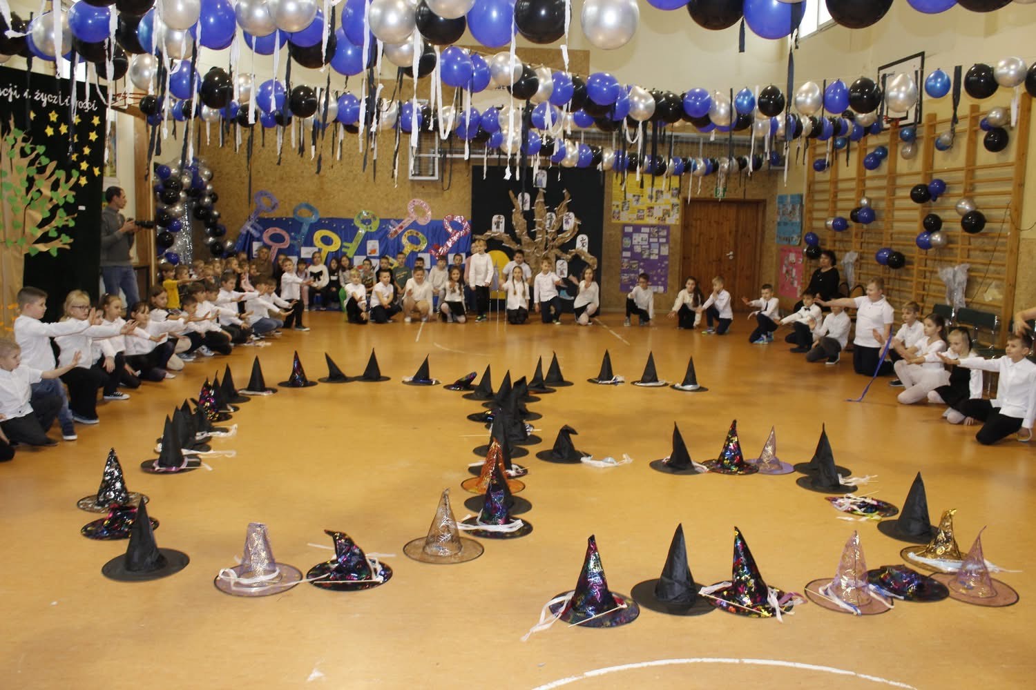 Klasy najmłodsze realizowały temat „Andrzejki w naszej szkole – świętujemy 50- lecie szkoły”. Uczniowie przez cały tydzień rozwijali zainteresowania tradycjami i zwyczajami ludowymi oraz ćwiczyli umiejętności językowe, matematyczne i artystyczne. Uczniowie wyszukiwali informacji, jak w przeciągu 50 lat przebiegały andrzejki w naszej szkole. Omówili historię hymnu szkoły oraz nauczyli się jego słów i melodii. Stworzyli andrzejkowe drzewa szczęścia. Dzieci wykonali czarodziejskie klucze do szkoły oraz ozdabiali czarodziejskie czapki. Uczniowie w piątek zaprezentowali całej szkole swoją prezentację w postaci pięknego tańca i śpiewu.