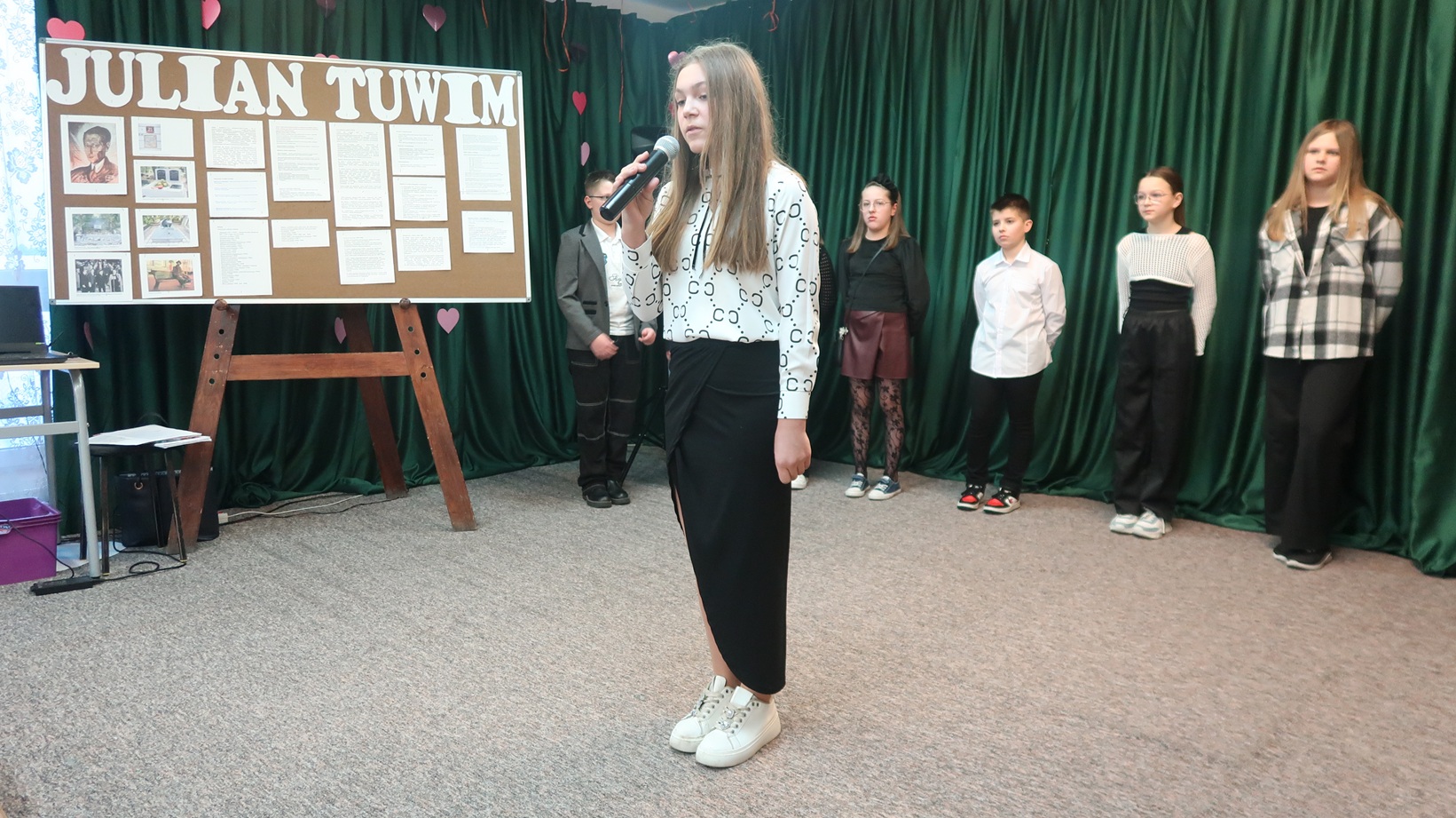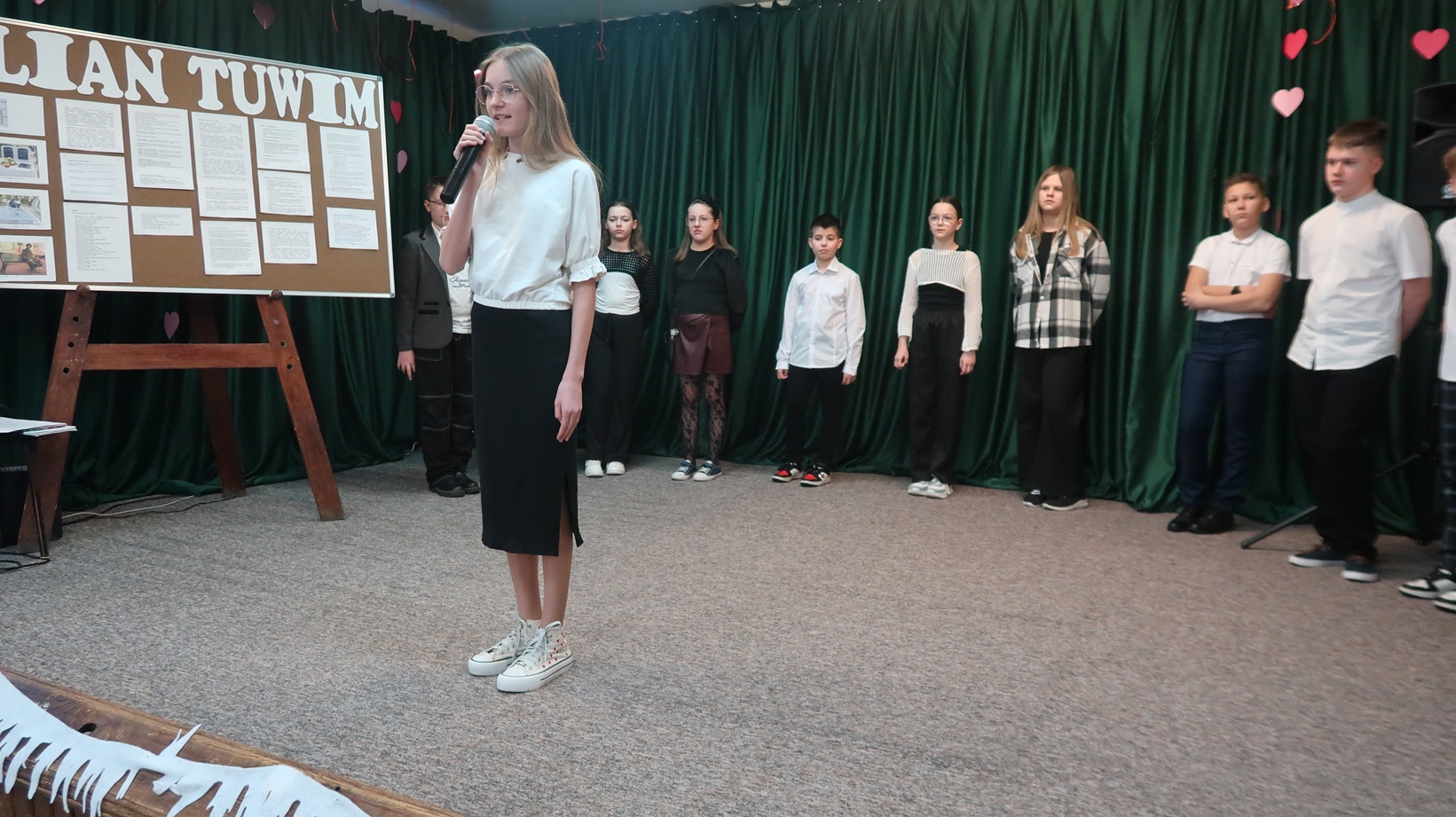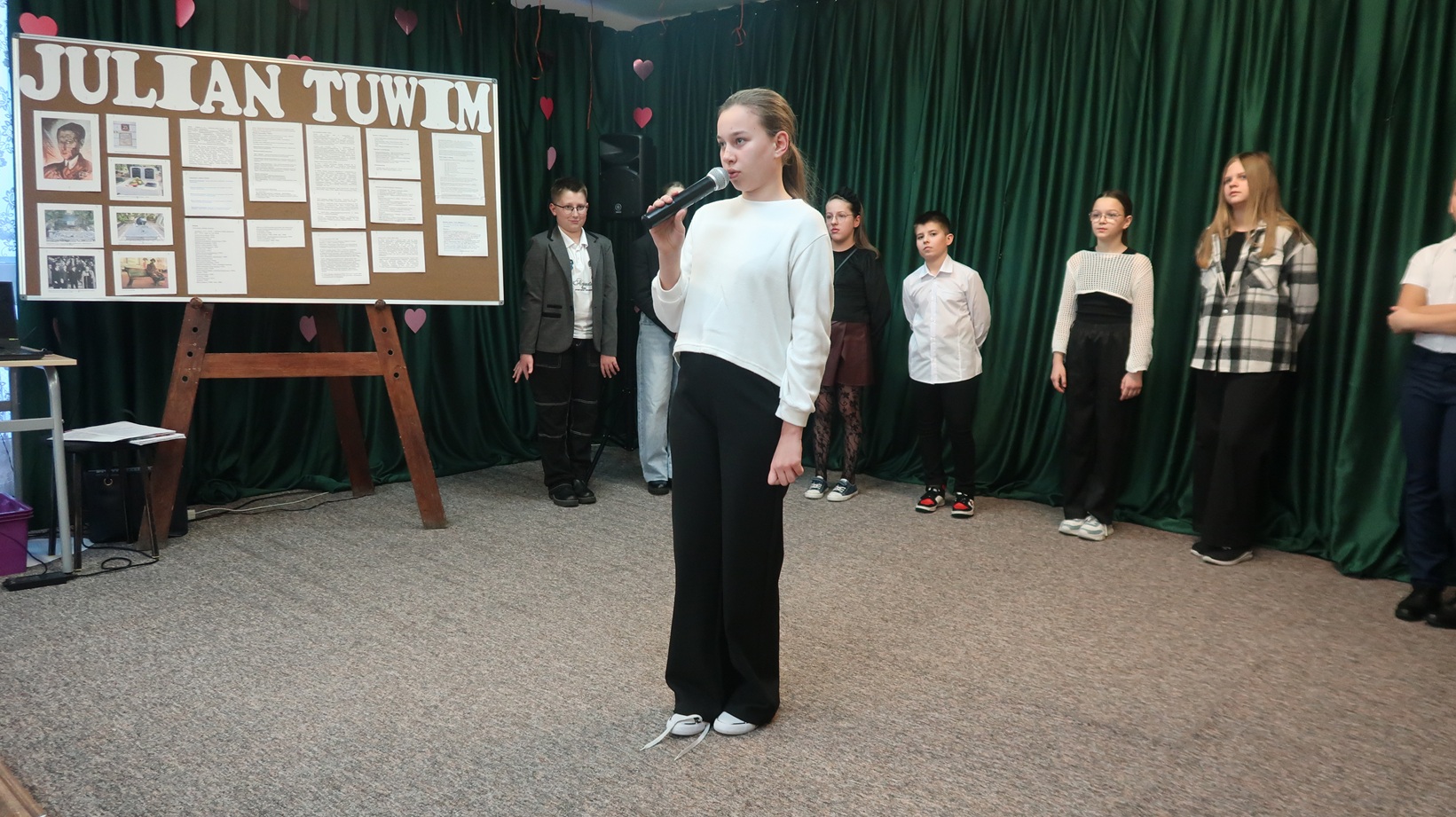 W dniu 28.01.2026 r. uczniowie klas IV-VI Szkoły Filialnej w Sadykierzu wzięli udział w wieczorku literackim pod hasłem ,,Julian Tuwim”. Uczniowie zaśpiewali na zebraniu z rodzicami piosenkę do tekstu J. Tuwima ,,Abecadło” i recytowali wiersze, m.in.: ,,Dyzio marzyciel”, ,,Zosia Samosia”, ,,Ptasie plotki”, ,,O Grzesiu kłamczuchu i jego cioci”, ,,Bambo”, ,,Lokomotywa”, ,,Gabryś”, ,,Rzeczka”, ,,Okulary”, ,,Warzywa”, ,,Pstryk”. Nauczyciel biblioteki Monika Fau przedstawiła najważniejsze informacje o życiu i twórczości Juliana Tuwima. Informacje o tym poecie zostały zamieszczone na tablicy, którą umieszczono następnie na holu szkoły. Swój występ uczestnicy wieczorku literackiego powtórzyli kolejnego dnia dla przedszkolaków i uczniów klas I-VI Szkoły Filialnej w Sadykierzu. Dzieci wysłuchały z zainteresowaniem wierszy recytowanych przez koleżanki i kolegów i pięknie zapamiętały ich tytuły.