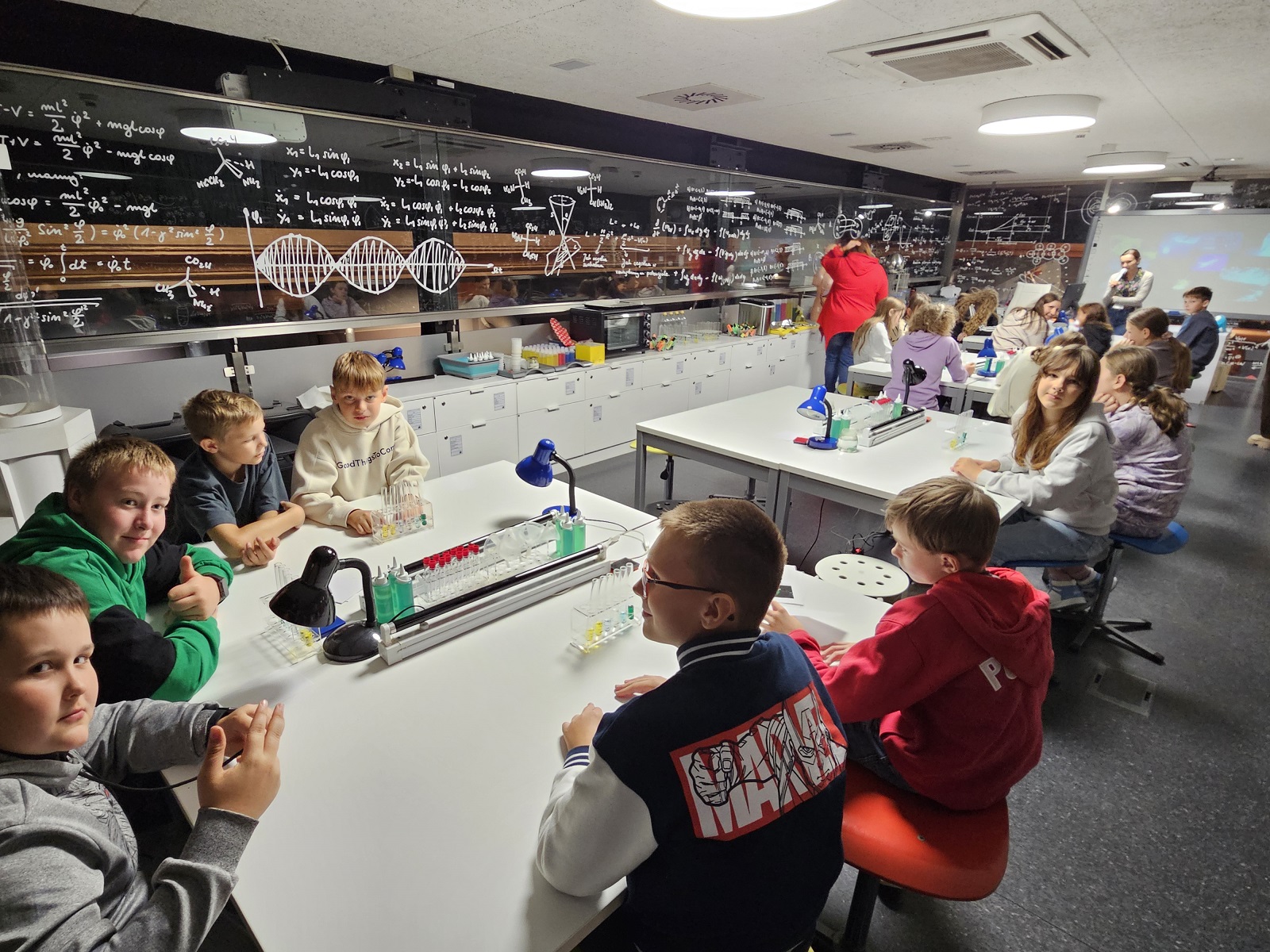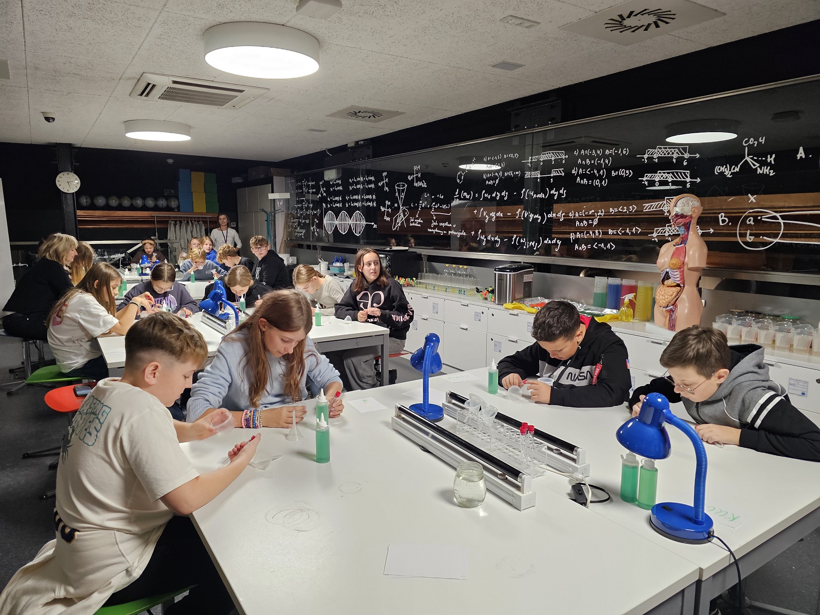 Po zakończonych warsztatach uczniowie zwiedzali ekspozycje składające się z 28 interaktywnych stanowisk, przeznaczonych do samodzielnego eksperymentowania.