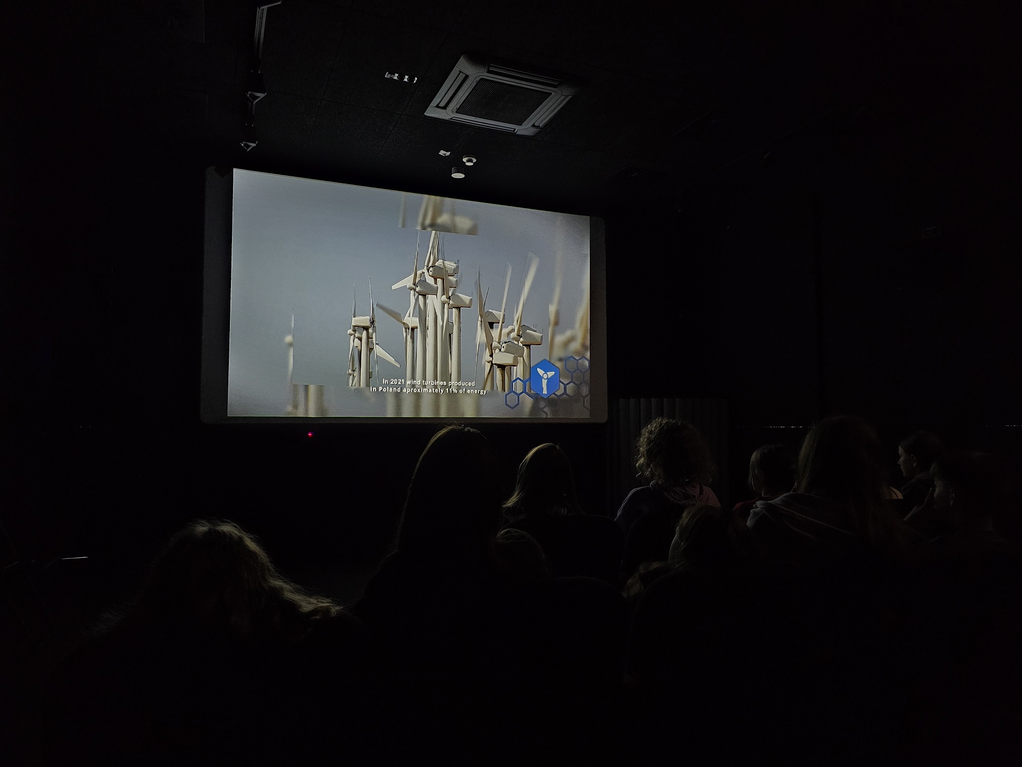 Na zakończenie wizyty w Energetycznym Centrum Nauki uczniowie obejrzeli krótki film edukacyjny o tematyce związanej z ochroną środowiska oraz odnawialnymi źródłami energii.