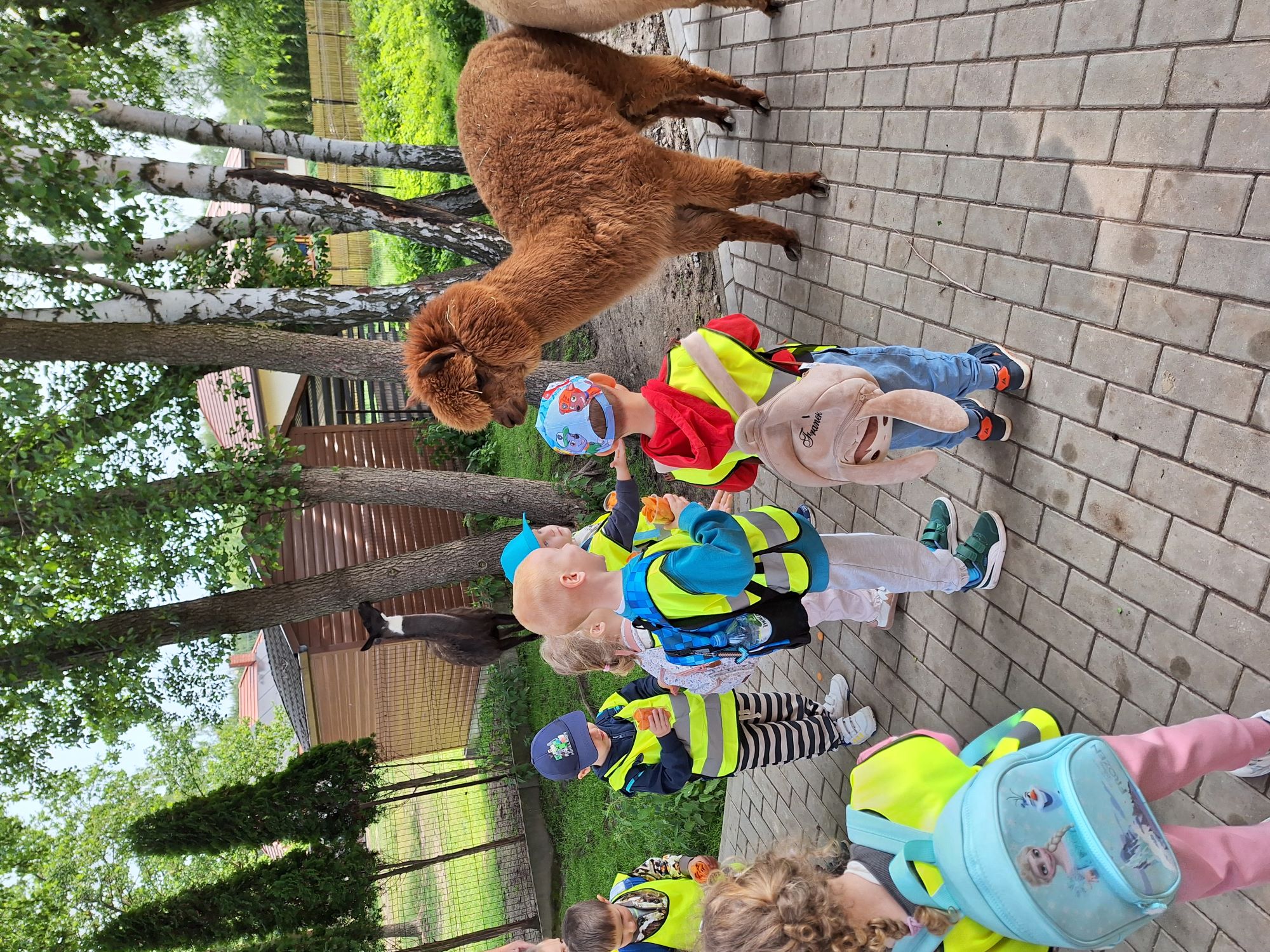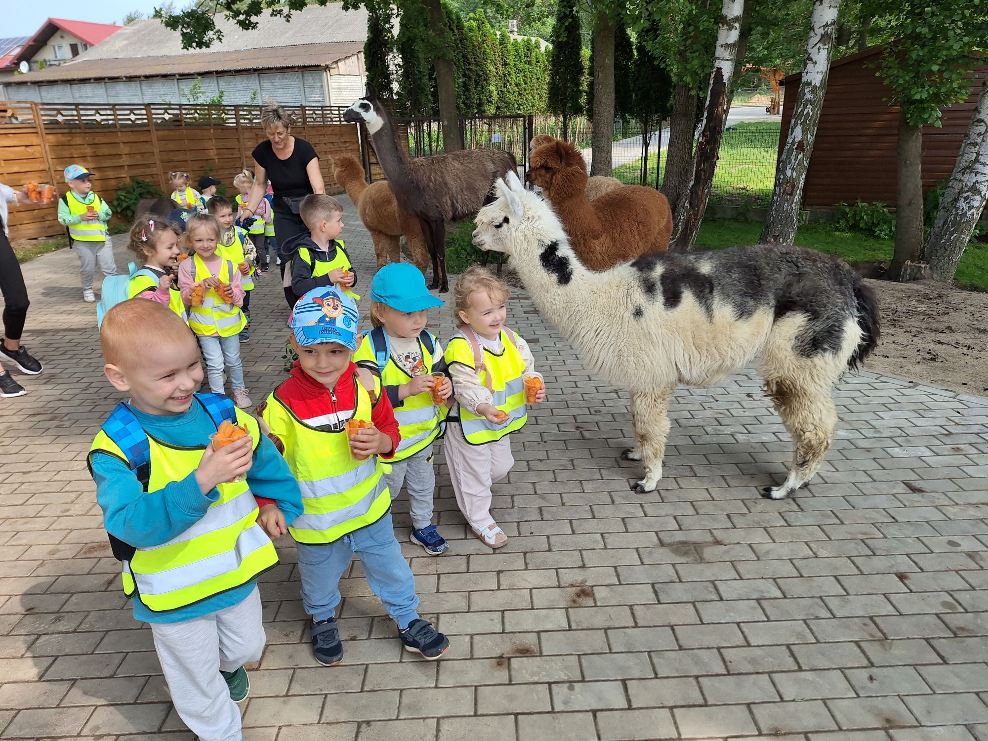 10 czerwca 2025r. przedszkolaki z grupy Pszczółki z wychowawcą i opiekunami wybrały się do Mini ZOO do Ranczo Agrobanda w Wolicy. Celem wycieczki była integracja grupy rówieśniczej, obserwacja i czerpanie pozytywnych wrażeń w kontakcie z przyrodą jak również zainteresowanie różnorodnością gatunków zwierząt. Tuż po przekroczeniu bramy dzieci zostały miło powitane przez Pana przewodnika oraz urocze zwierzątka. Każdy przedszkolak otrzymał kubeczek z jedzonkiem, dzieci z wielką przyjemnością karmiły sympatyczne zwierzątka. Przedszkolaki poznały wiele ciekawostek na temat życia zwierząt w Ranczu Agrobanda, ponadto mieli możliwość ich głaskania oraz karmienia. Dzieci w czasie wolnym mogły skorzystać z dodatkowych atrakcji np. przejażdżka konna, zabawy na placu zabaw oraz zabawy na dmuchańcach. Na zakończenie dzieci zjadły pyszną kiełbaskę z grilla. Był to niezapomniany, pełen wrażeń dzień. Obcowanie ze zwierzętami, to nie tylko zabawa, ale również edukacyjne doświadczenie, które rozwija empatię i szacunek dla świata zwierząt. Mam nadzieję, że wycieczka zagości w pamięci dzieci na dłużej.