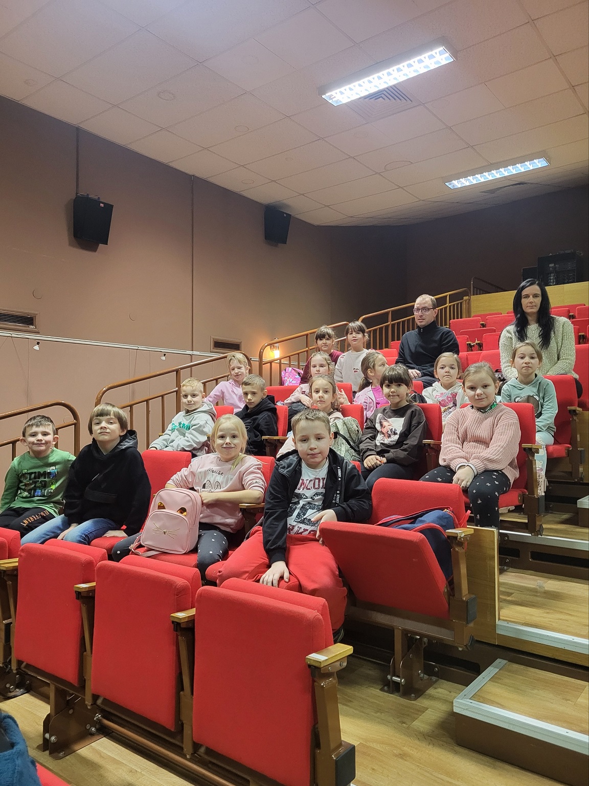 W dniu 8 stycznia 2025r. uczniowie klas pierwszych ze Szkoły Podstawowej w Rzeczycy i ze Szkoły Filialnej w Sadykierzu wraz z opiekunami wybrali się na wycieczkę do MCK ,,TKACZ’’ w Tomaszowie Mazowieckim na spektakl pt. „ Gwiazdy leśnej estrady” przygotowany przez Polskie Towarzystwo Walki z Kalectwem w Kutnie. To było bardzo zabawne, ale pouczające widowisko, z doskonałą muzyką, pełne humoru, specjalnych efektów świetlnych i elementów edukacyjnych. Publiczność była zachwycona.