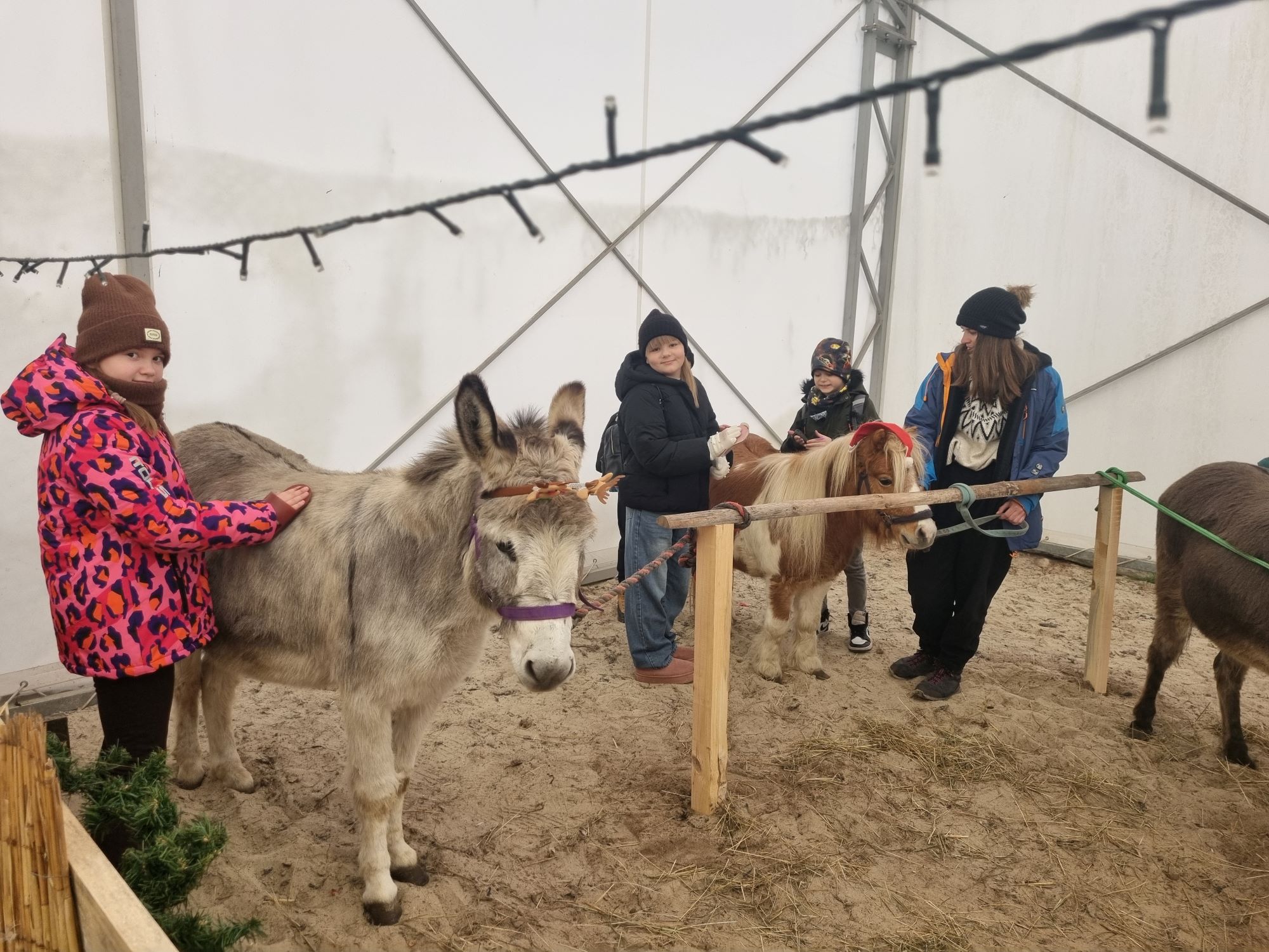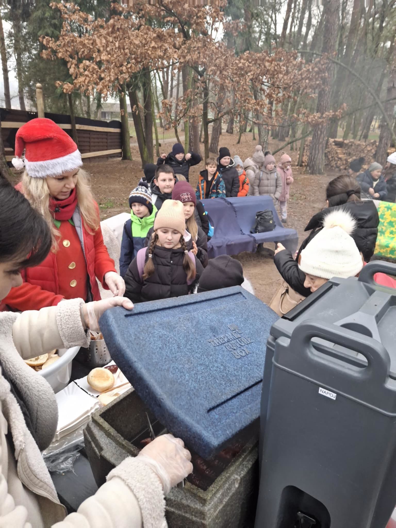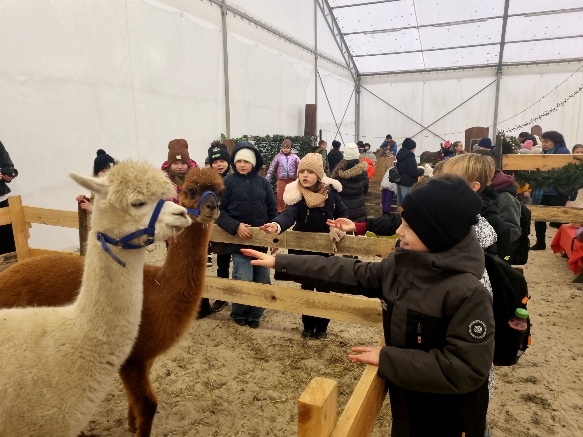 Następnie odwiedziły domek Świętego Mikołaja. Tam czekało na nie ciepłe kakao i pyszne pierniczki. Każde dziecko mogło porozmawiać z Mikołajem i zrobić sobie pamiątkowe zdjęcie. Były też słodkie upominki dla wszystkich. Następnie dzieci udały się na spotkanie ze zwierzętami w Mikołajowym Zoo. Nie zabrakło też twórczej zabawy – każde dziecko przygotowało własny list do Świętego Mikołaja, który trafił do Mikołajowej Poczty.
