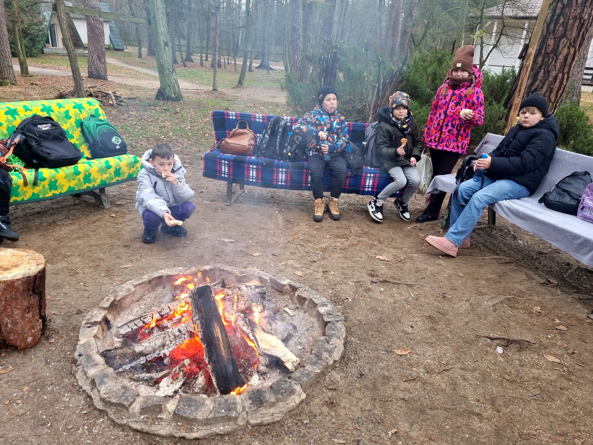 Ten wspaniały dzień zakończyliśmy ogniskiem z pyszną pieczoną kiełbaską i świątecznym kompotem.